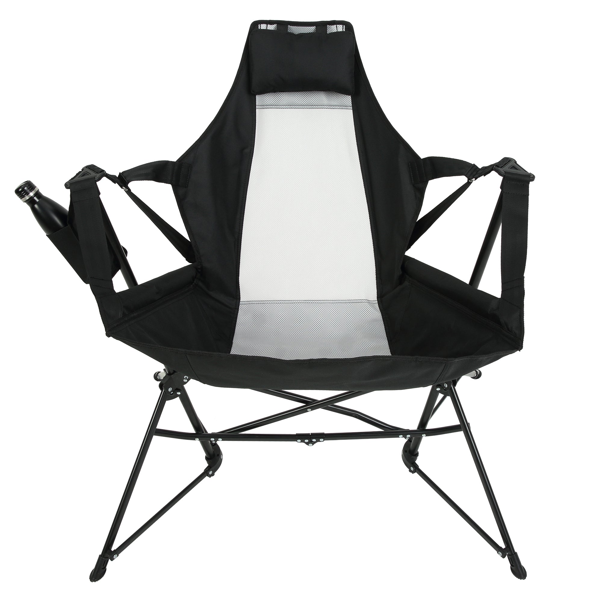 Hammock Camping Chair, Folding Portable Rocking Chair, Aluminum Alloy Adjustable Back Swinging Chair with Pillow Cup Holder, Recliner with Carry Bag for Outdoor Travel Lawn Backyard, Black(2pcs) W640P147221-djyc