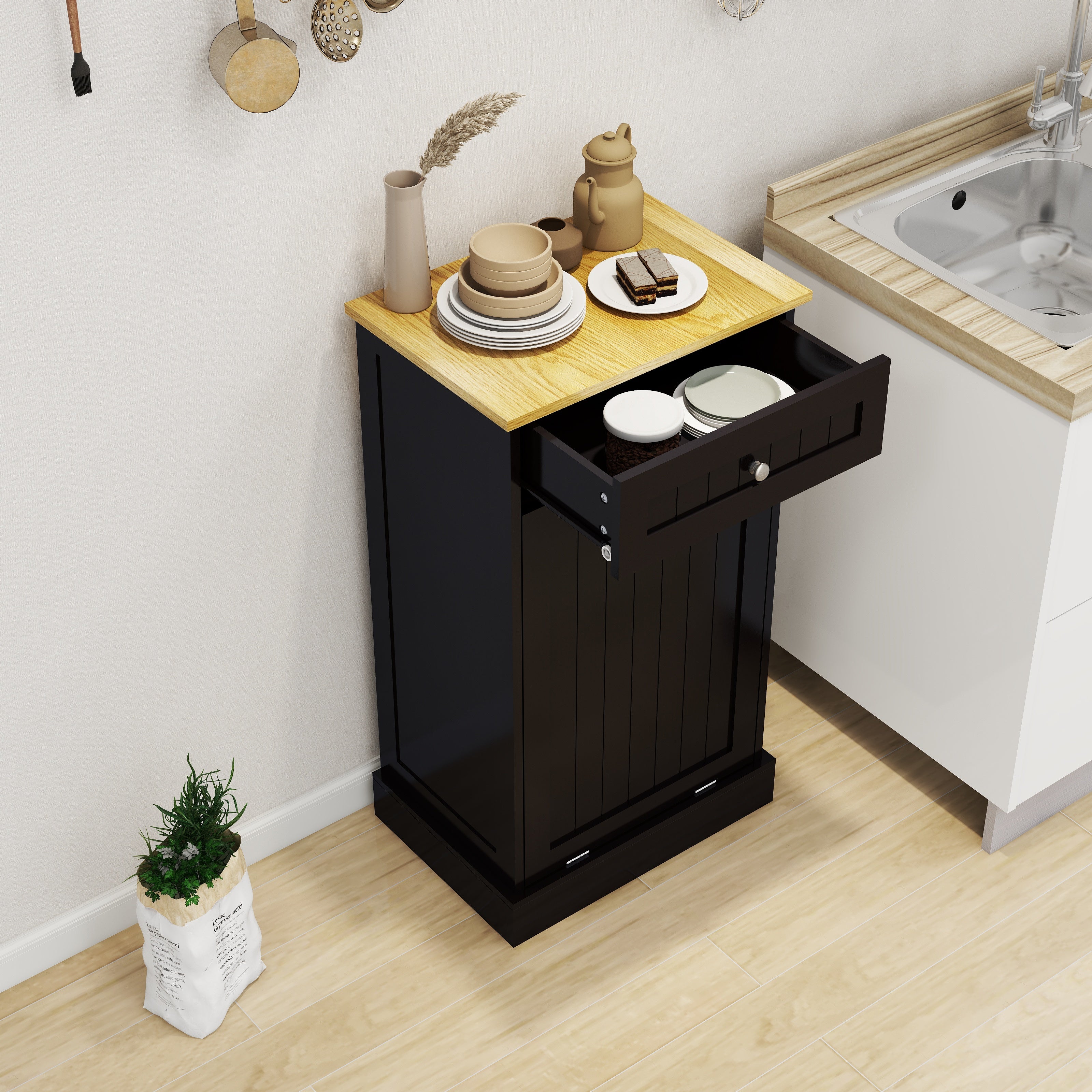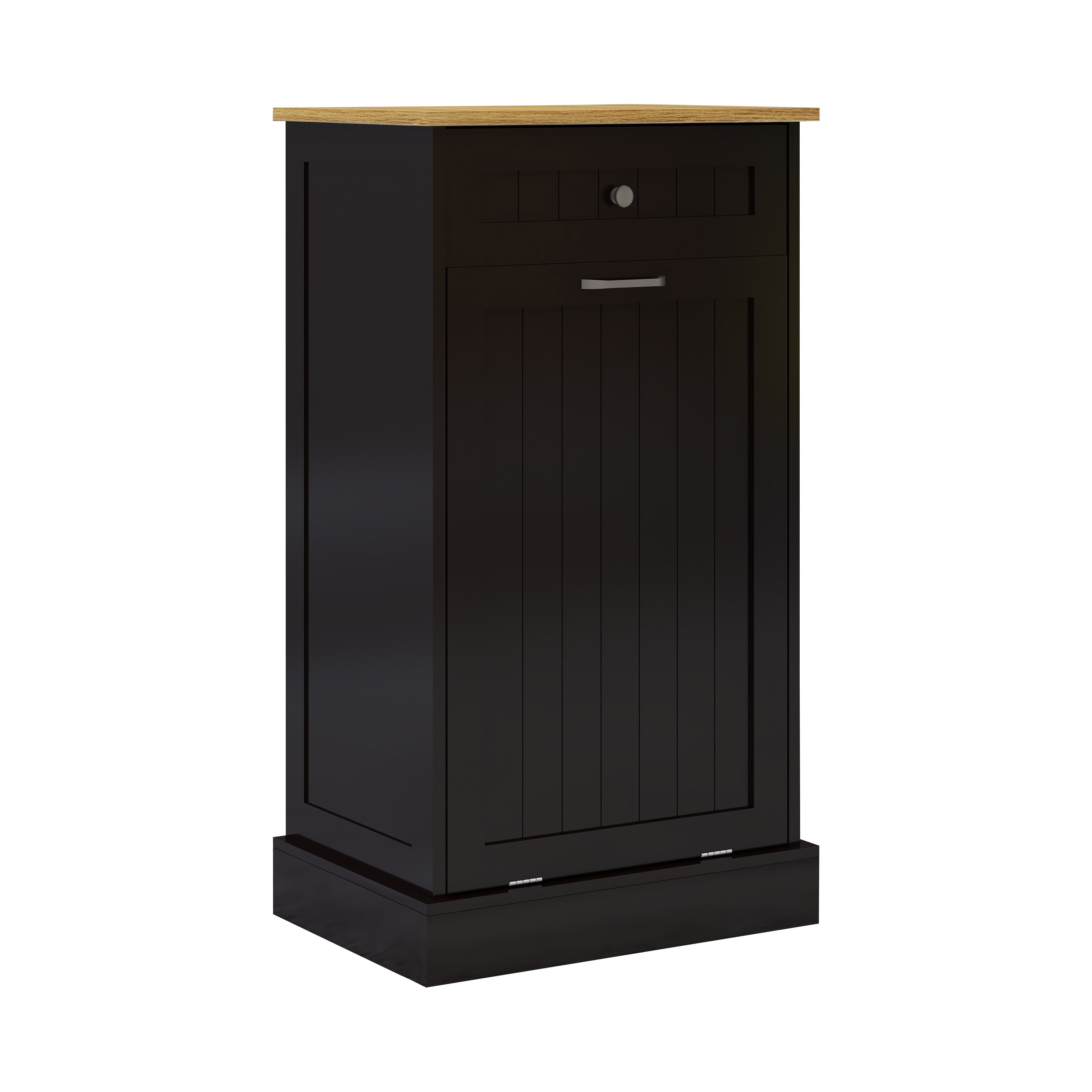 One Drawers and One-Compartment Tilt-Out Trash Cabinet Kitchen Trash Cabinet-Black W1120127325-djyc
