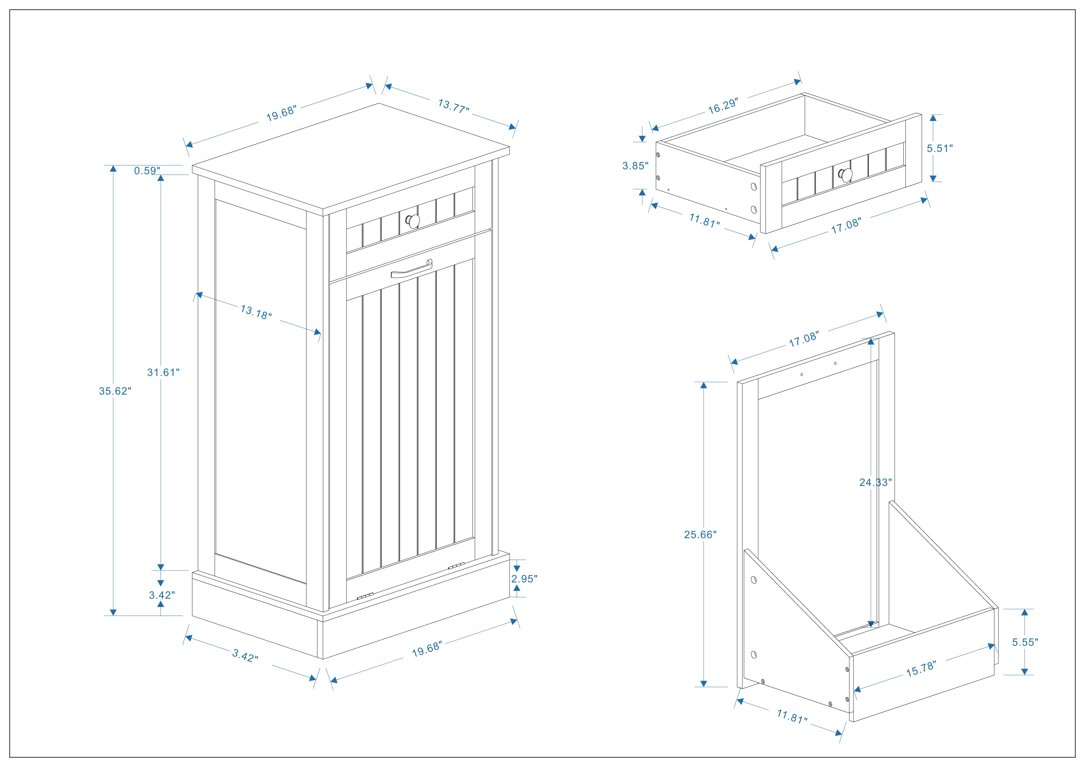 - In addition,This trash cabinet can be well integrated with the kitchen island,Not only has the function to be used, it can also help extend the length of the kitchen island,Help you get more space.