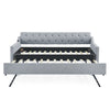Twin Size Upholstery DayBed with Twin Size Erectable Trundle and USB Charging Design, Linen Grey W1413S00026-djyc