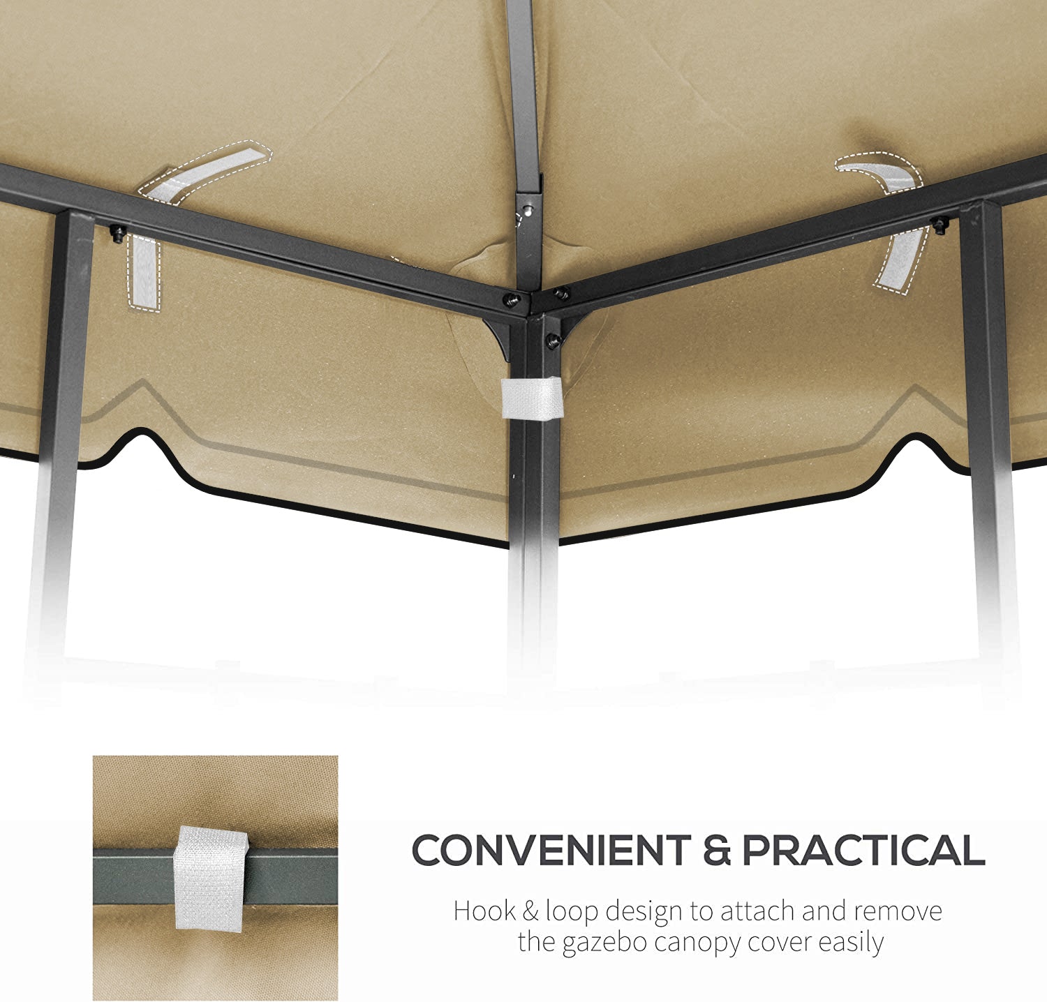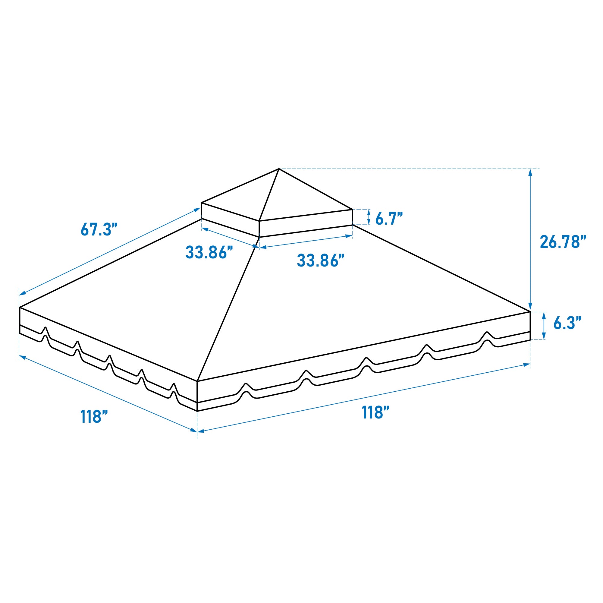 10x10 Ft Outdoor Patio Gazebo Replacement Canopy,Double Tiered Gazebo Tent Roof Top Cover Only Greatwall border(Frame Not Include)-Tan W419P198363-djyc
