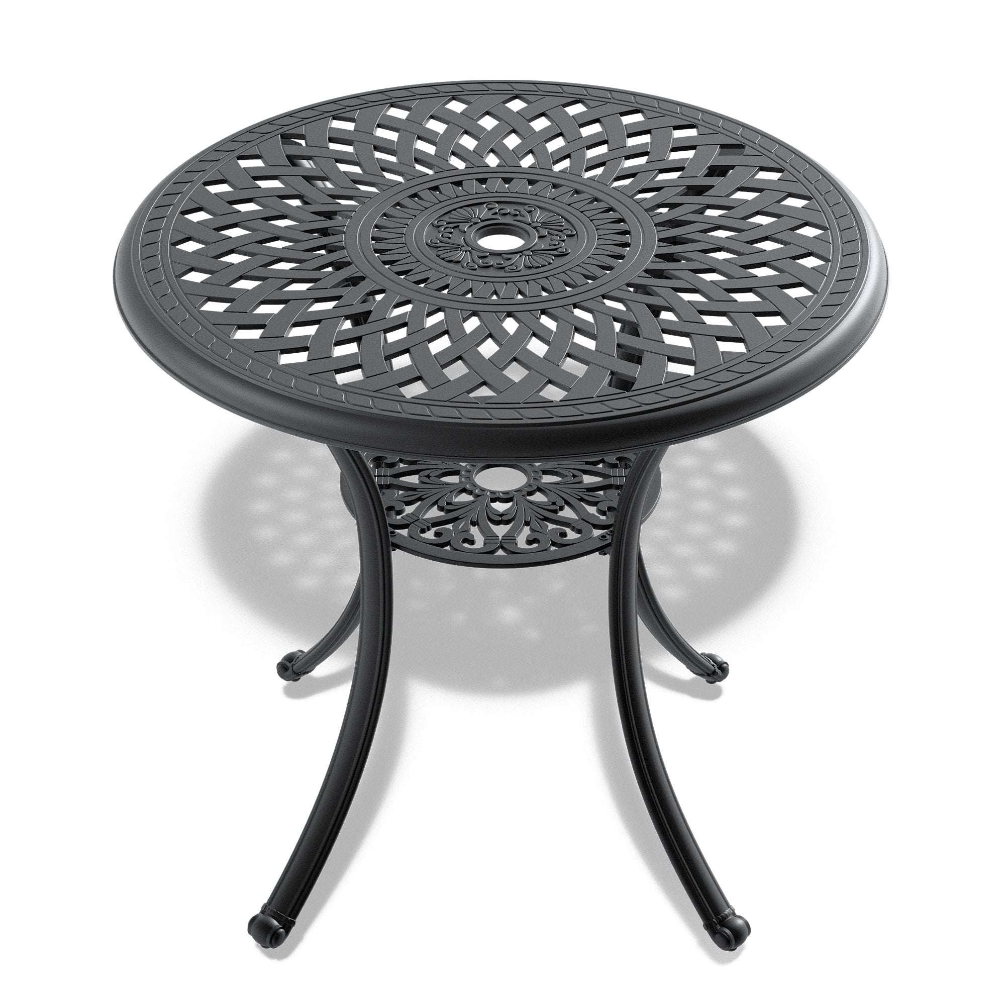 ?30.71-inch Cast Aluminum Patio Dining Table With Black Frame and Umbrella Hole W1710P166025-djyc