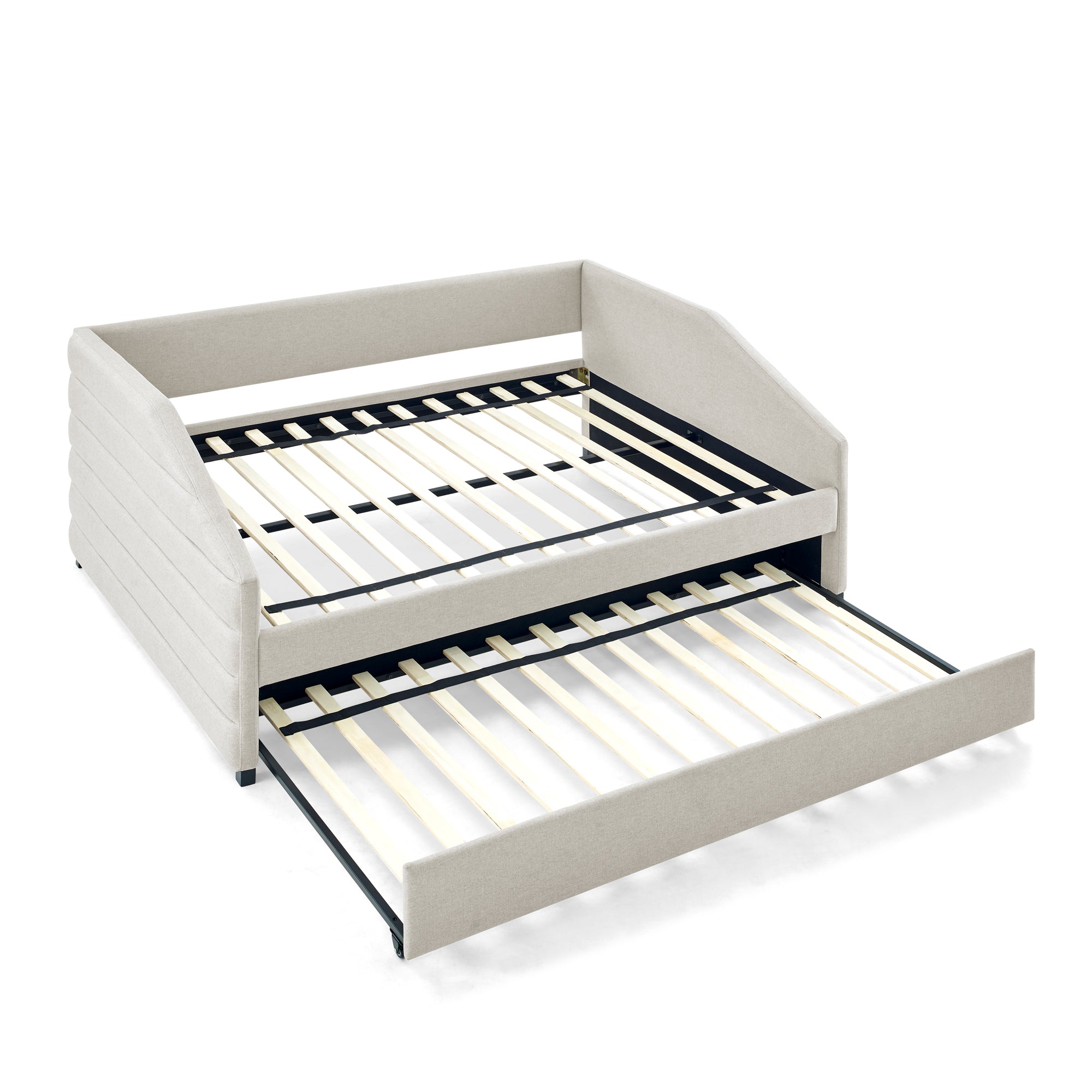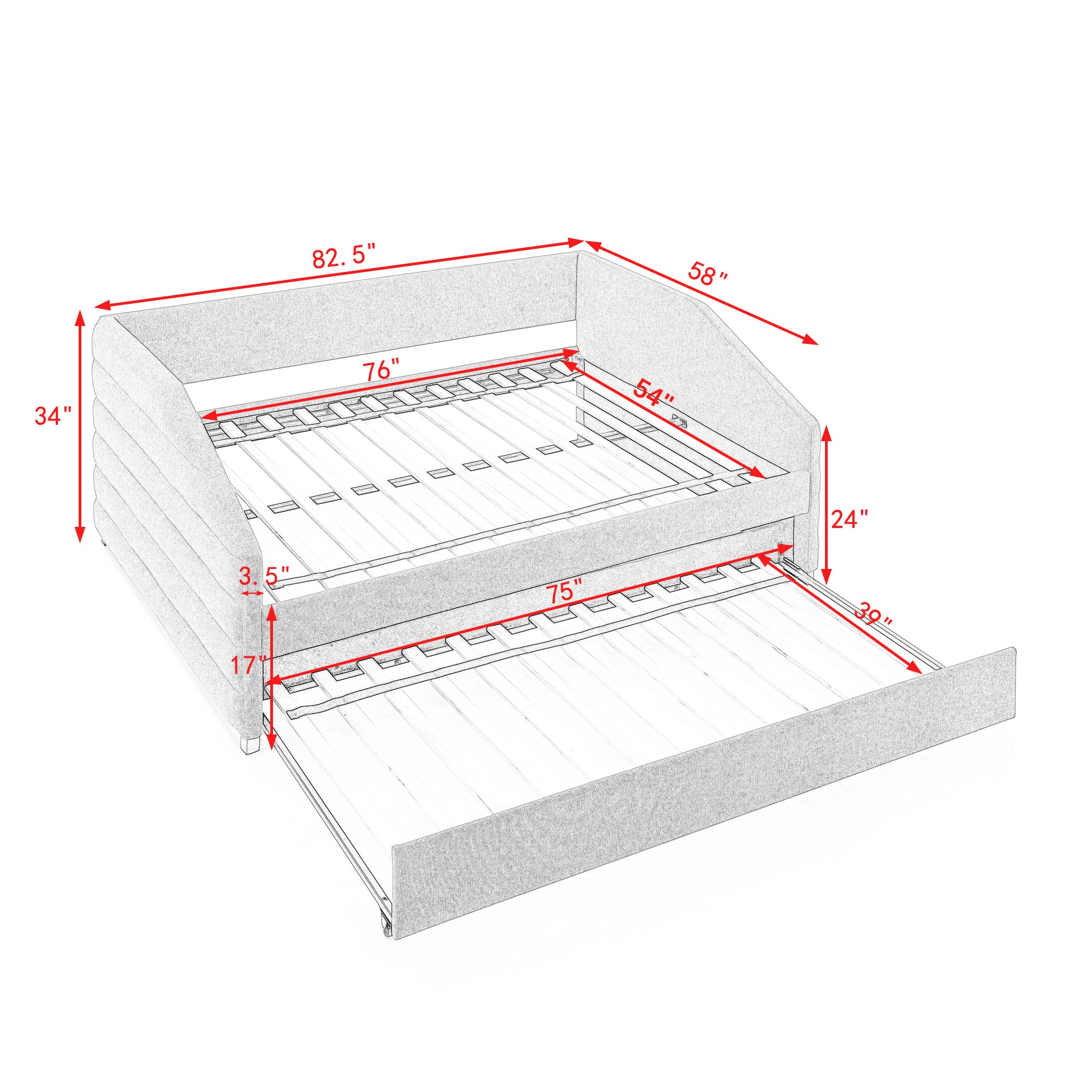 Full Size Daybed with Trundle Upholstered Tufted Sofa Bed, Linen Fabric, Beige (82.5'x58'x34') W487S00179-djyc