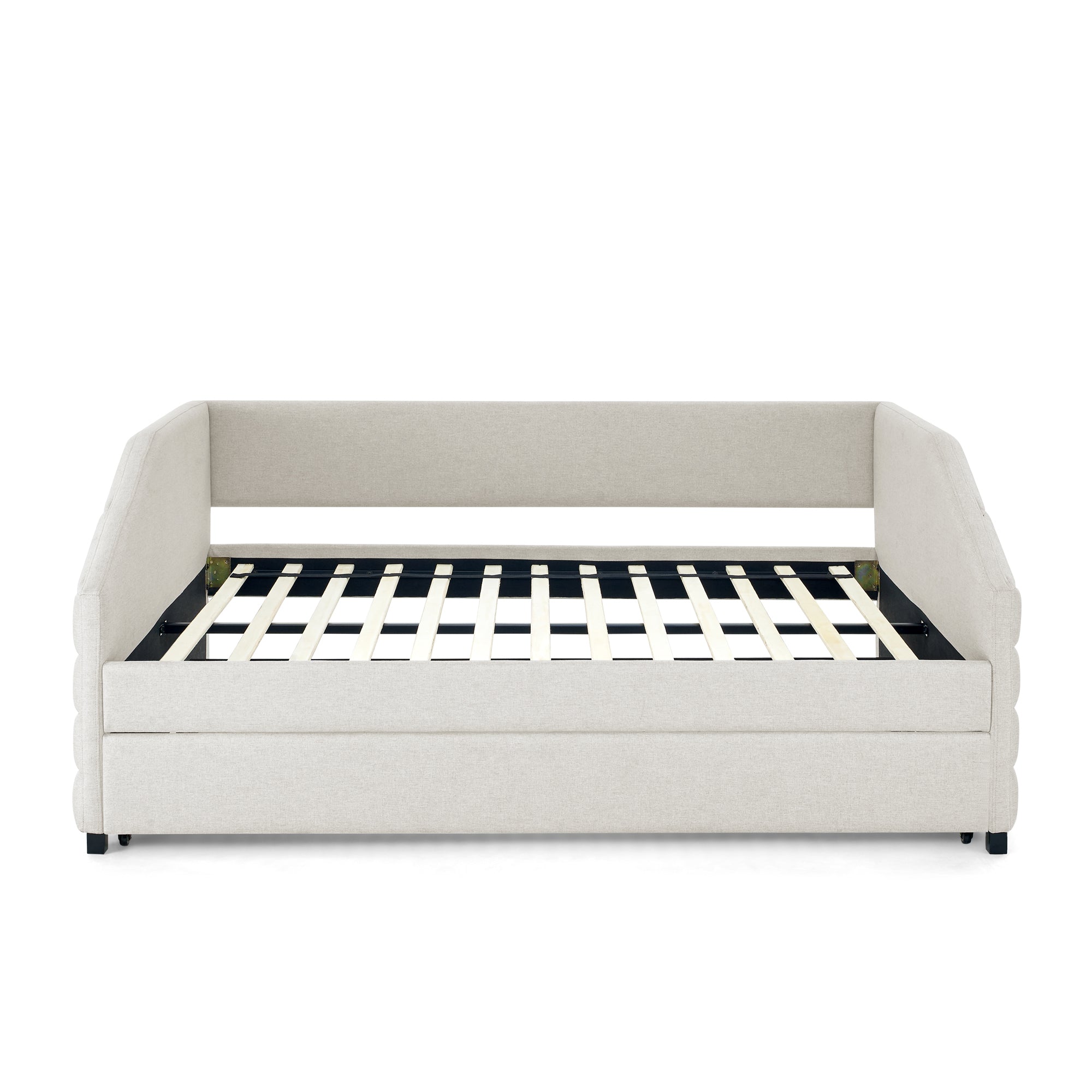 - [Elegant Style] Upholstered in carefully-selected linen fabric, in elegant beige,it features a backrest covered in elegant diamond-tufted linen, stylish wingback arms, this daybed not only suits any home décor, but is timeless in its design. The soft textile bedhead creates coziness, while the single color of the design creates versatility.