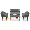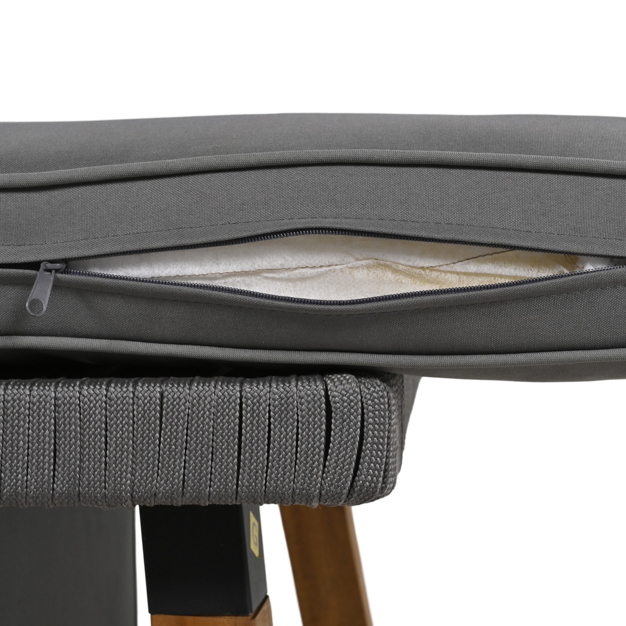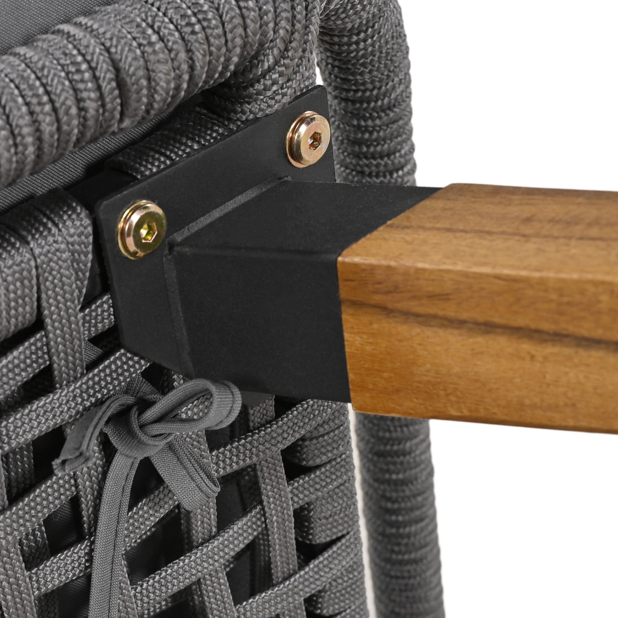 | Material | PP Rope /Metal Frame+Acacia Wood Feet/ Polyester Fabric+Foam / Acacia Wood Table |