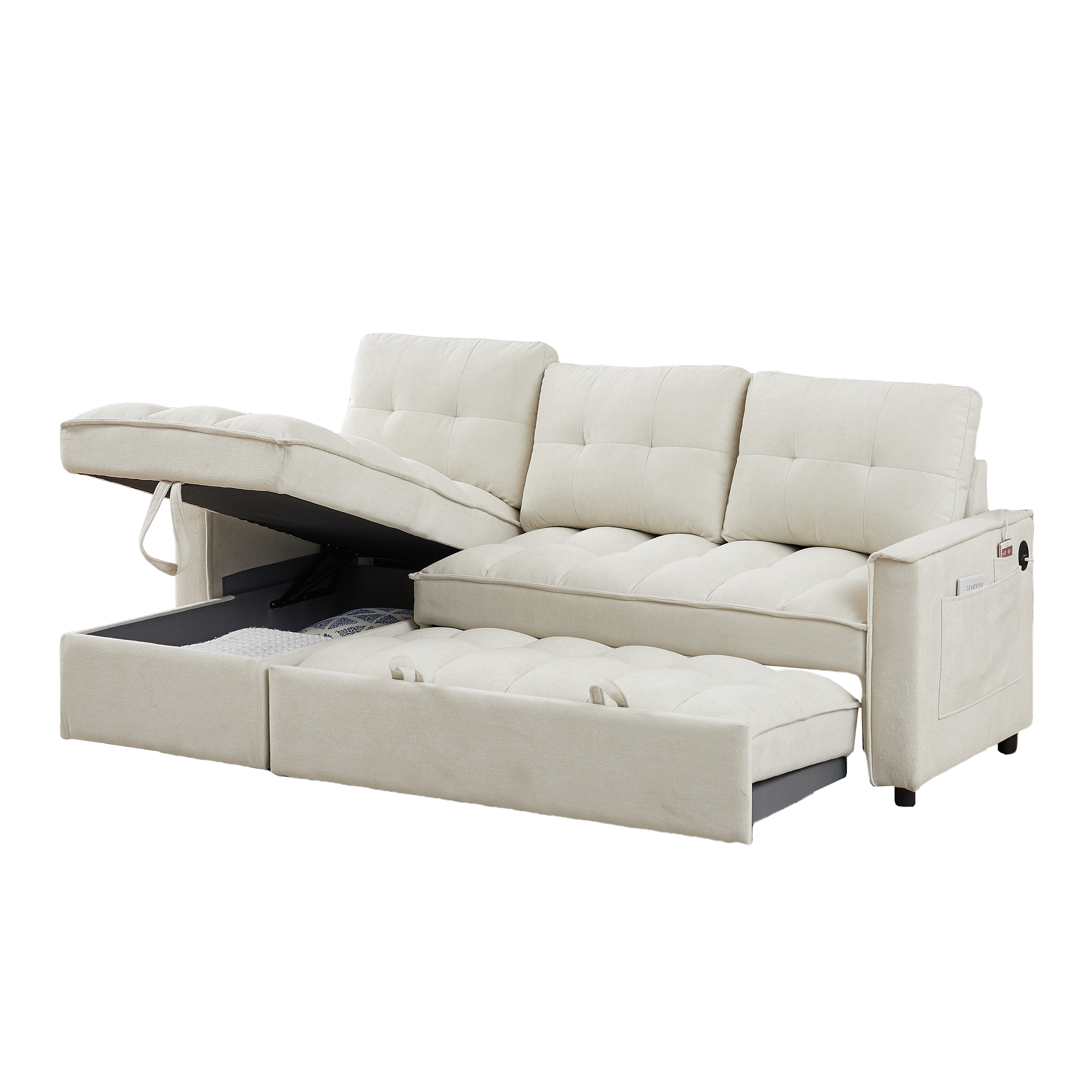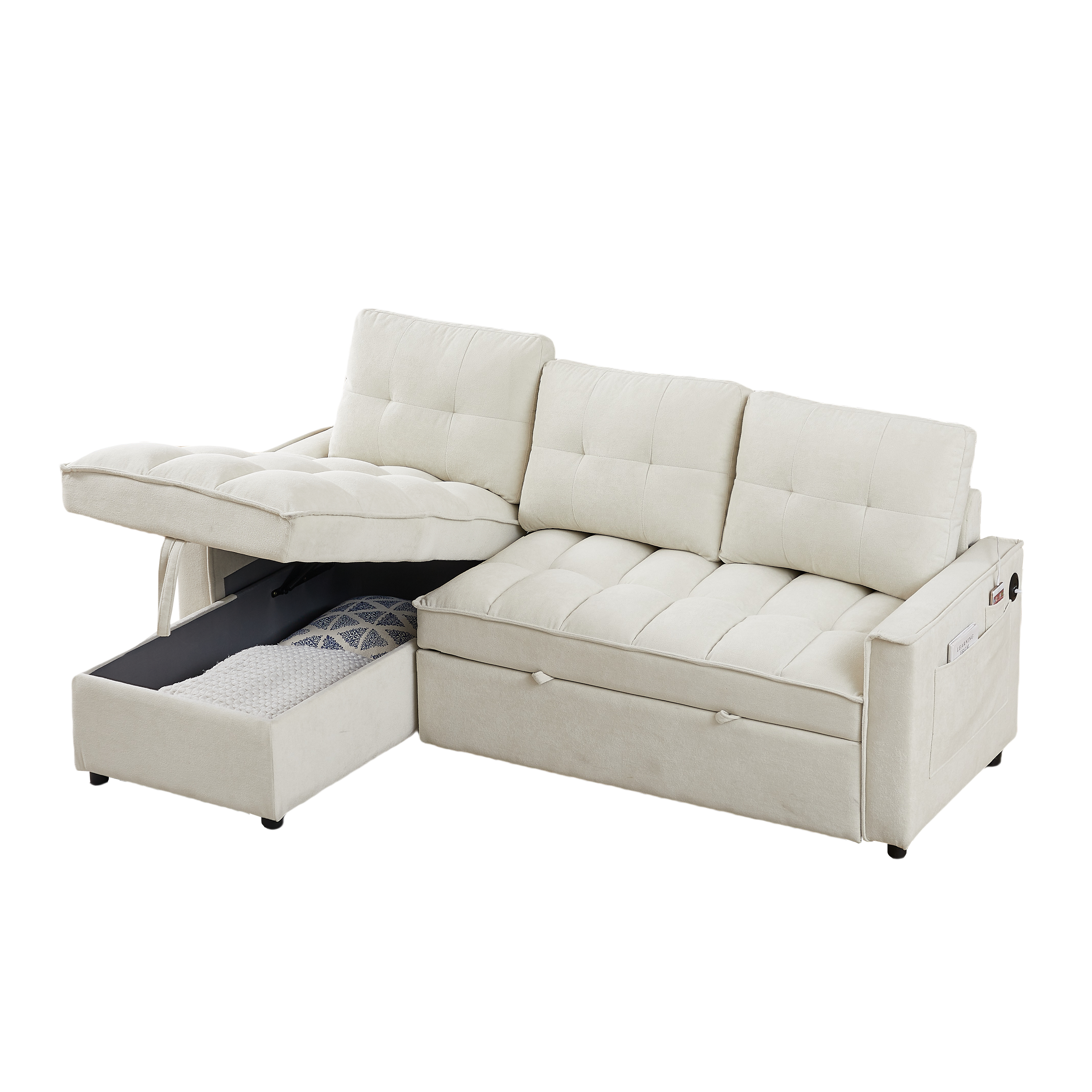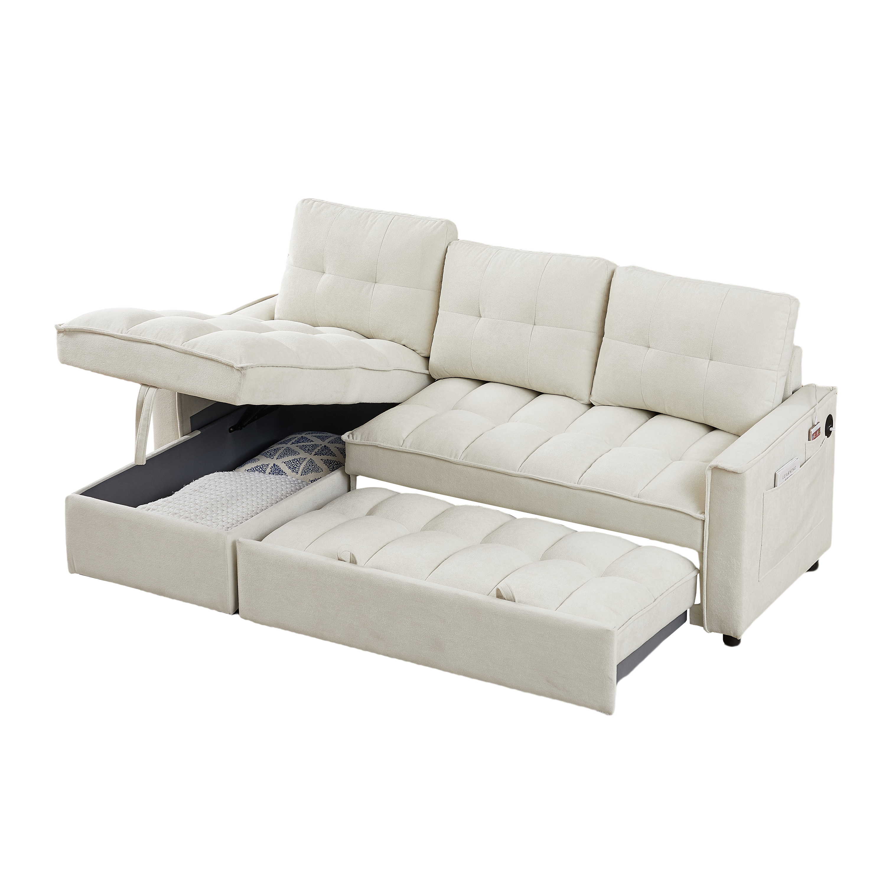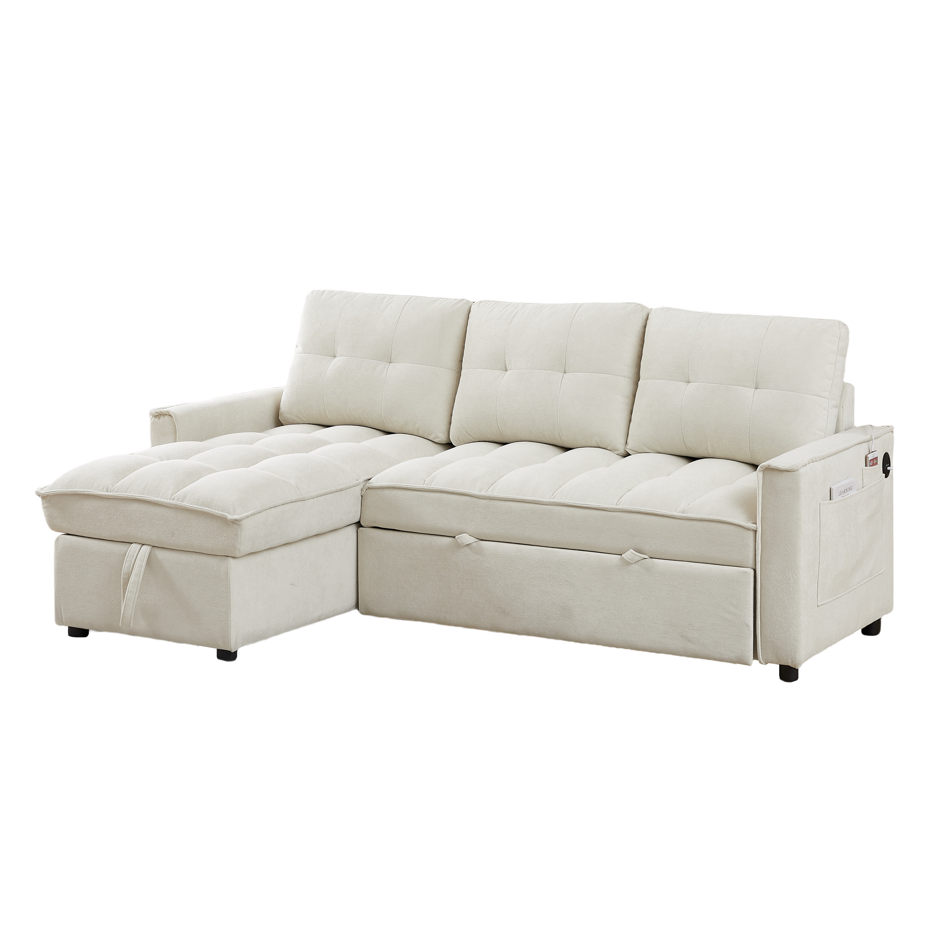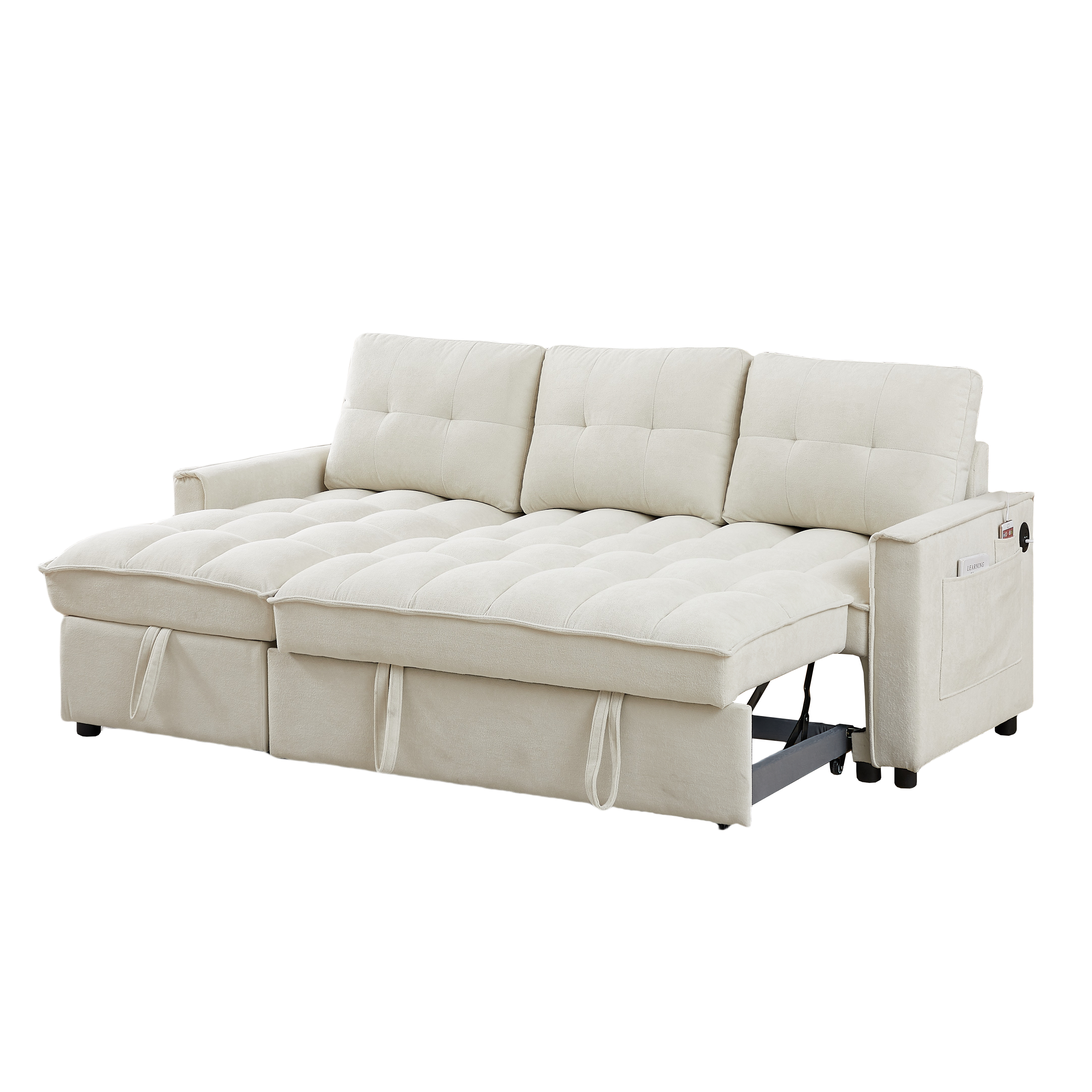 MH 78.75' Reclining Sofa, Pull-Out Sofa Bed with USB and tape-c charging ports, L-Shaped Sectional Sofa with Reclining Storage and Arm Side Organizer Pocket Features, Living Room Comfort Sofa W1193S00104-djyc