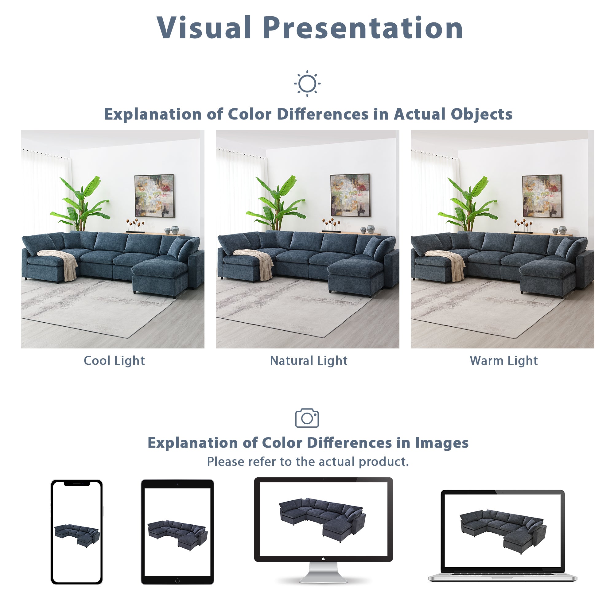 130*65' Modern Modular Cloud Sofa Bed, 6 Seat Chenille Sectional Couch Set with Ottoman,Free Combination,Convertible U Shaped Sleeper Sofa for Living Room, Apartment, 3 Colors N723S9583K-djyc