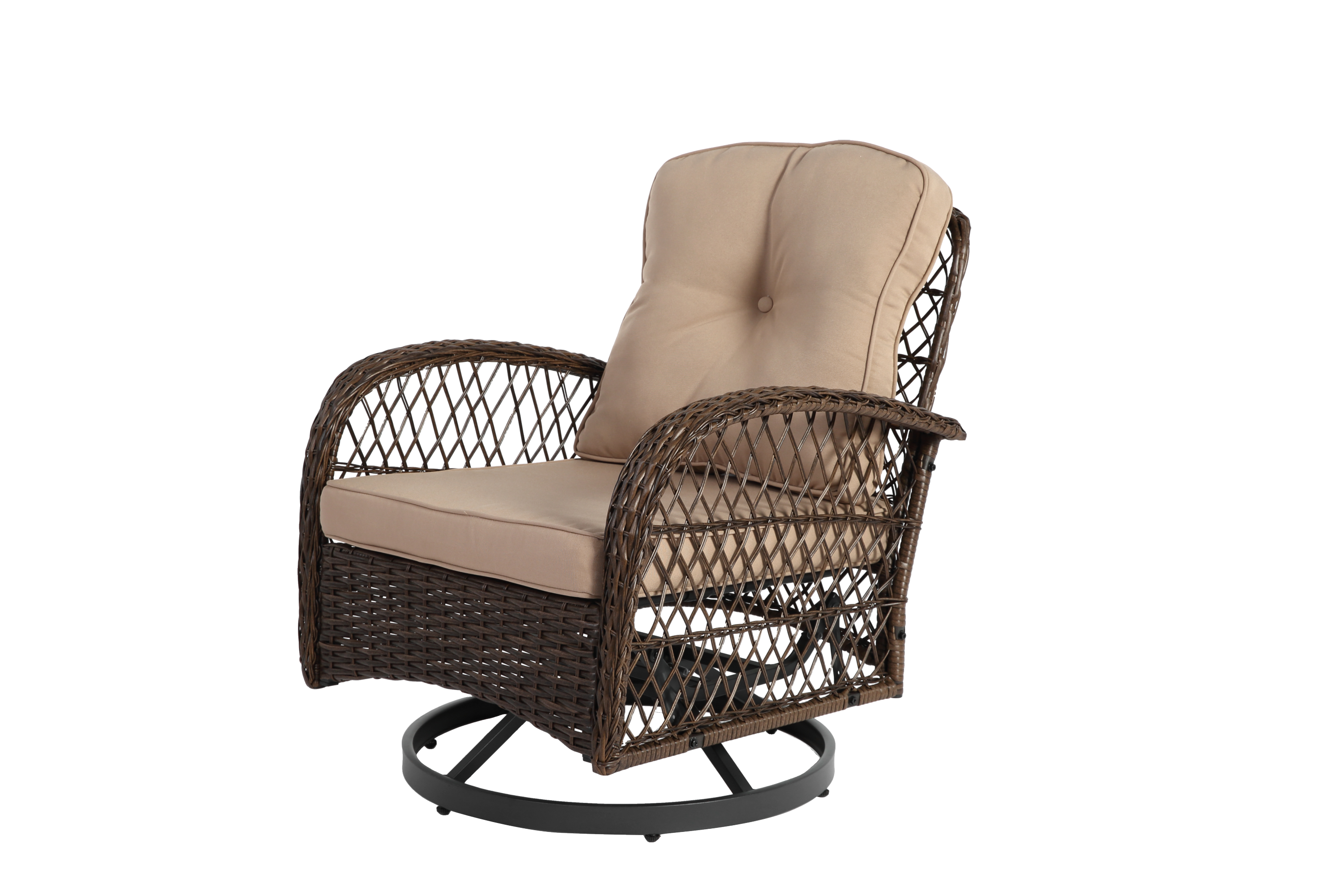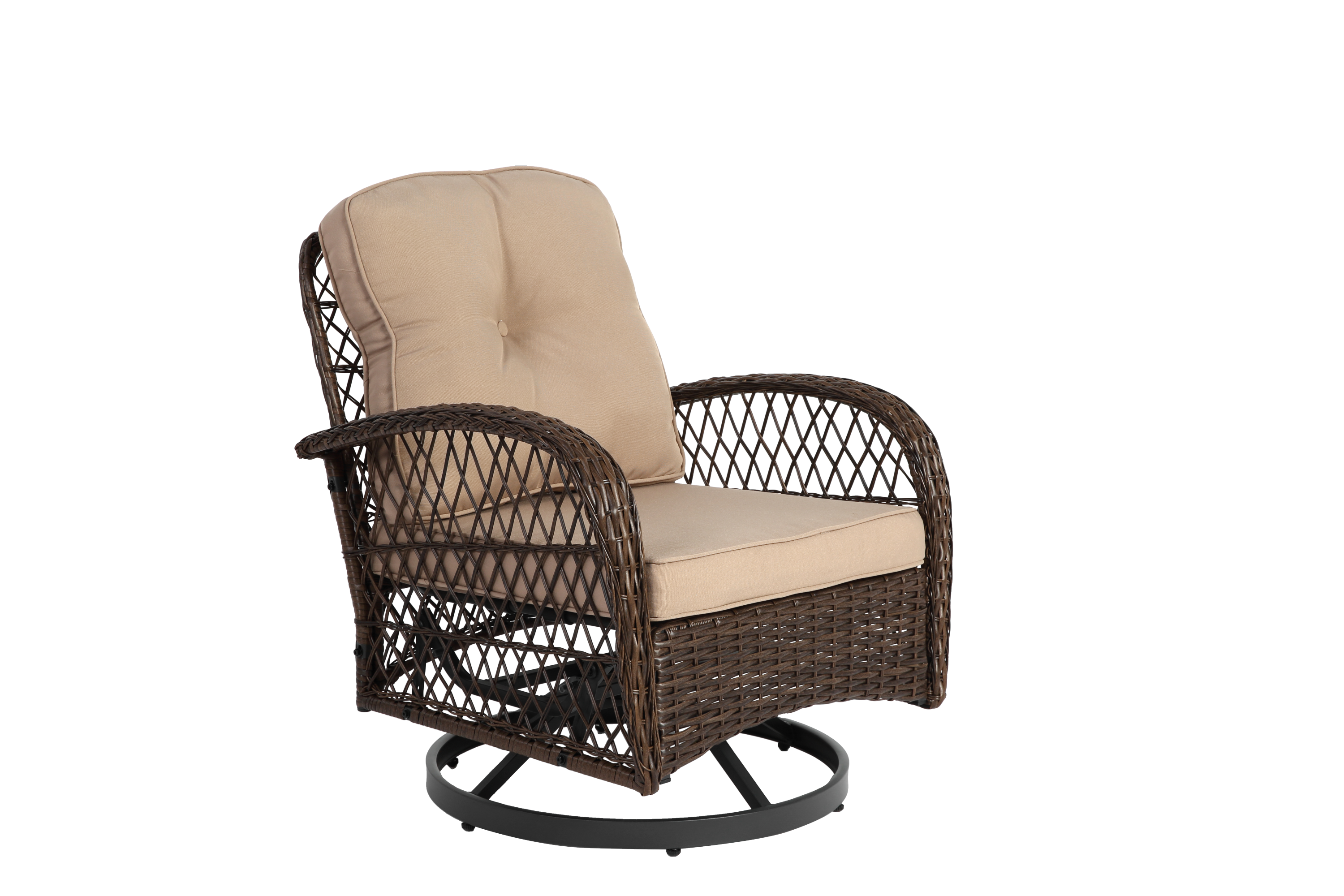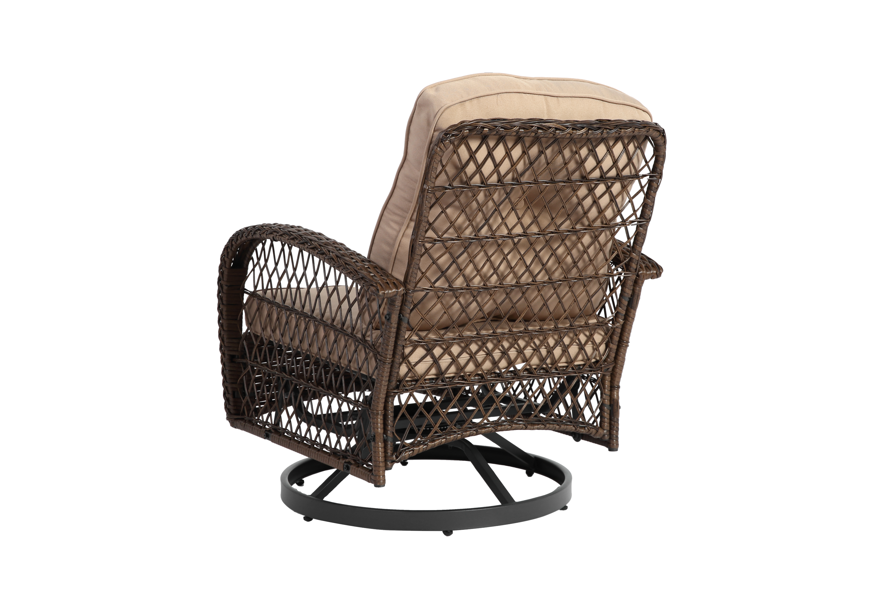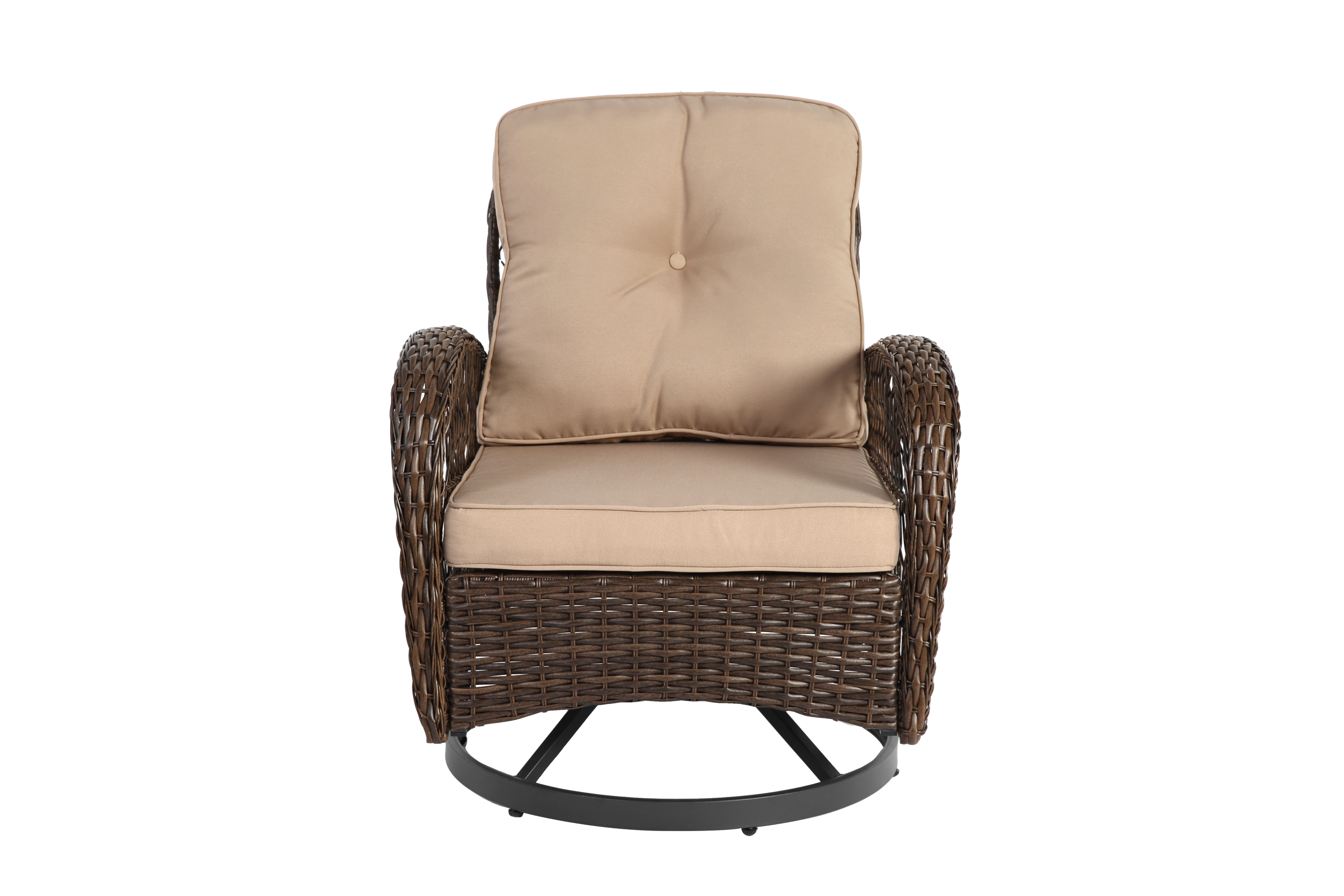 3 Pieces Outdoor Swivel Rocker Patio Chairs, 360 Degree Rocking Patio Conversation Set with Thickened Cushions and Glass Coffee Table for Backyard, Khaki W640P263673-djyc