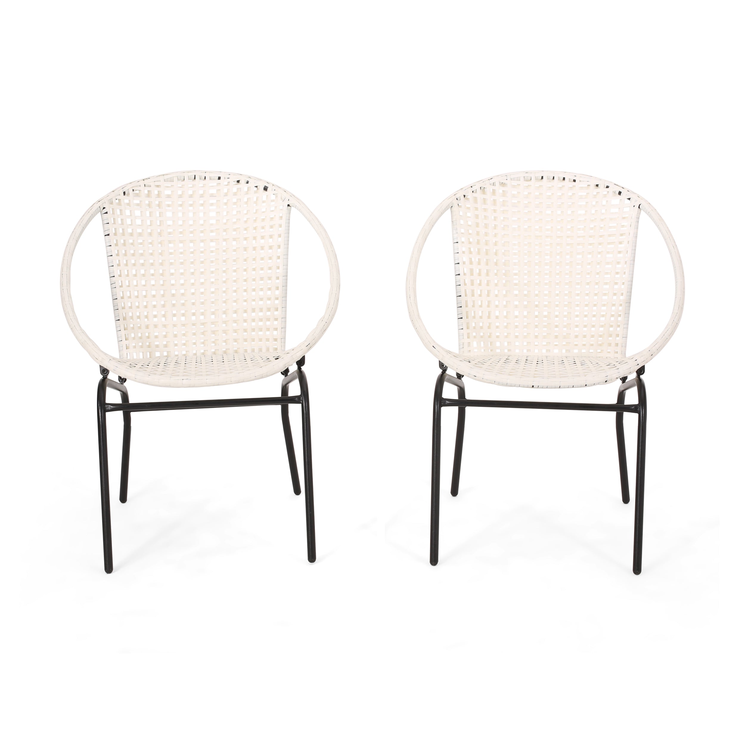 Outdoor Faux Rattan Chairs – Black Iron Frame, White Finish, Comfortable and Stylish (Set of 2) 66628.00WHI-djyc