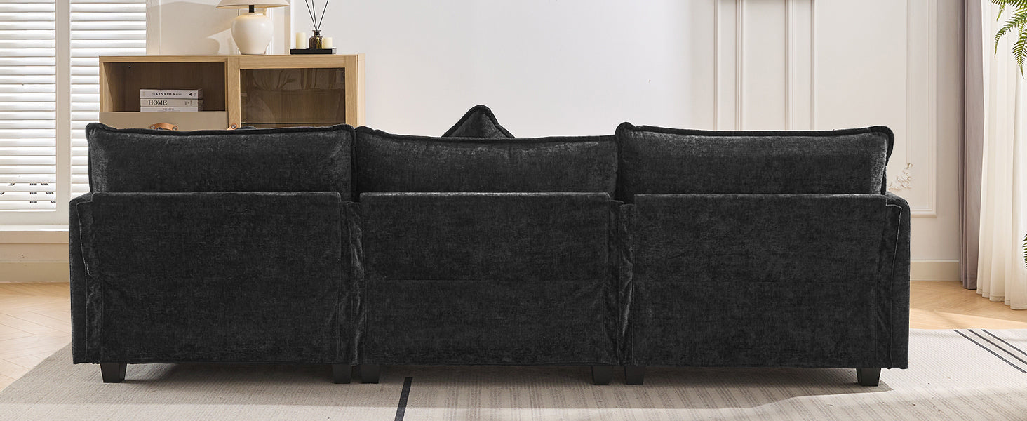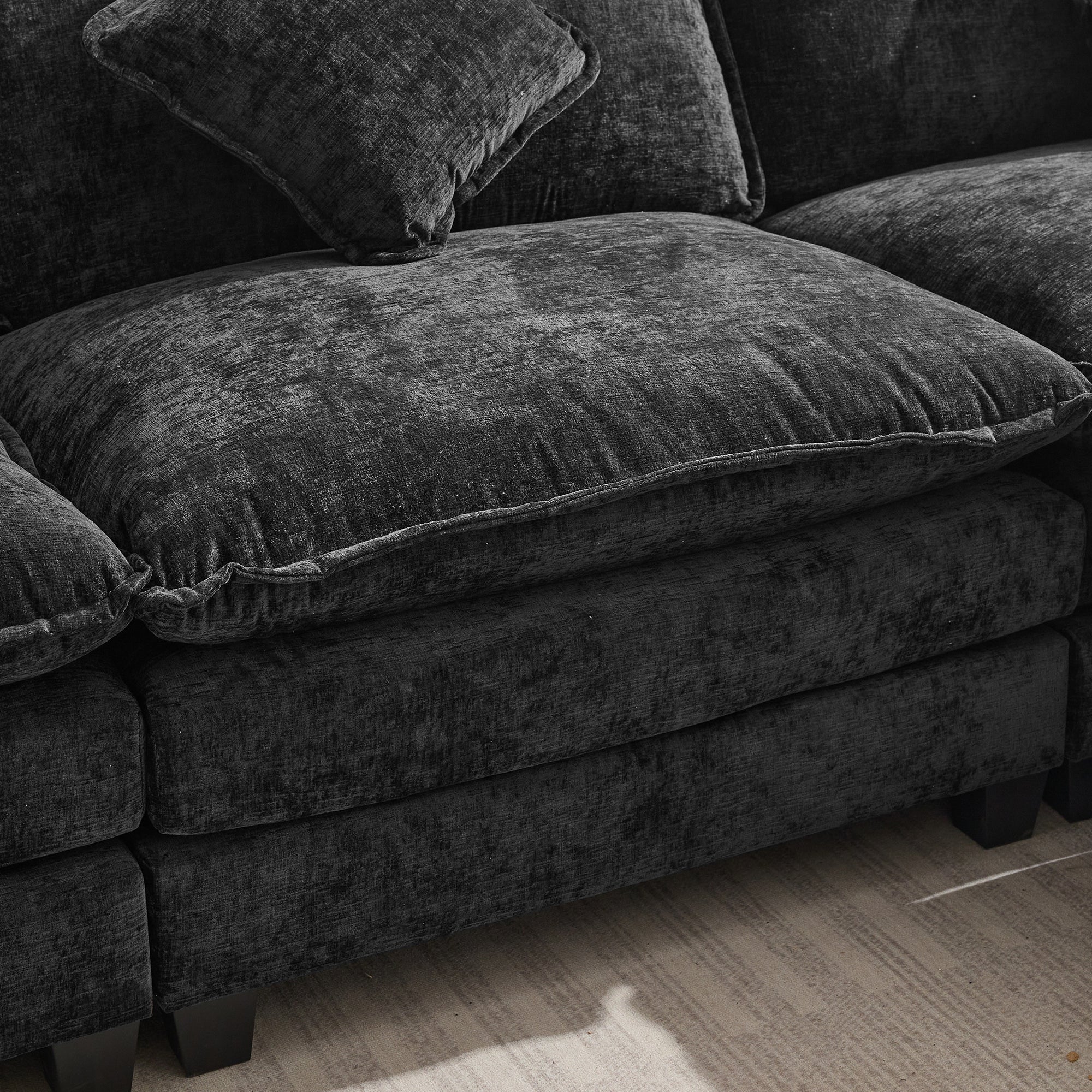 112.2' L-Shape Chenille Upholstered Sofa for Living Room Modern Luxury Sofa Couch with Ottoman and 5 Pillows for Living Room (SG001160AA), Black N719S001160B-djyc