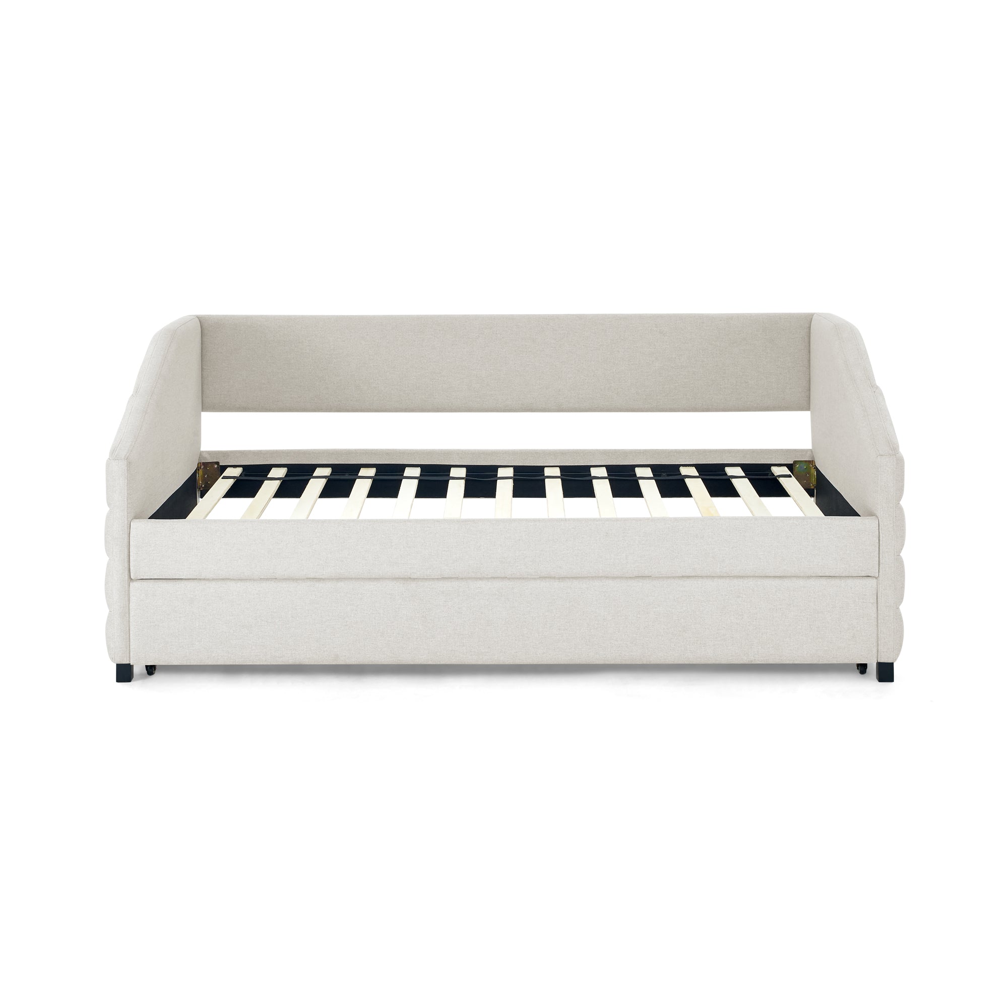 Twin Size Daybed with Trundle Upholstered Tufted Sofa Bed, Linen Fabric, Beige (82.5'x42.5'x34') W487S00174-djyc