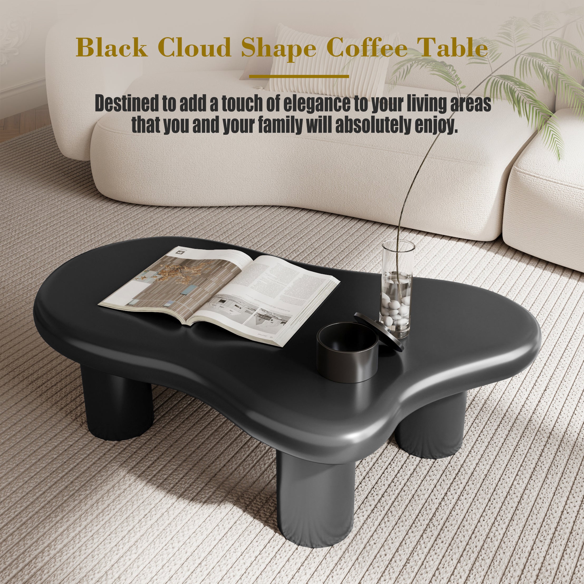 40 Inch Black Cloud Shaped Coffee Table for Living Room W1435S00005-djyc