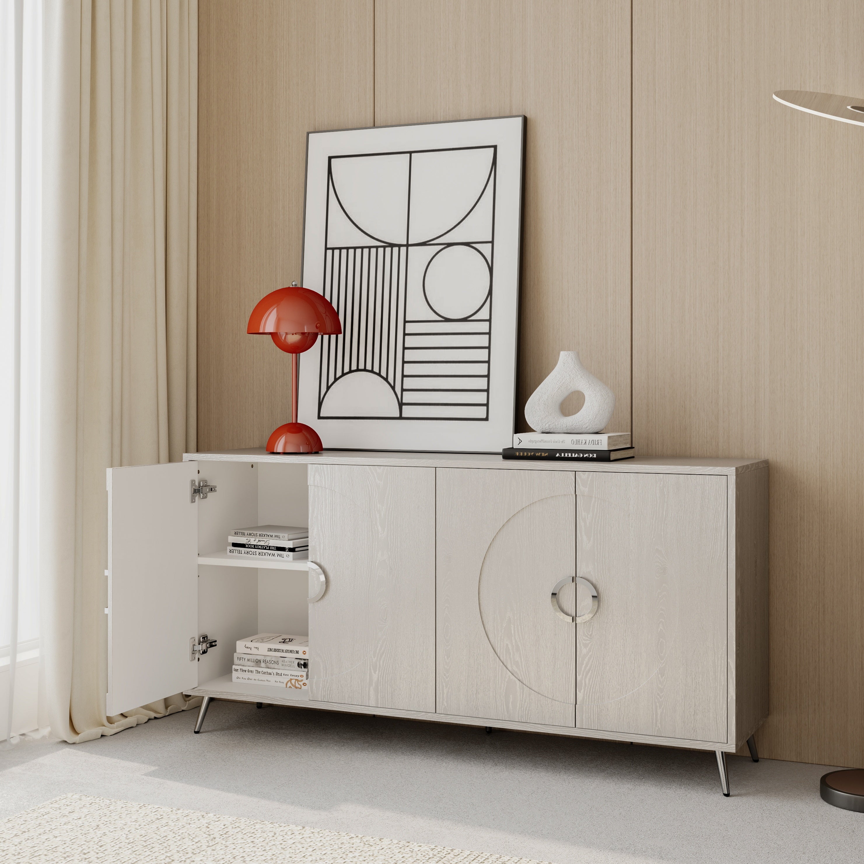 Modern Lacquered 4 Door Wooden Cabinet Sideboard Buffet Server Cabinet Storage Cabinet, for Living Room, Entryway, Hallway, Office, Kitchen and Dining Room, Champagne Silver W1435P191609-djyc
