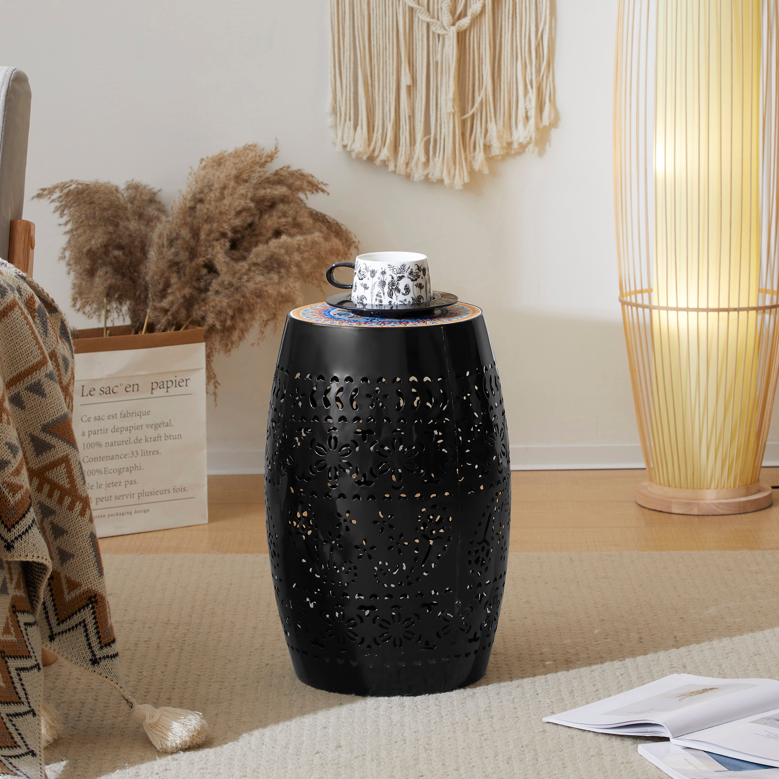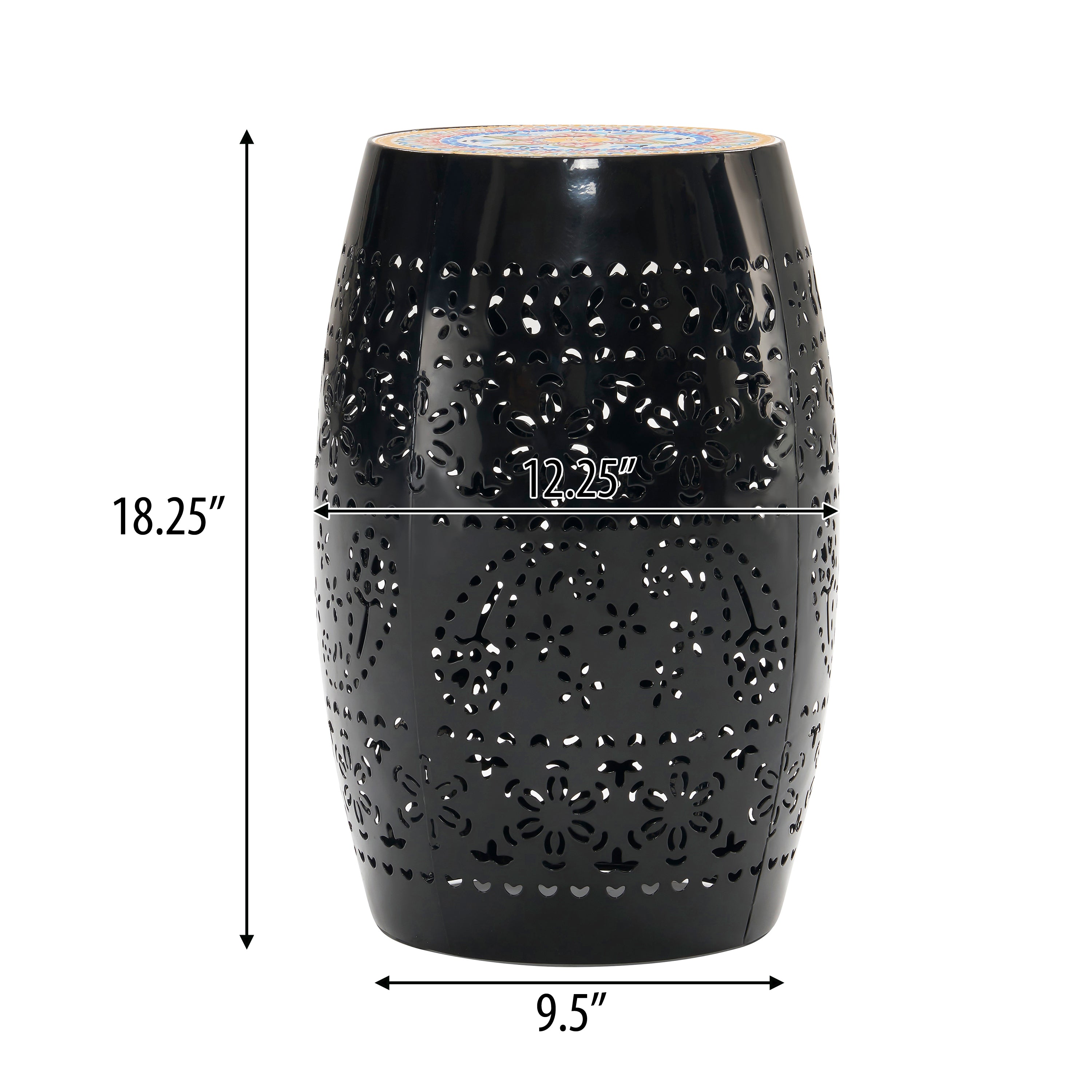 - FUNCTIONAL ART:This 12.25' wide by 18.25' high mosaic side table is the right height for snacks, beverages, and plants. Weight Capacity:10.2lb.Combination of a boho pattern ceramic tile top with an elegant and unique cut-out pattern metal frame, blending with any room decor from boho to modern minimalism.