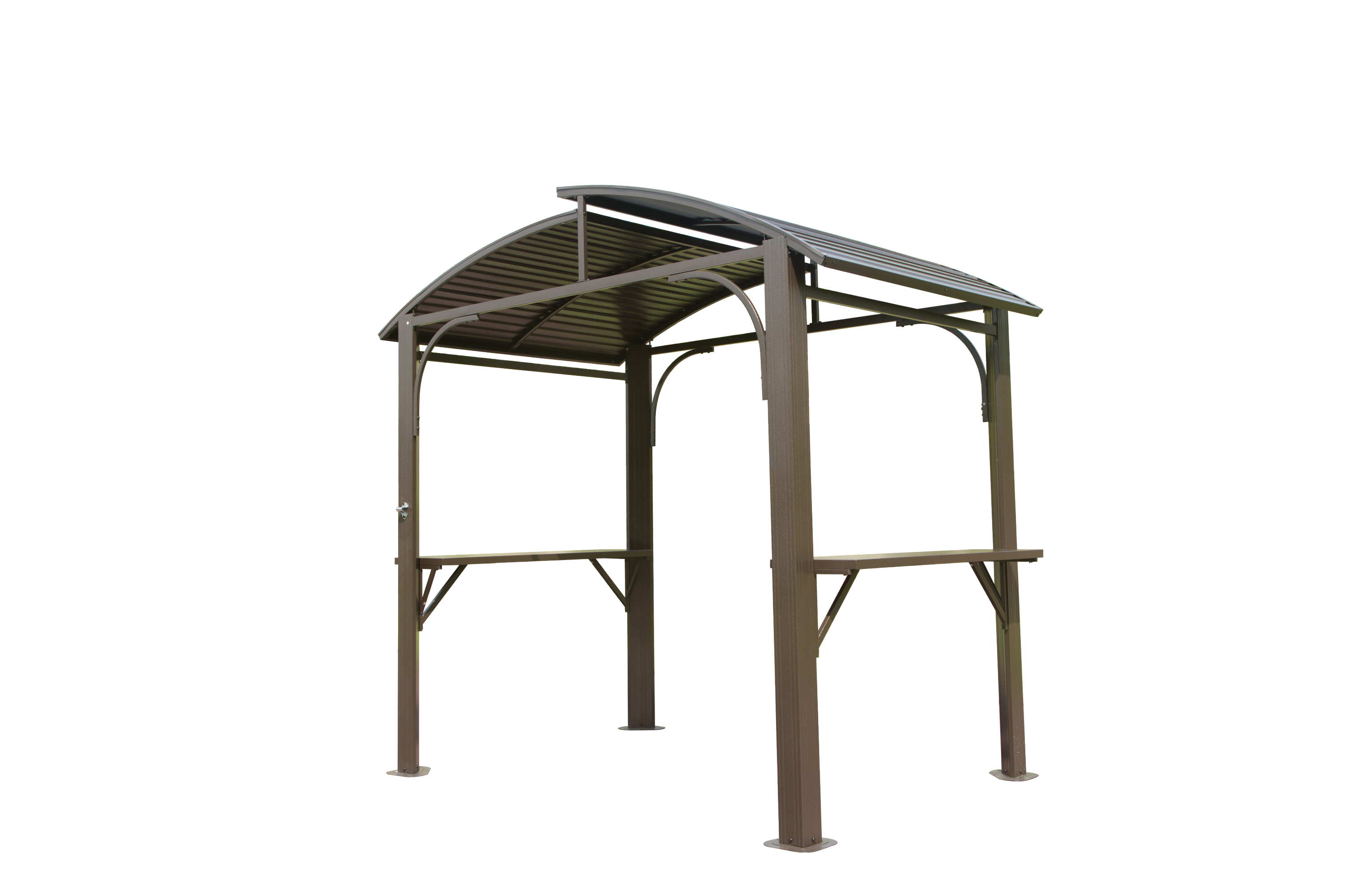 8x5FT Arc Roof, Grill Canopy for Outdoor Grill w/Double Galvanized Steel Roof and 2 Side Shelves, BBQ Gazebo Grill Tent for Patio Garden Backyard, Brown W1859S00075-djyc