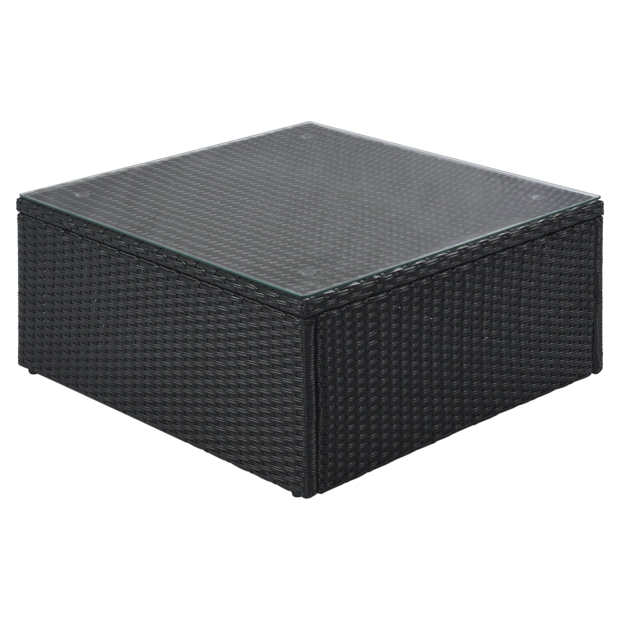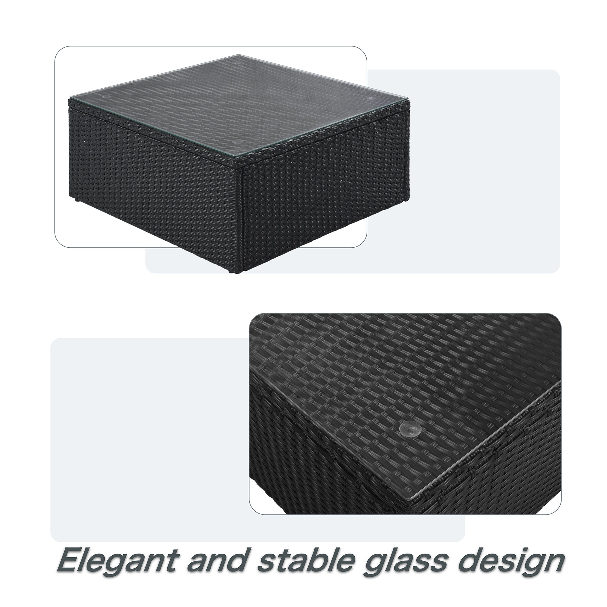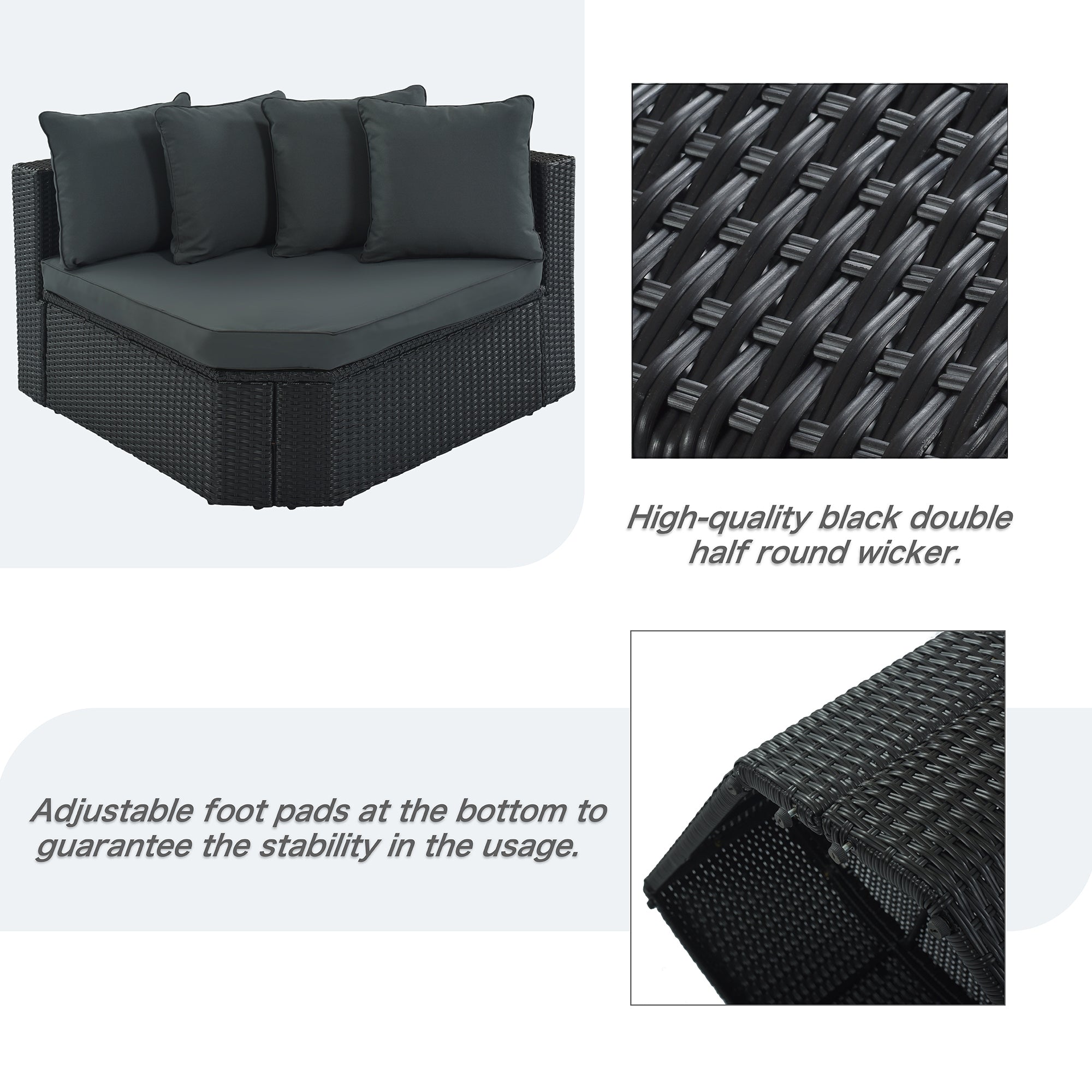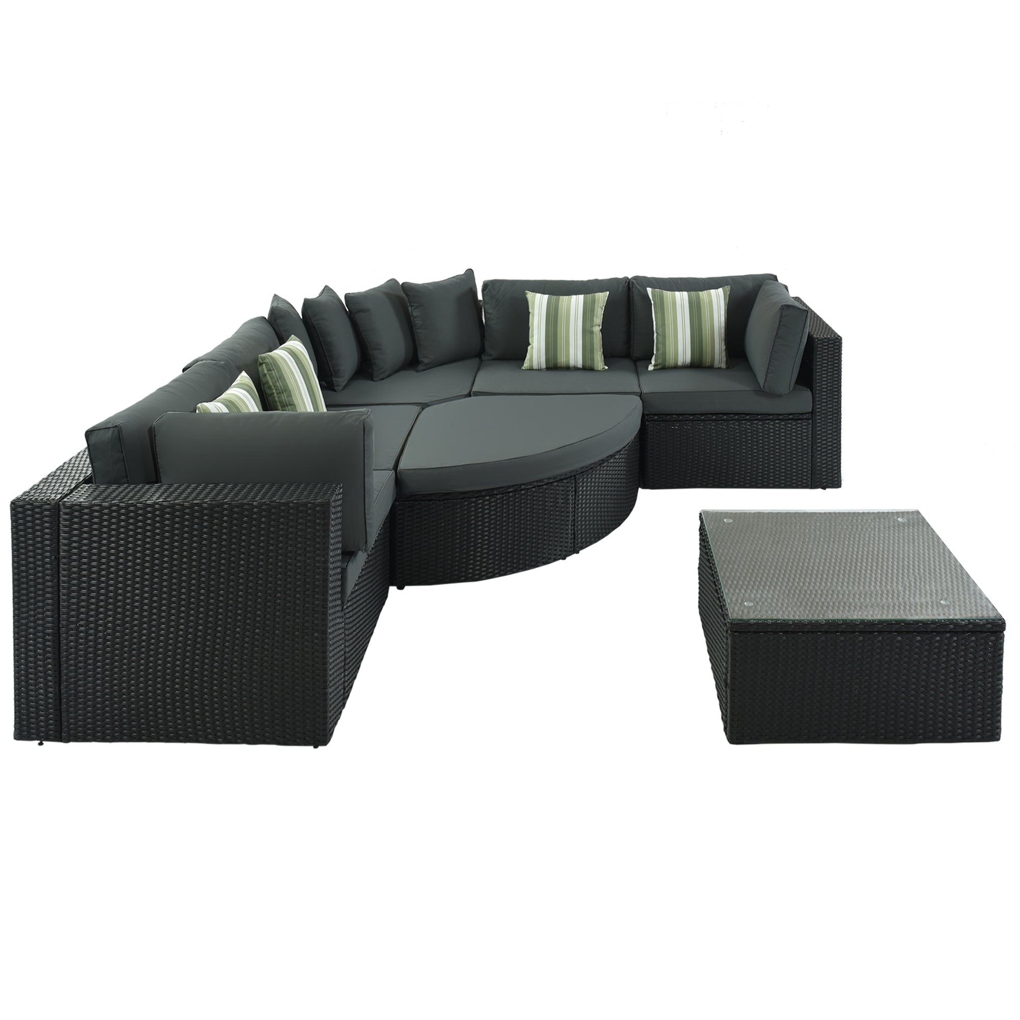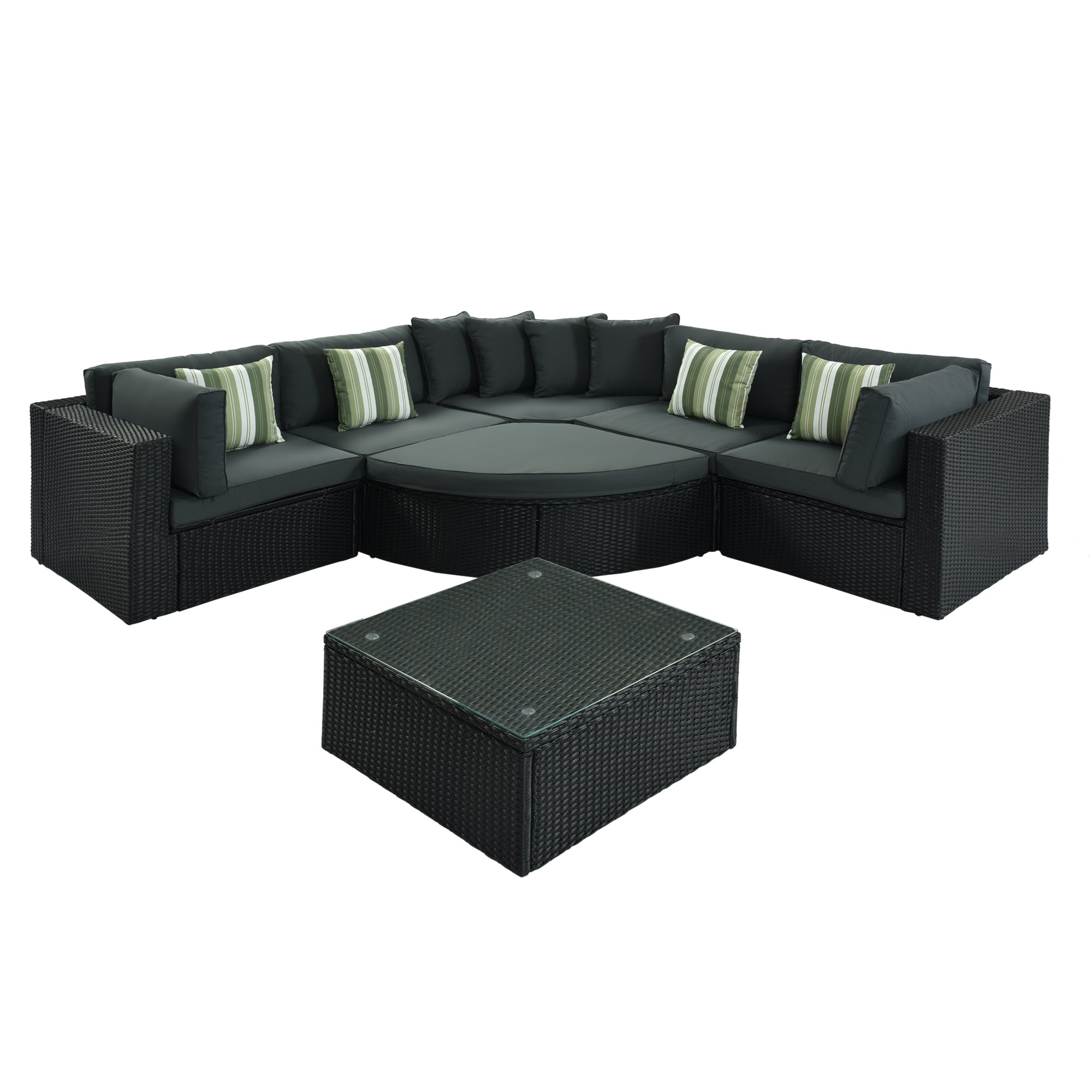 GO 7-piece Outdoor Wicker Sofa Set, Rattan Sofa Lounger, With Striped Green Pillows, Conversation Sofa, For Patio, Garden, Deck, Black Wicker, Gray Cushion FG201212AAE-djyc