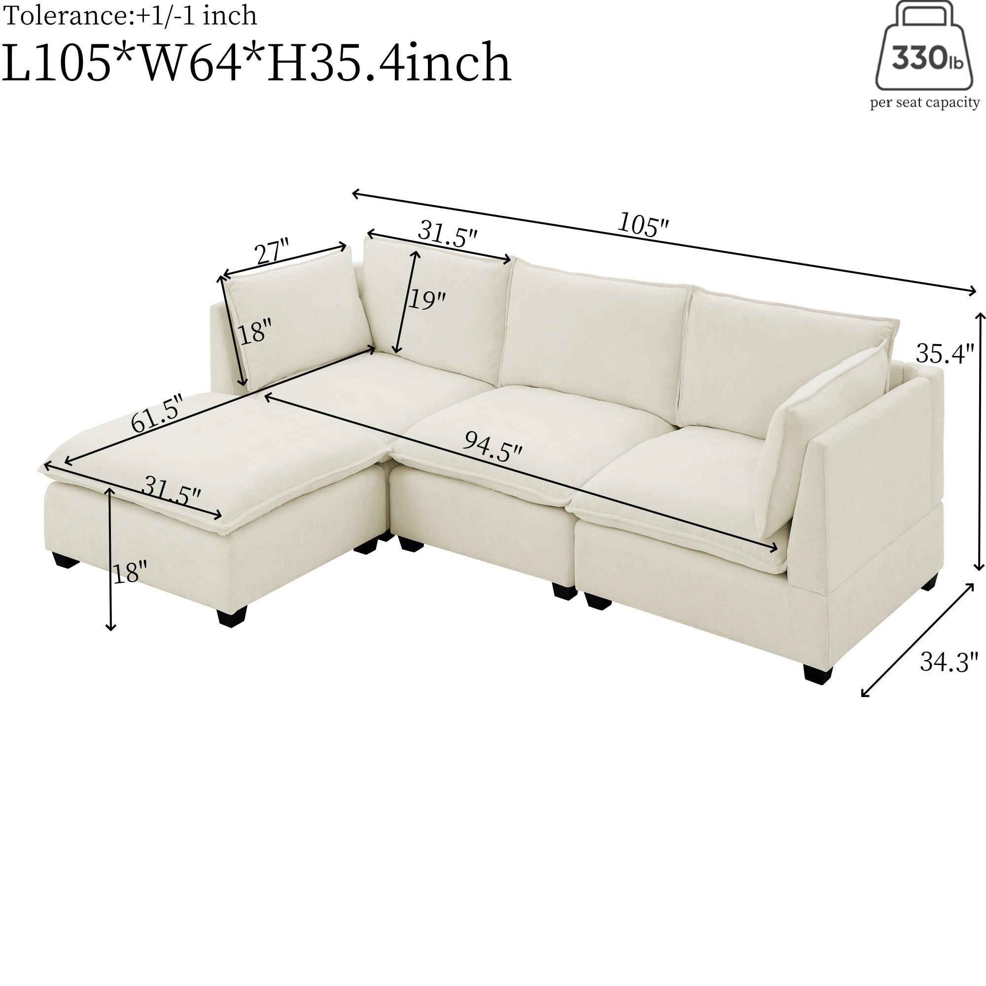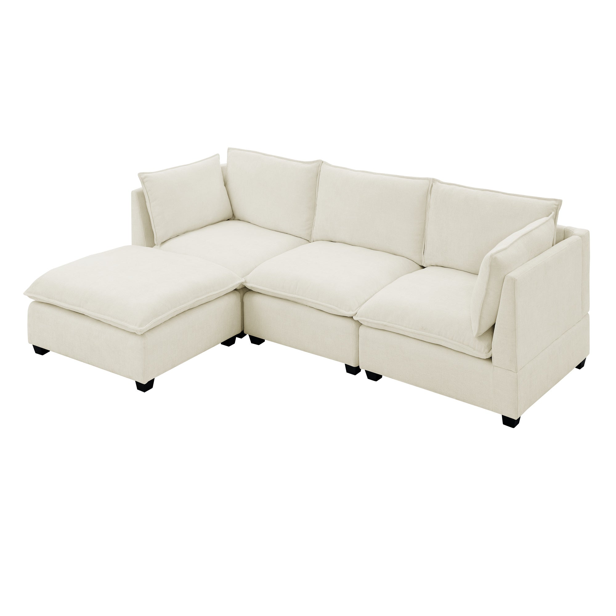 Convertible Sectional Sofa Couch with Ottoman, Cloud Couch 3 Seat L Shaped Sofa with Padded Armrests, Cloud Sofa for Living Room, Apartment and Office, Beige(Beige White) W1117S00174-djyc