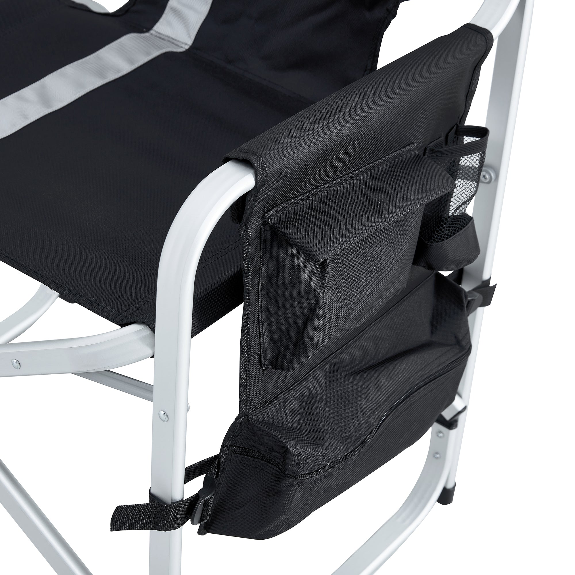 1-piece Padded Folding Outdoor Chair with Side Table and Storage Pockets,Lightweight Oversized Directors Chair for indoor, Outdoor Camping, Picnics and Fishing,Black/Grey W24172215-djyc