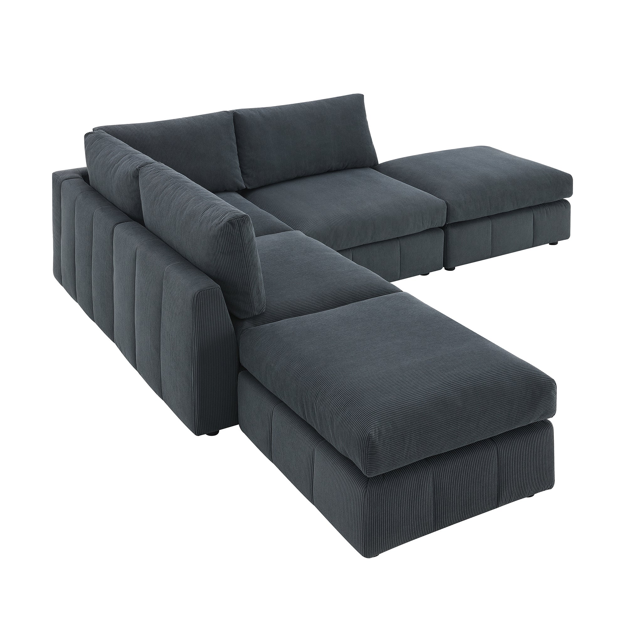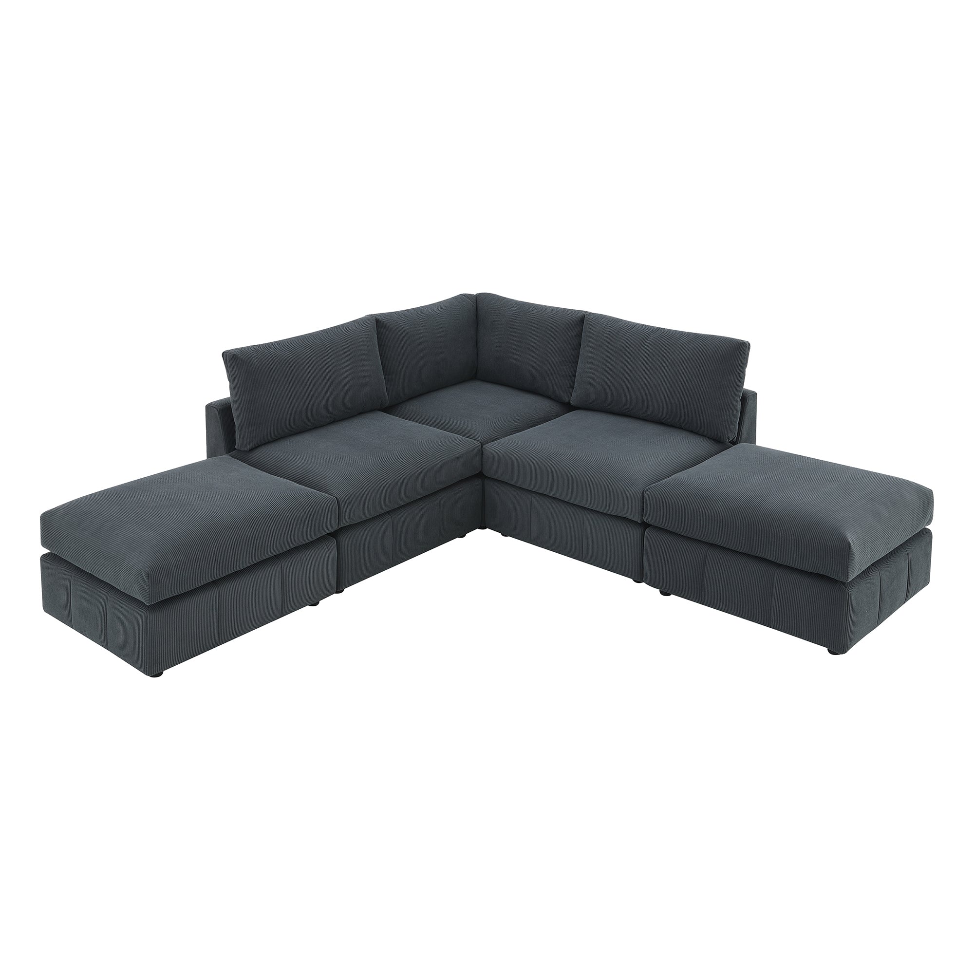 93'Modern Sectional Sofa with Vertical Stripes,5-Seat Armless Couch Set with Convertible Ottomans,Various Combinations,L-Shape Indoor Furniture for Living Room,Apartment, 2 Colors GS000199AAE-djyc
