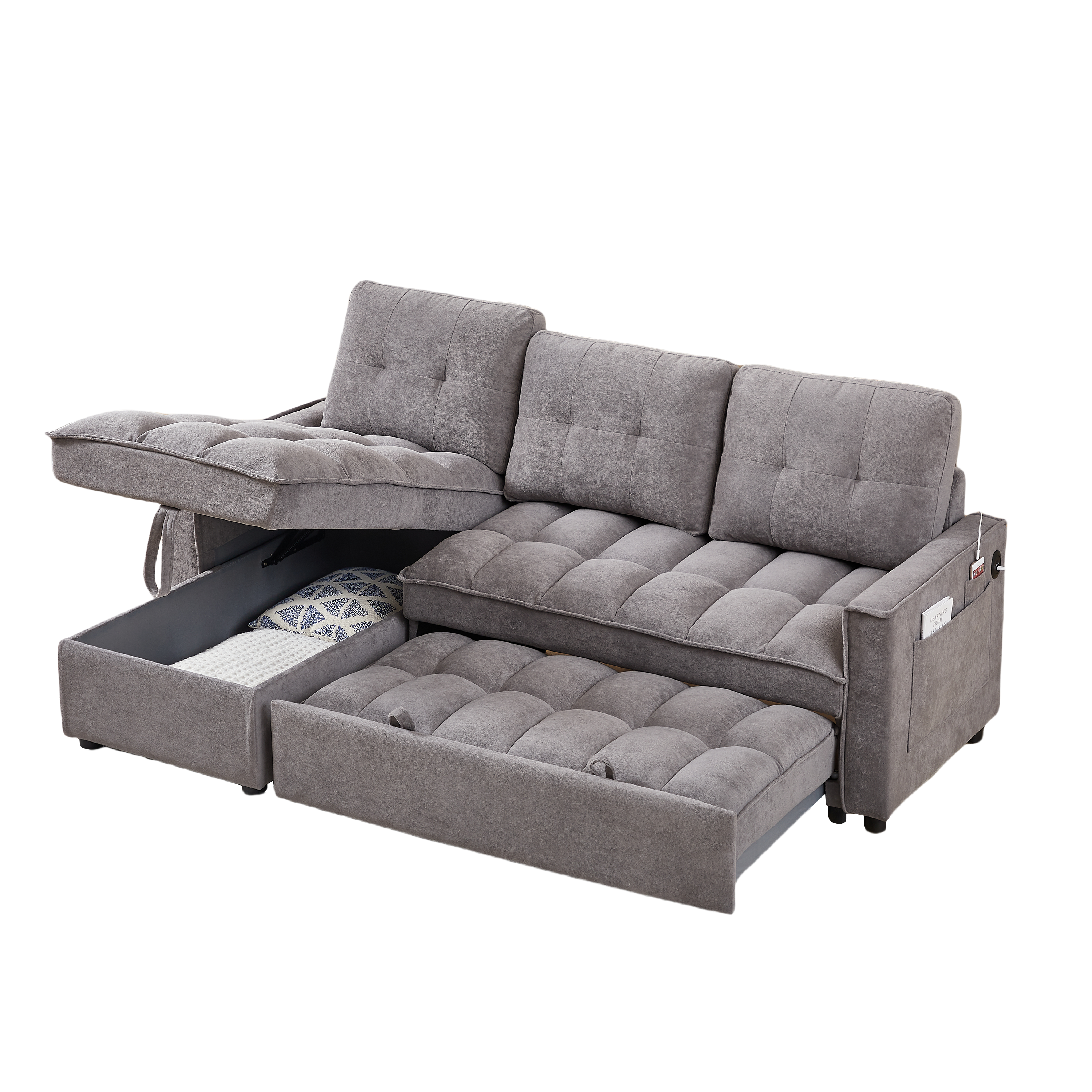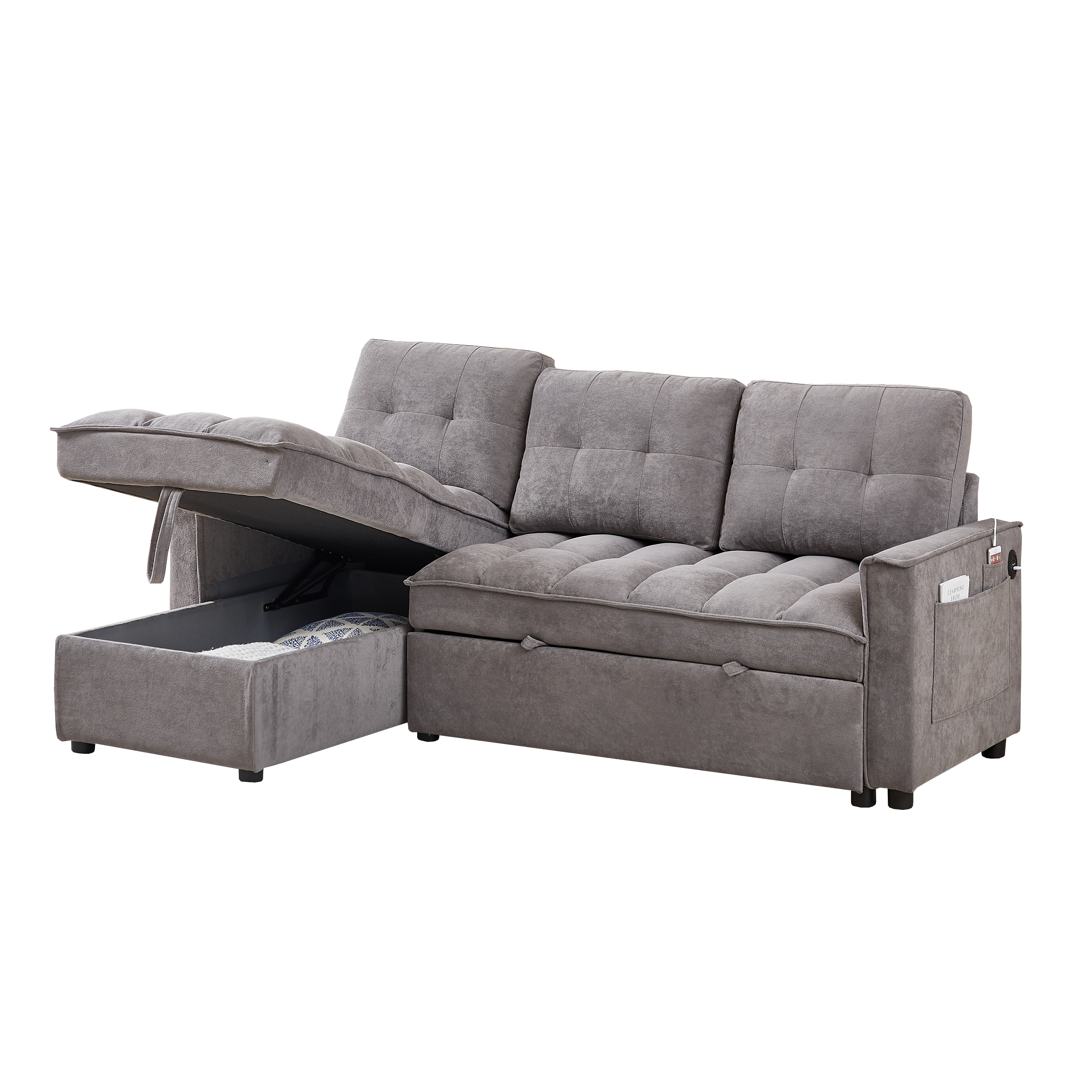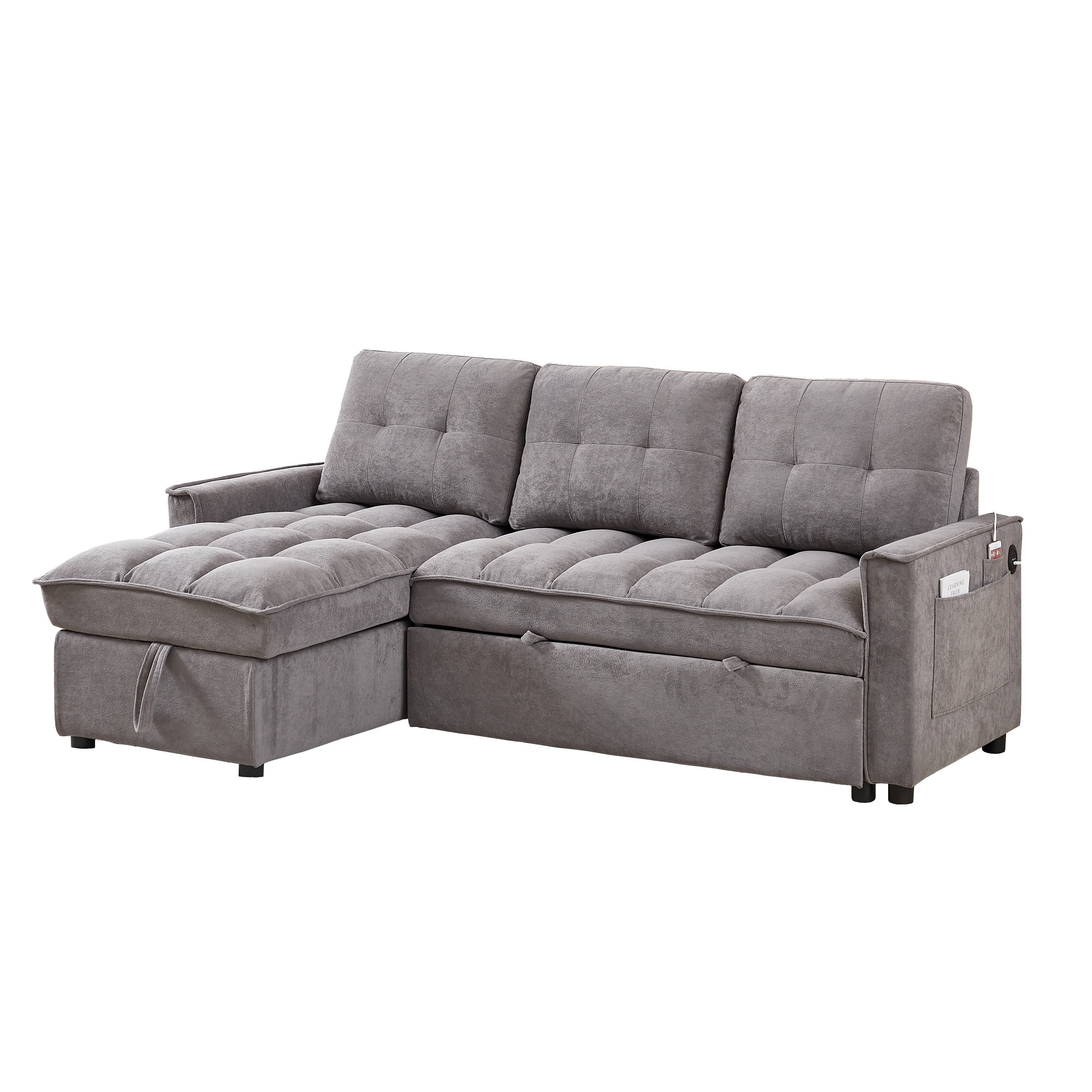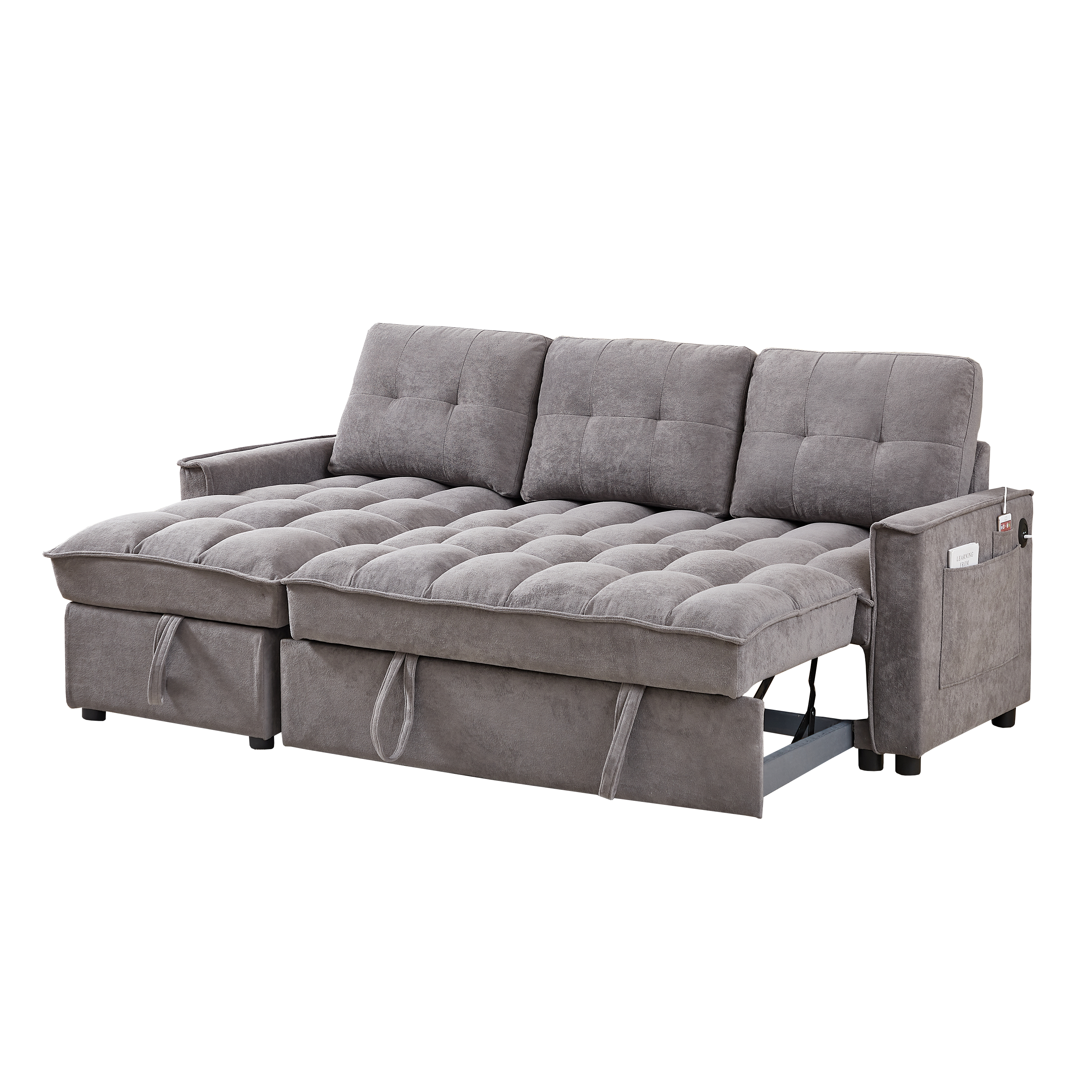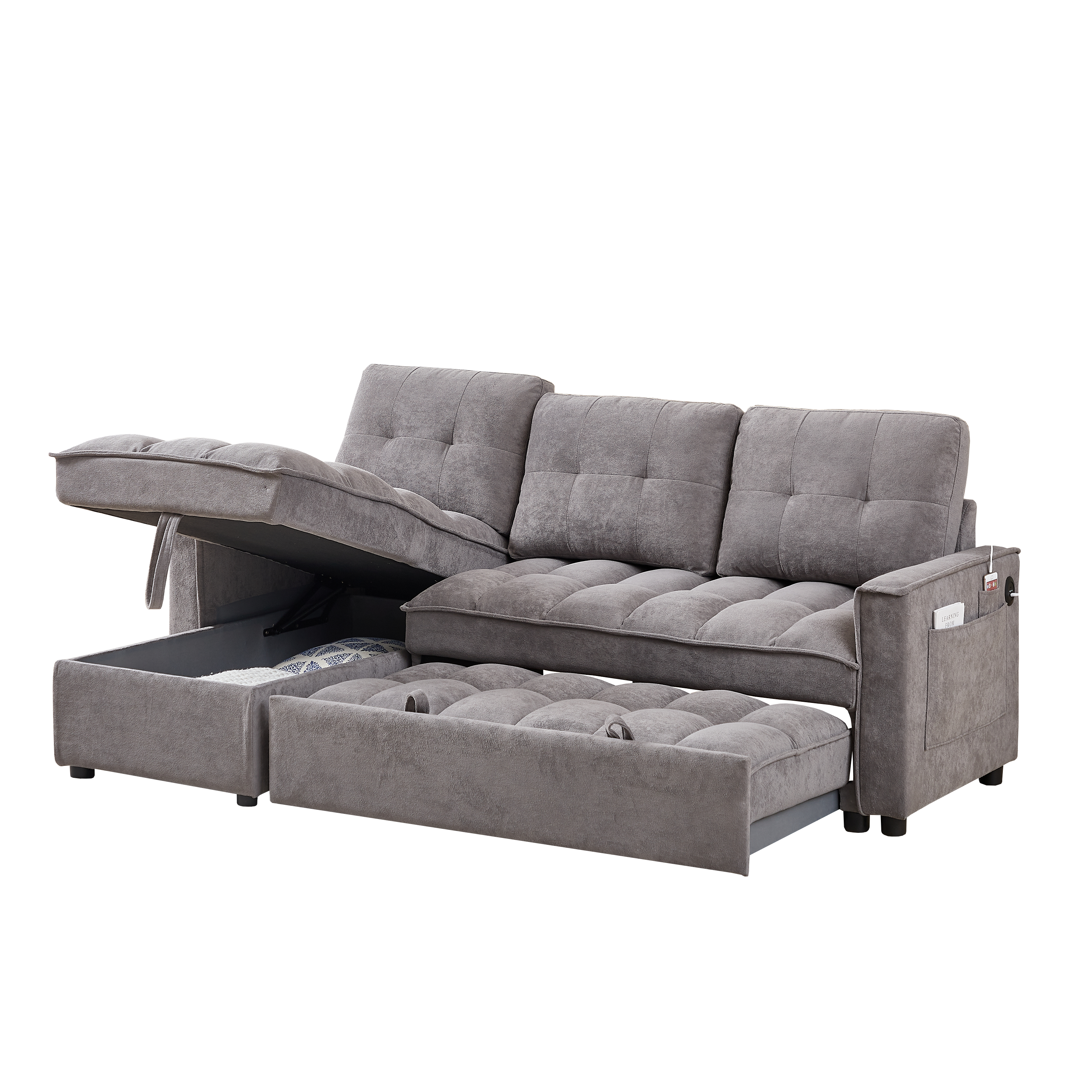 MH 78.75' Reclining Sofa, Pull-Out Sofa Bed with USB and tape-c charging ports, L-Shaped Sectional Sofa with Reclining Storage and Arm Side Organizer Pocket Features, Living Room Comfort Sofa W1193S00102-djyc