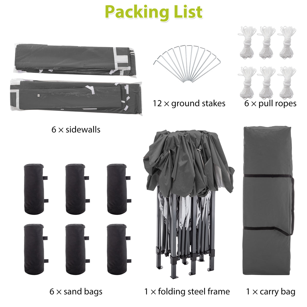 10'x20' EZ Pop Up Canopy Outdoor Portable Party Folding Tent with 6 Removable Sidewalls + Carry Bag + 6 pcs Weight Bag Beige Grey W1212P146439-djyc