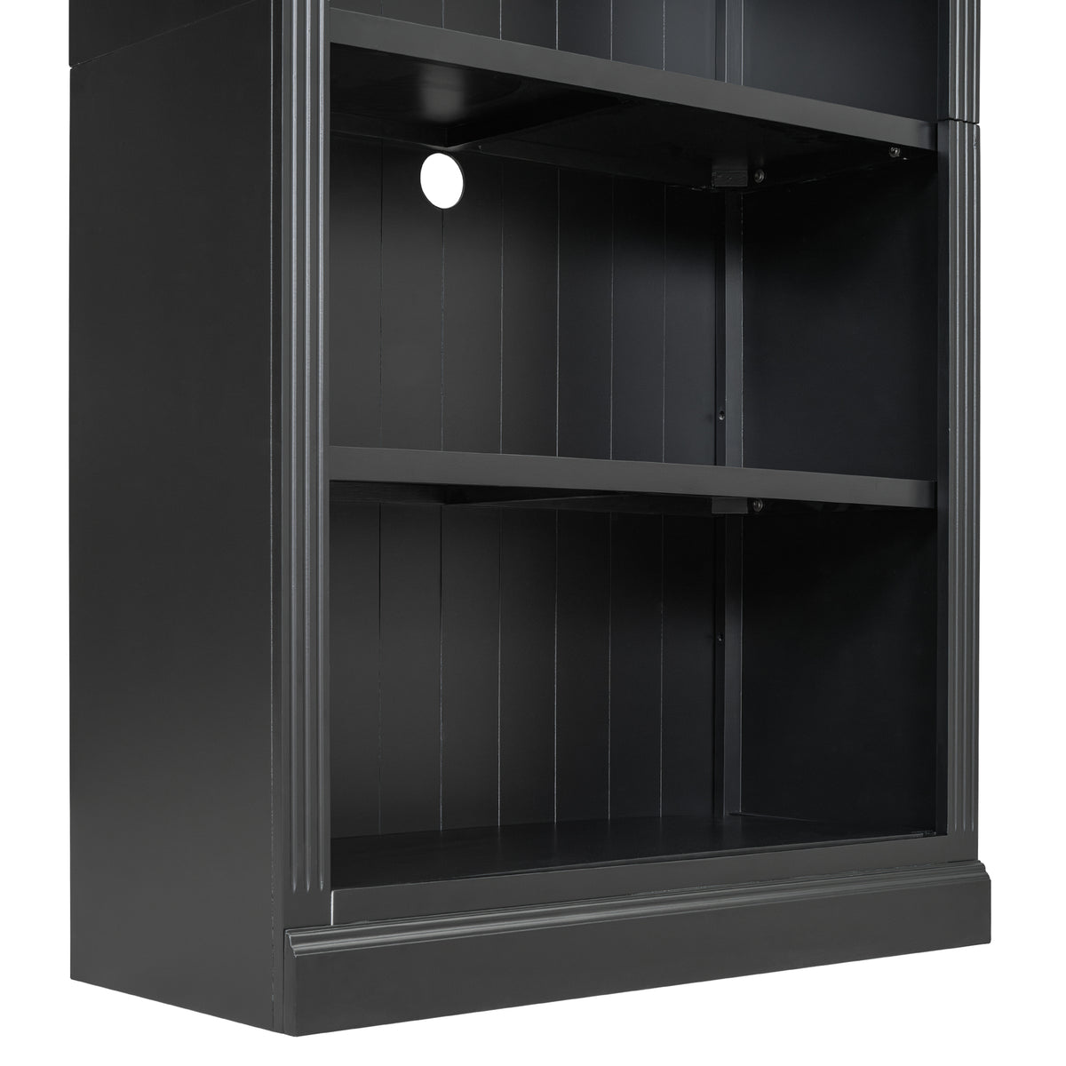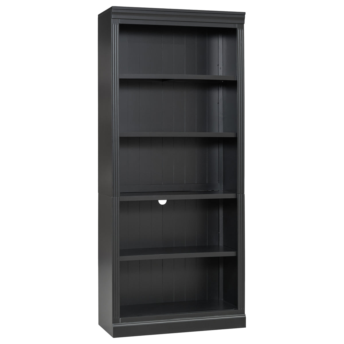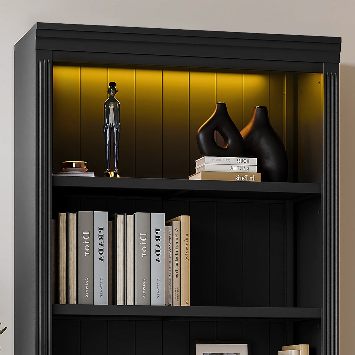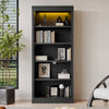 83.4" Tall Black Wood Bookcase with LED Light – 5-Tier Adjustable Shelves N751S246934B-djyc