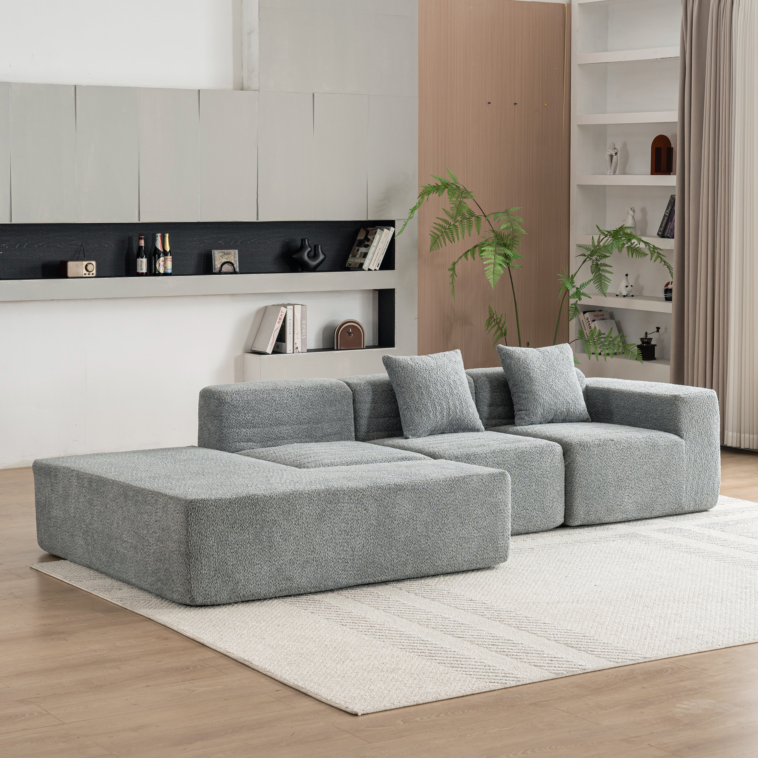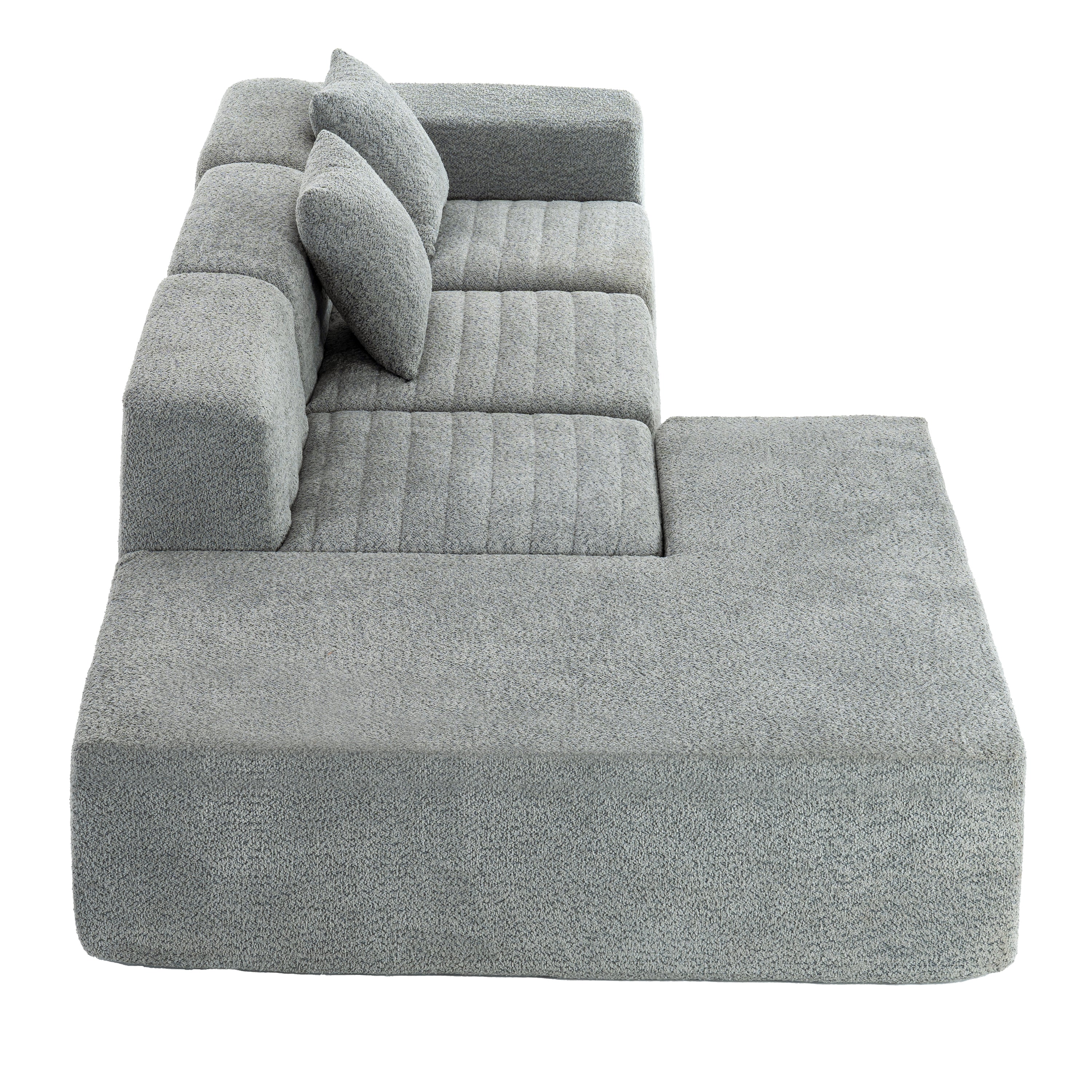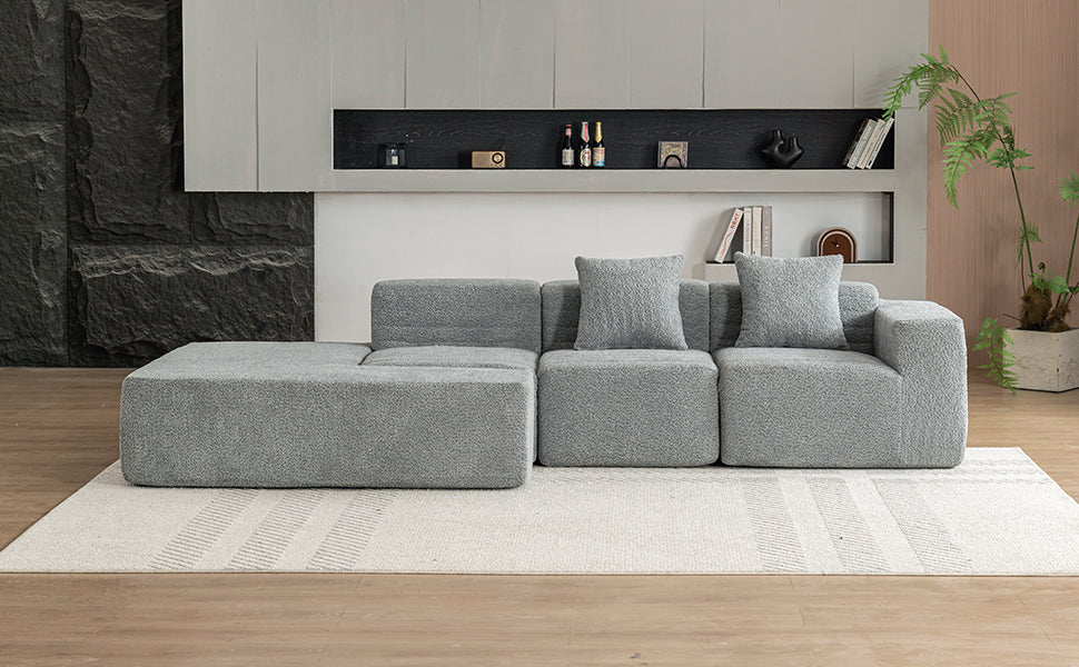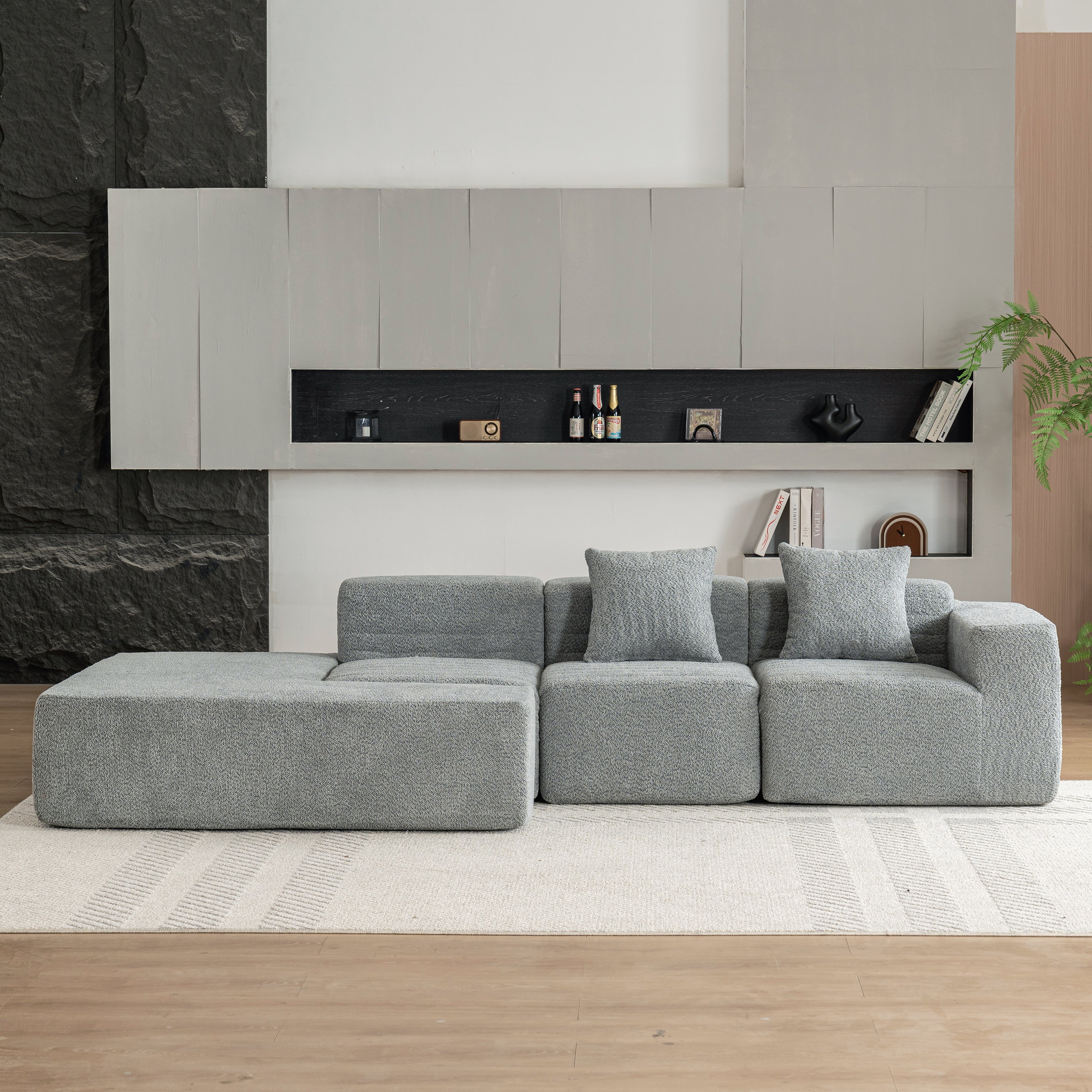 116.5' Sectional Sofa Full-compressed Sofa Couch Free-combined Sofa for Living Room, Grey N719S001630E-djyc