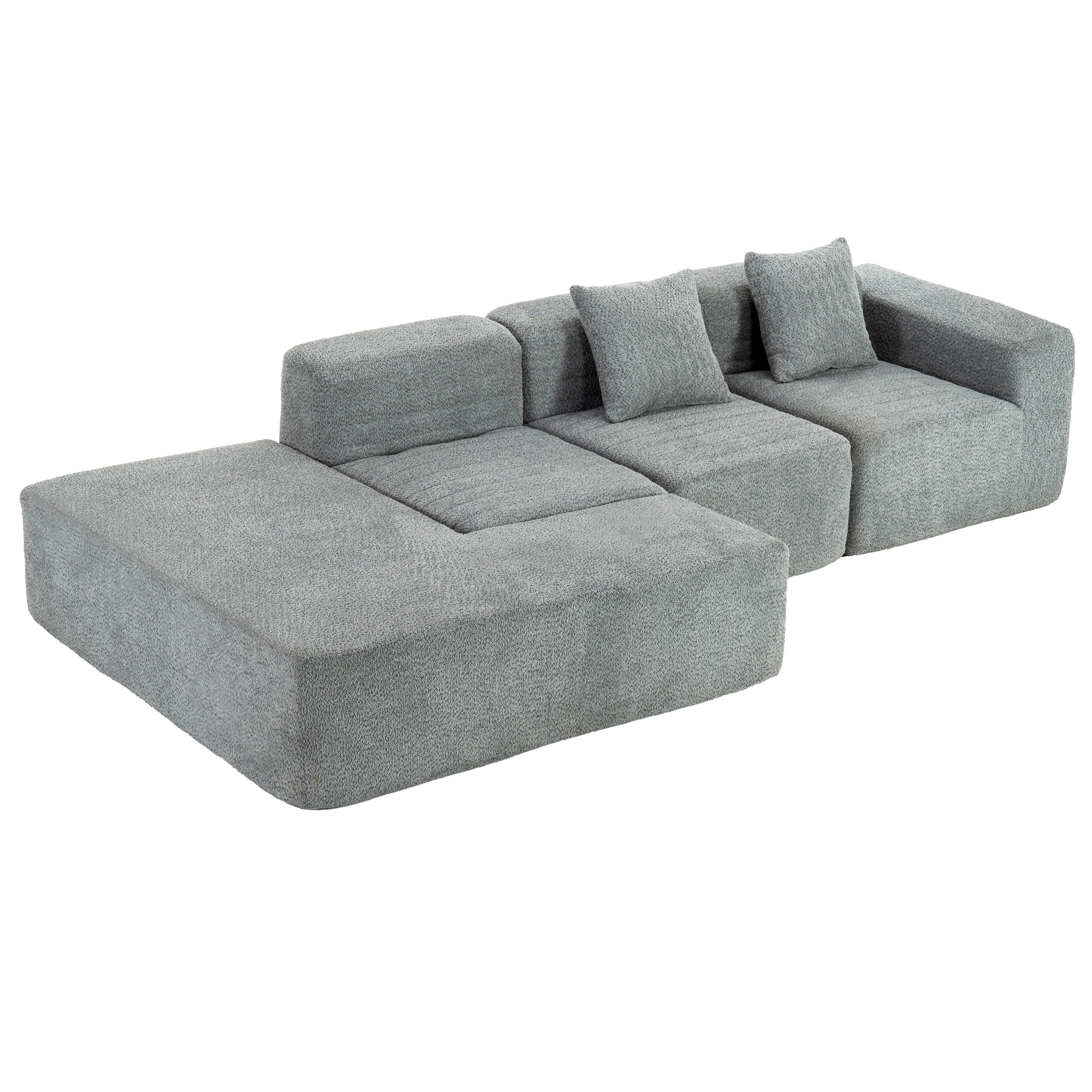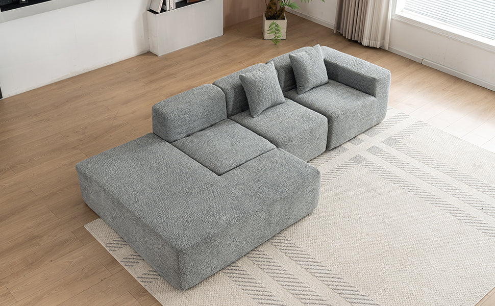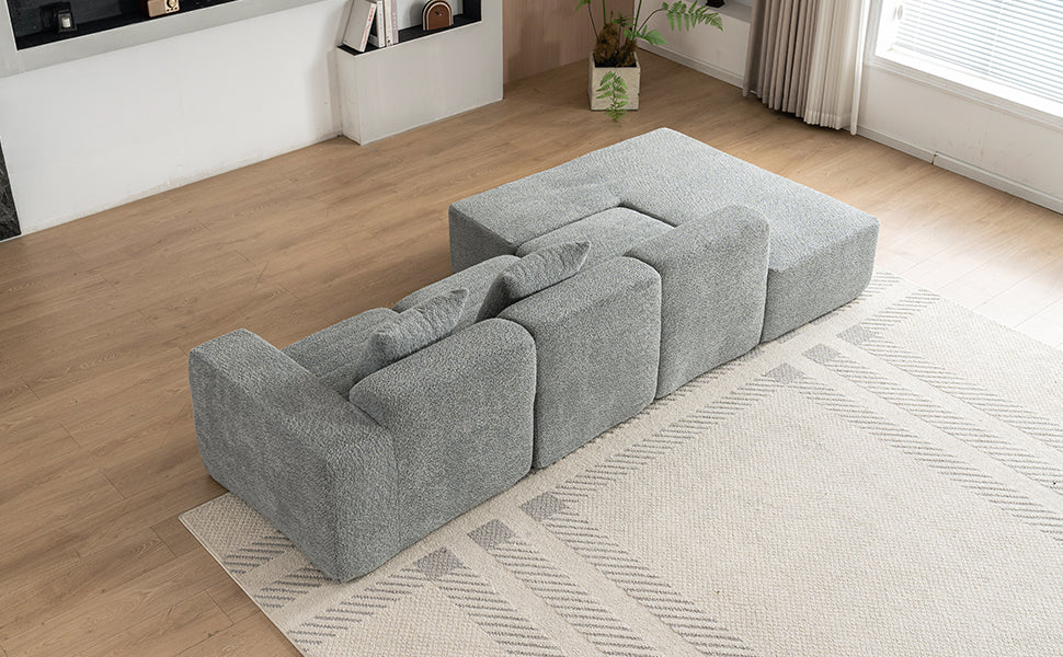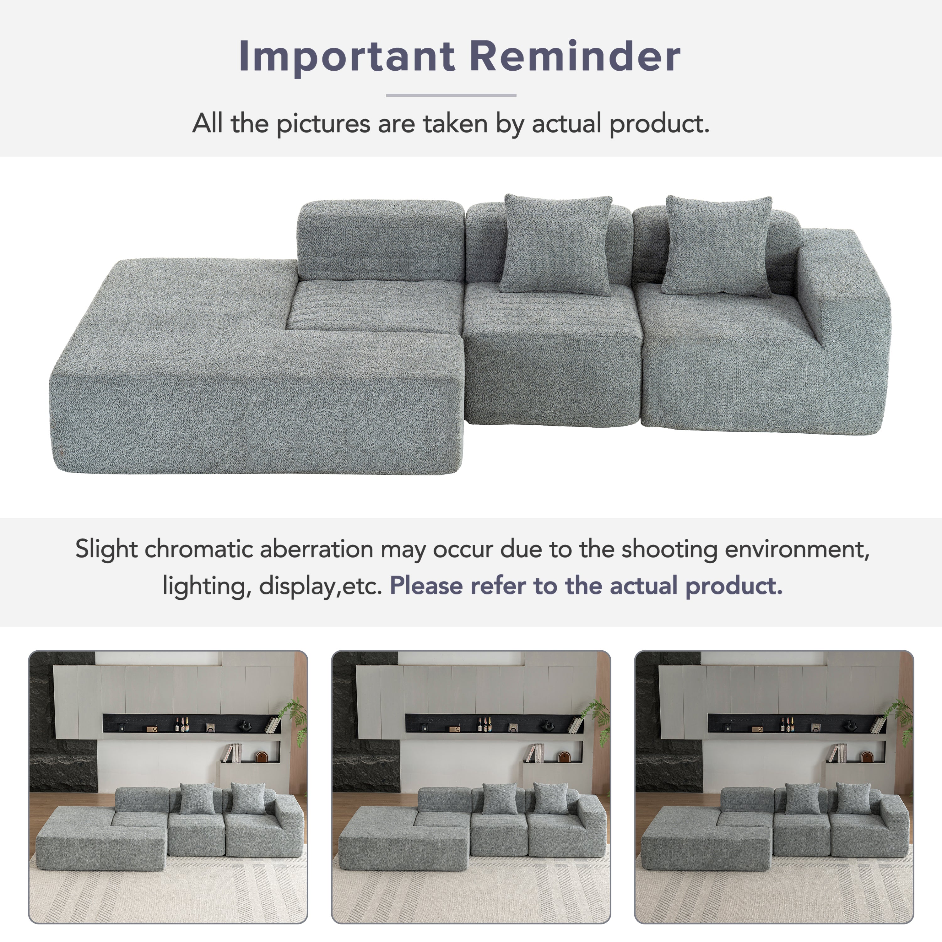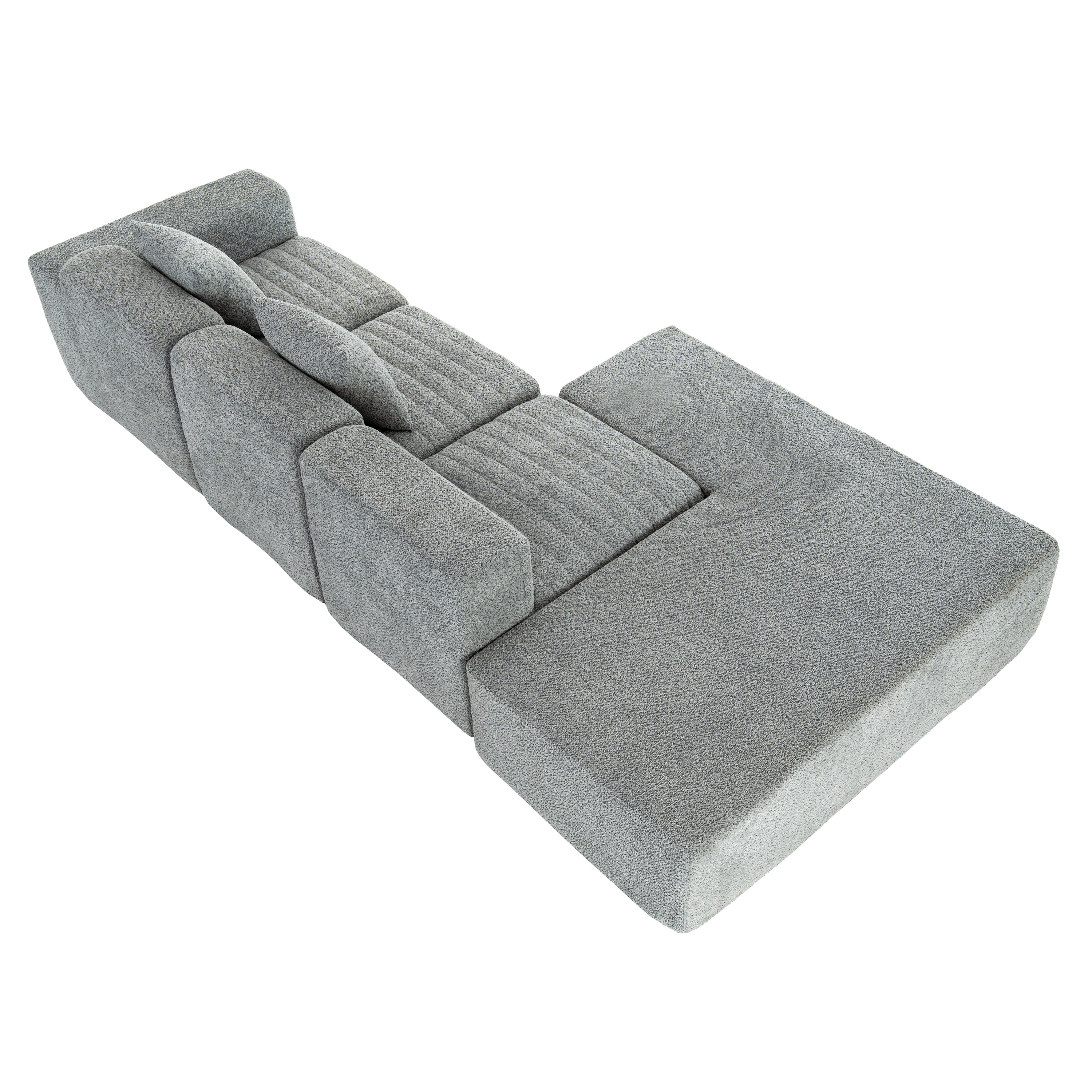 116.5' Sectional Sofa Full-compressed Sofa Couch Free-combined Sofa for Living Room, Grey N719S001630E-djyc