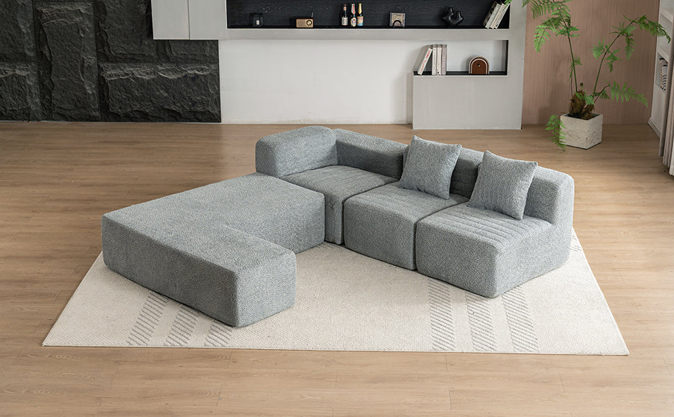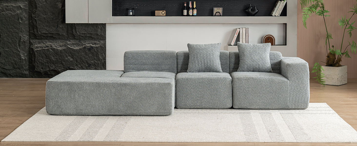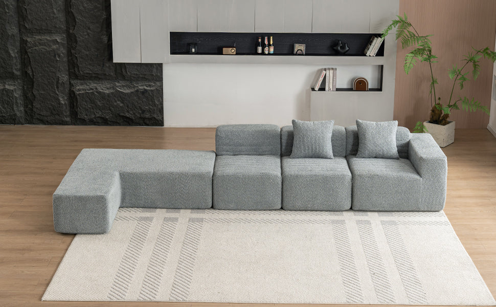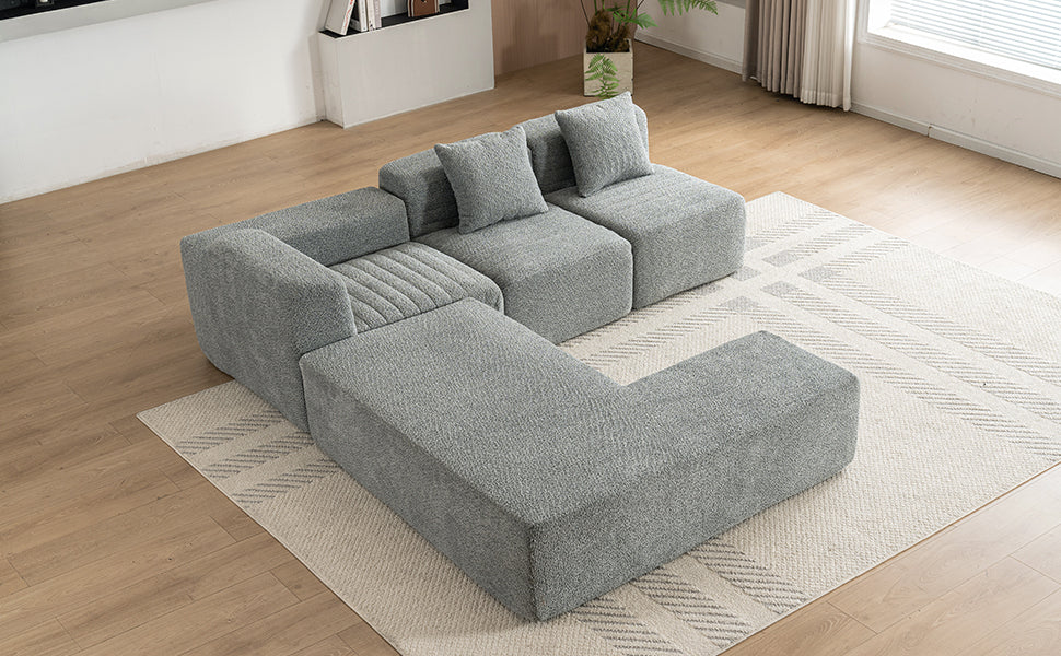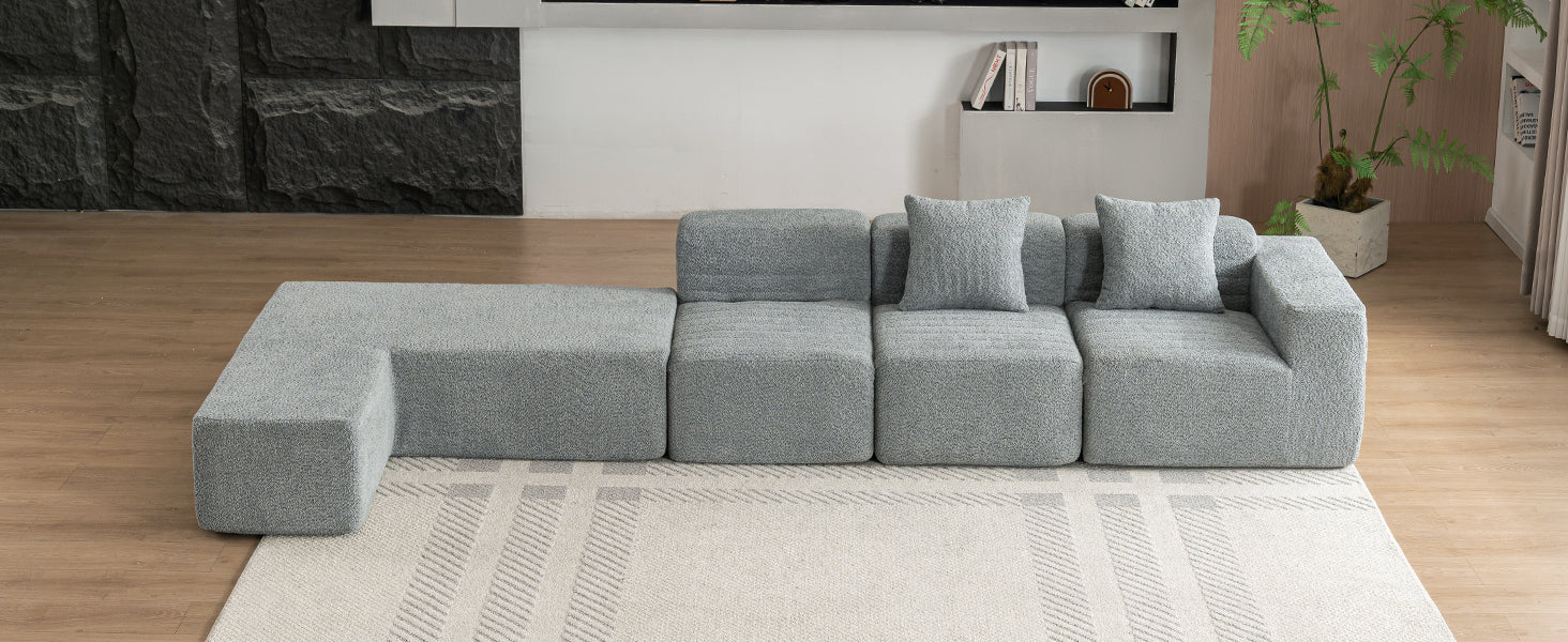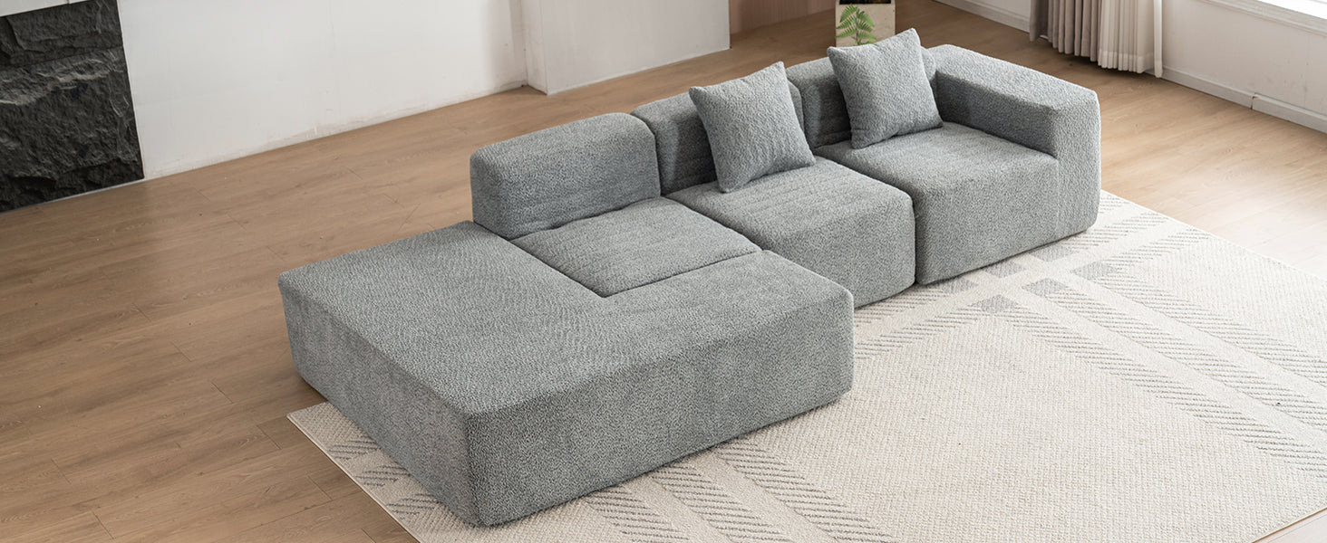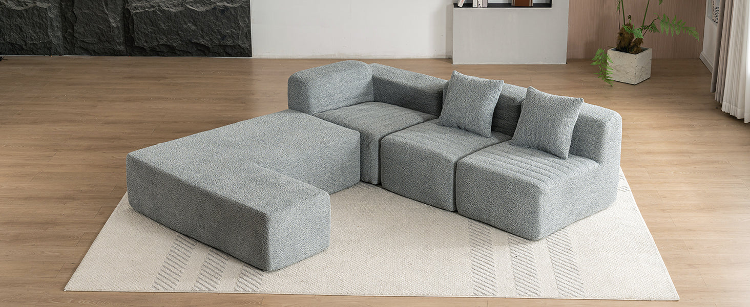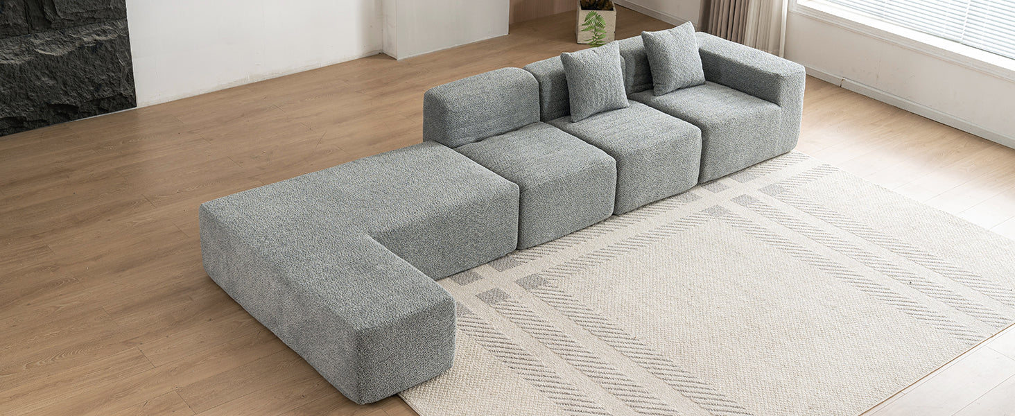 - Free Combination - This sofa consists of four individual modules, allowing you to easily alter the shape of the sectional by repositioning the modules to create a variety of configurations.
