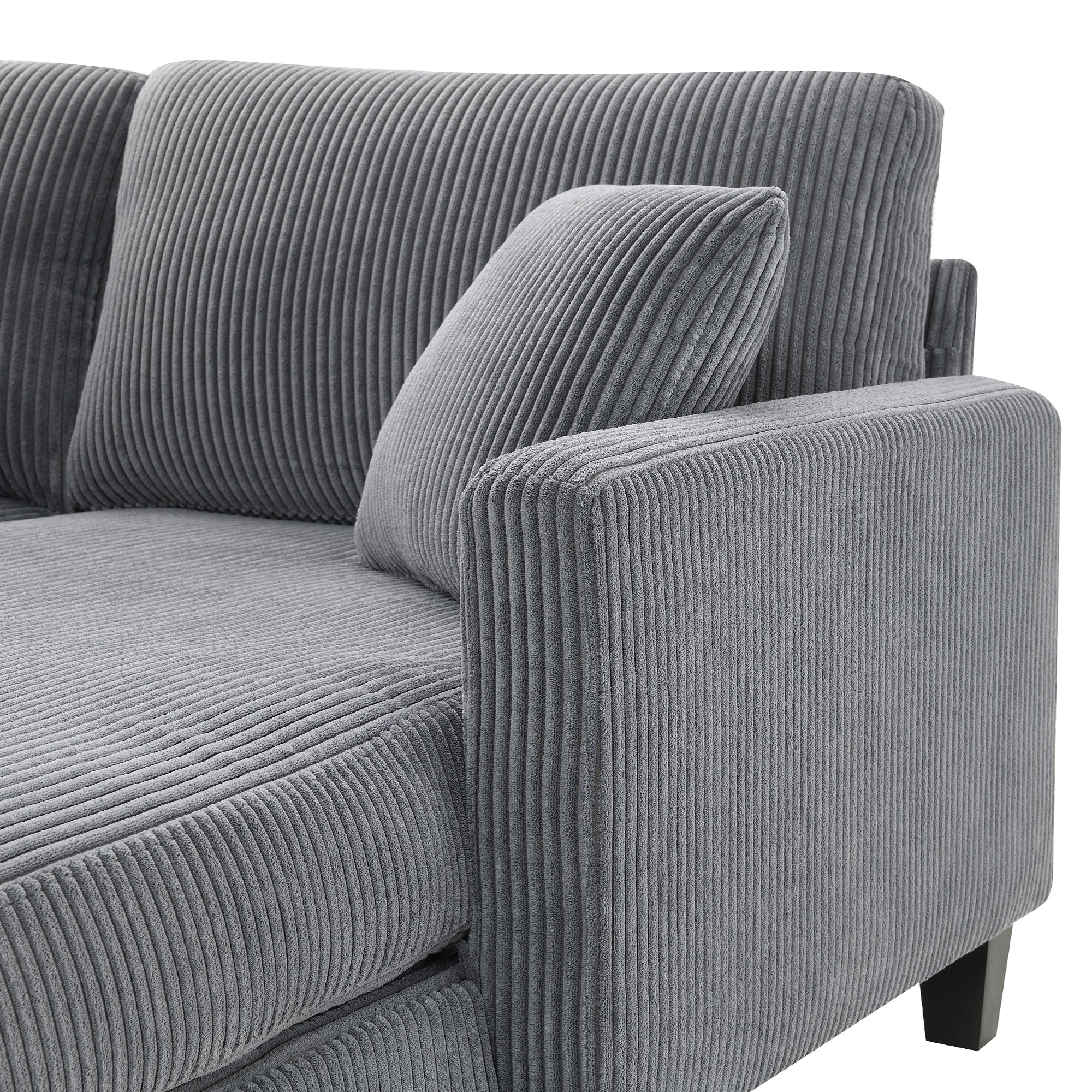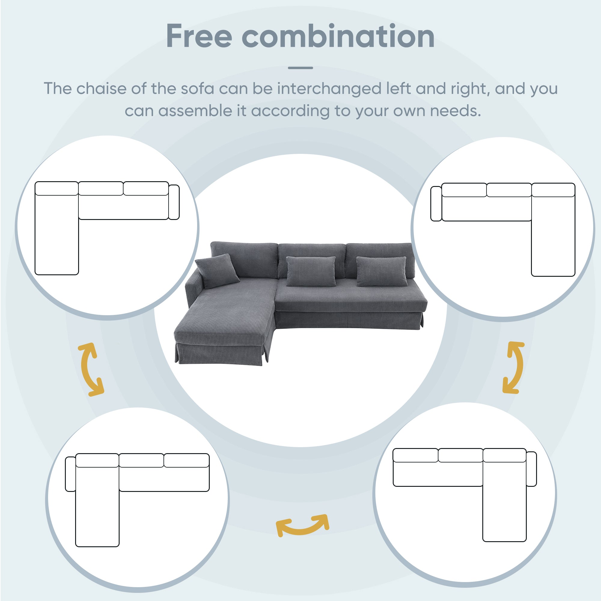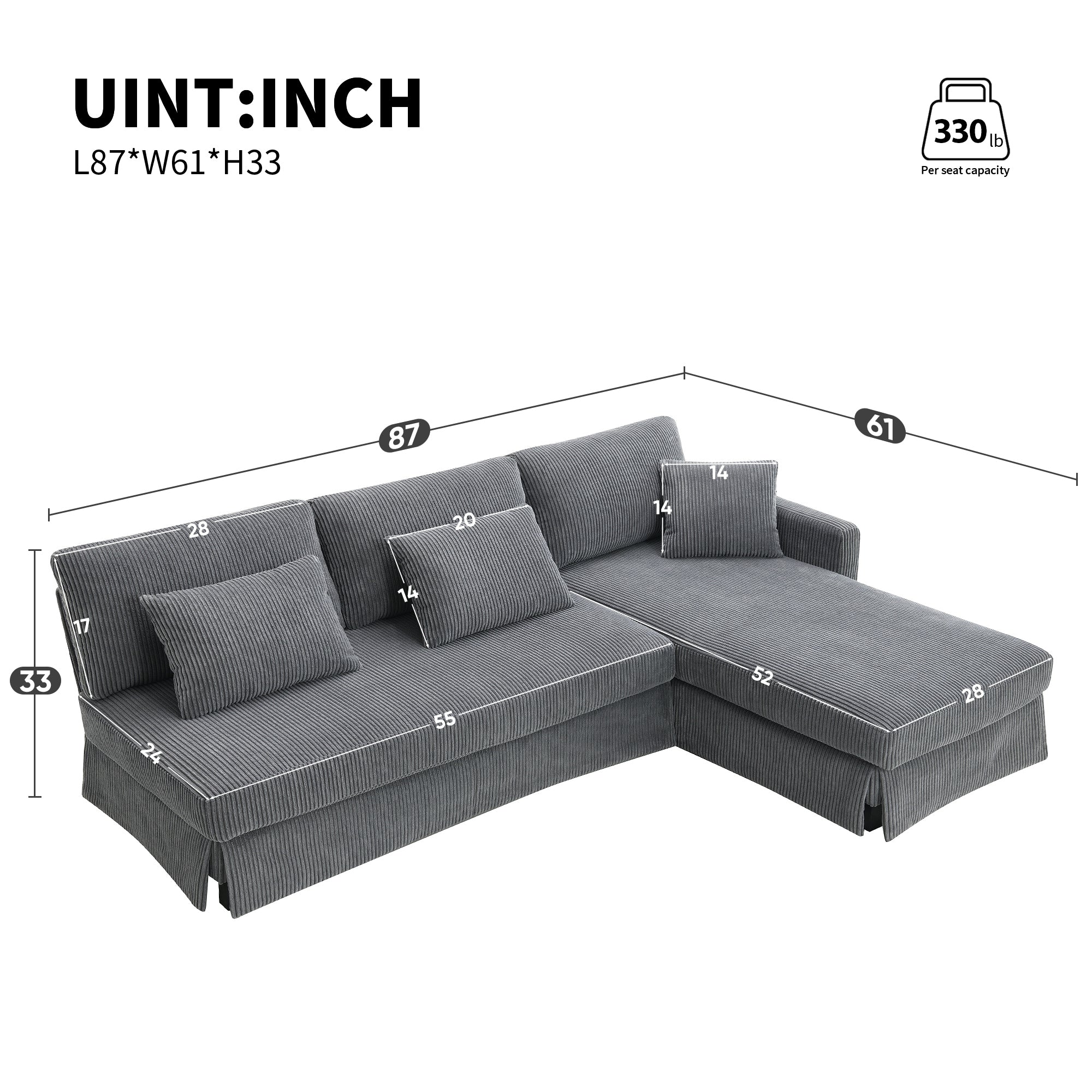 87*61'Modern L-shaped Corduroy Sofa with Reversible Chaise,4-seat Upholstered Sectional Indoor Furniture,Convertible Sleeper Couch with Pillows for Living Room,Apartment,3 Colors GS009022AAE-djyc