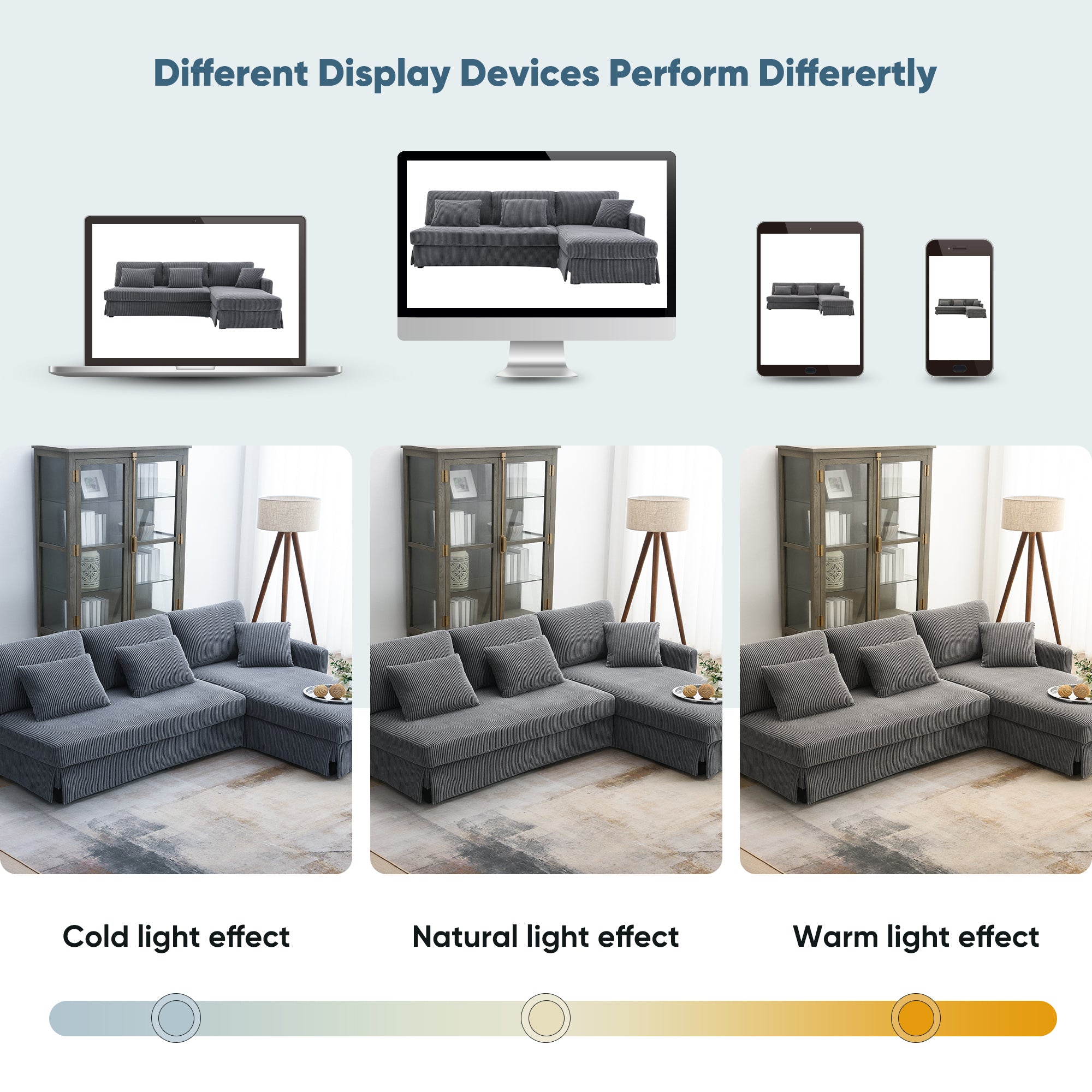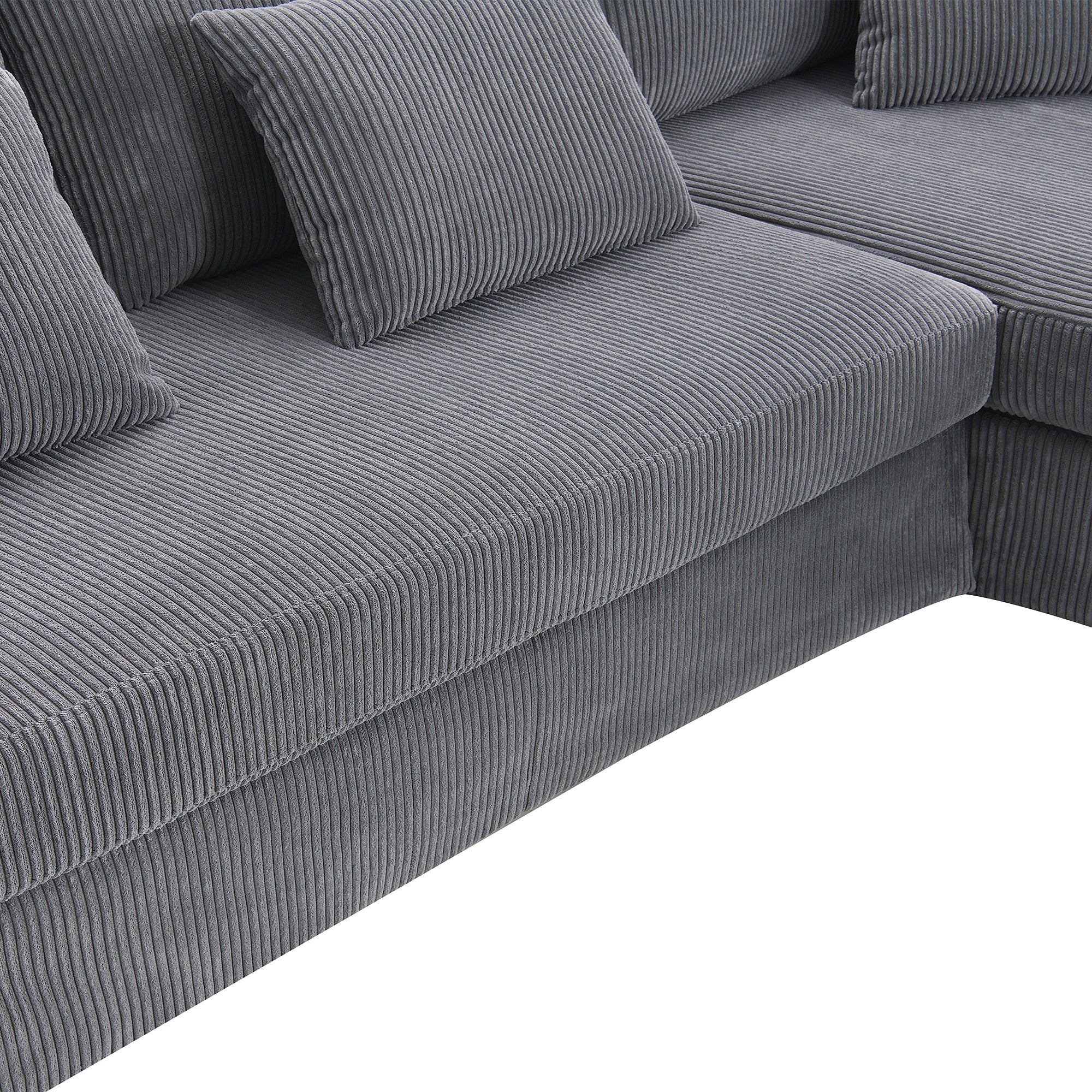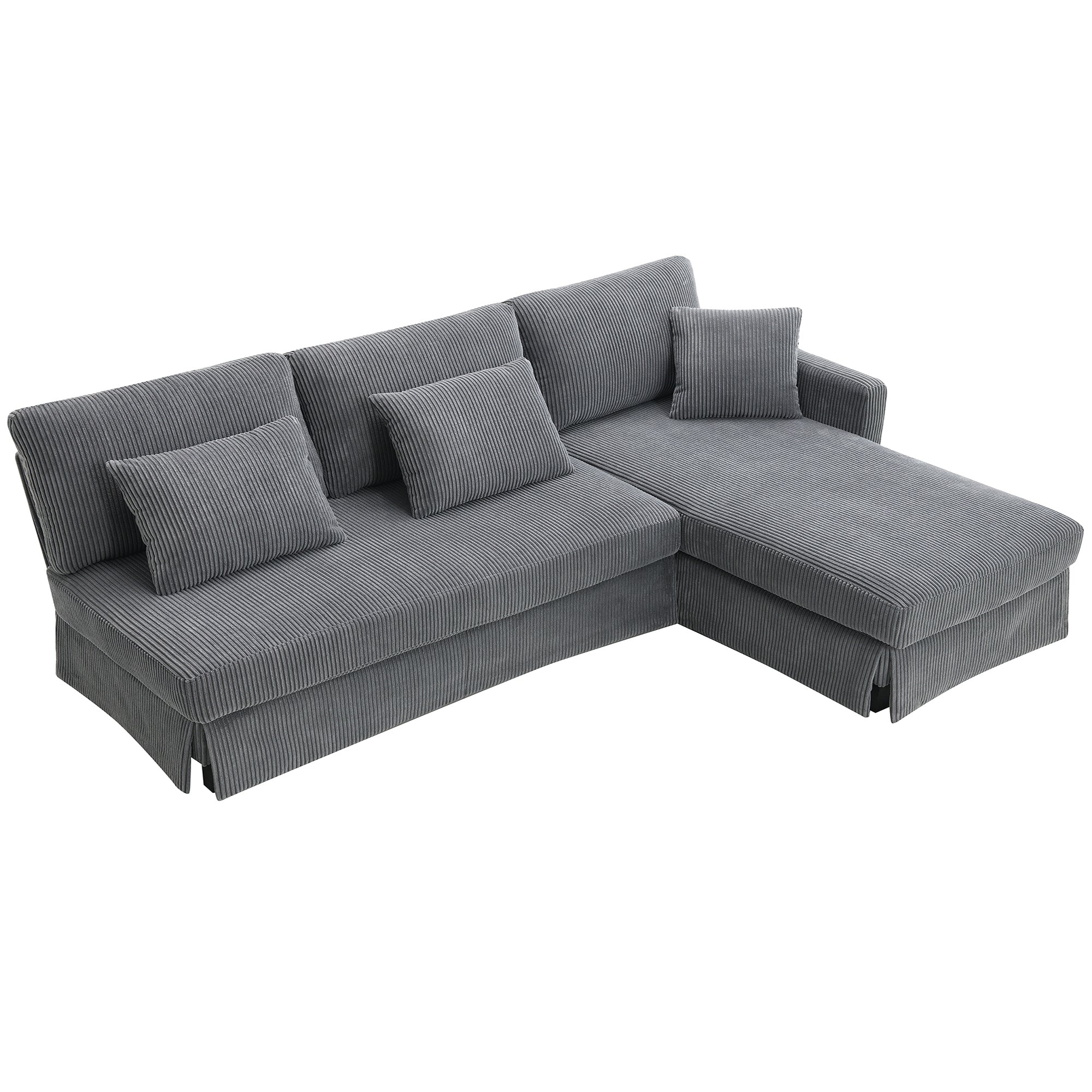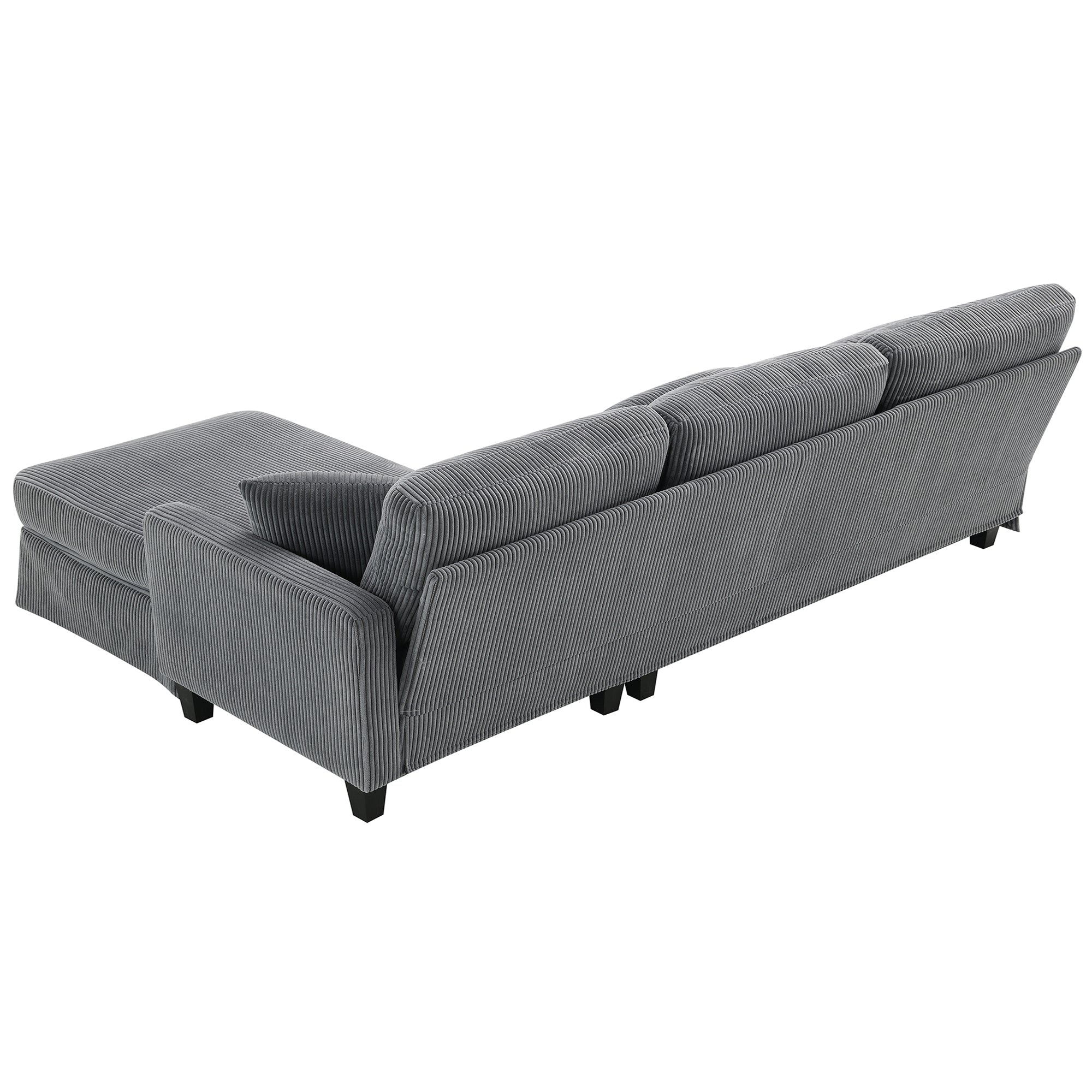87*61'Modern L-shaped Corduroy Sofa with Reversible Chaise,4-seat Upholstered Sectional Indoor Furniture,Convertible Sleeper Couch with Pillows for Living Room,Apartment,3 Colors GS009022AAE-djyc