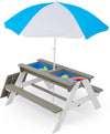 Wooden Kids Picnic Table, Sand and Water Table with Umbrella, Activity Table for Outdoor Backyard Patio Play D720094435-djyc