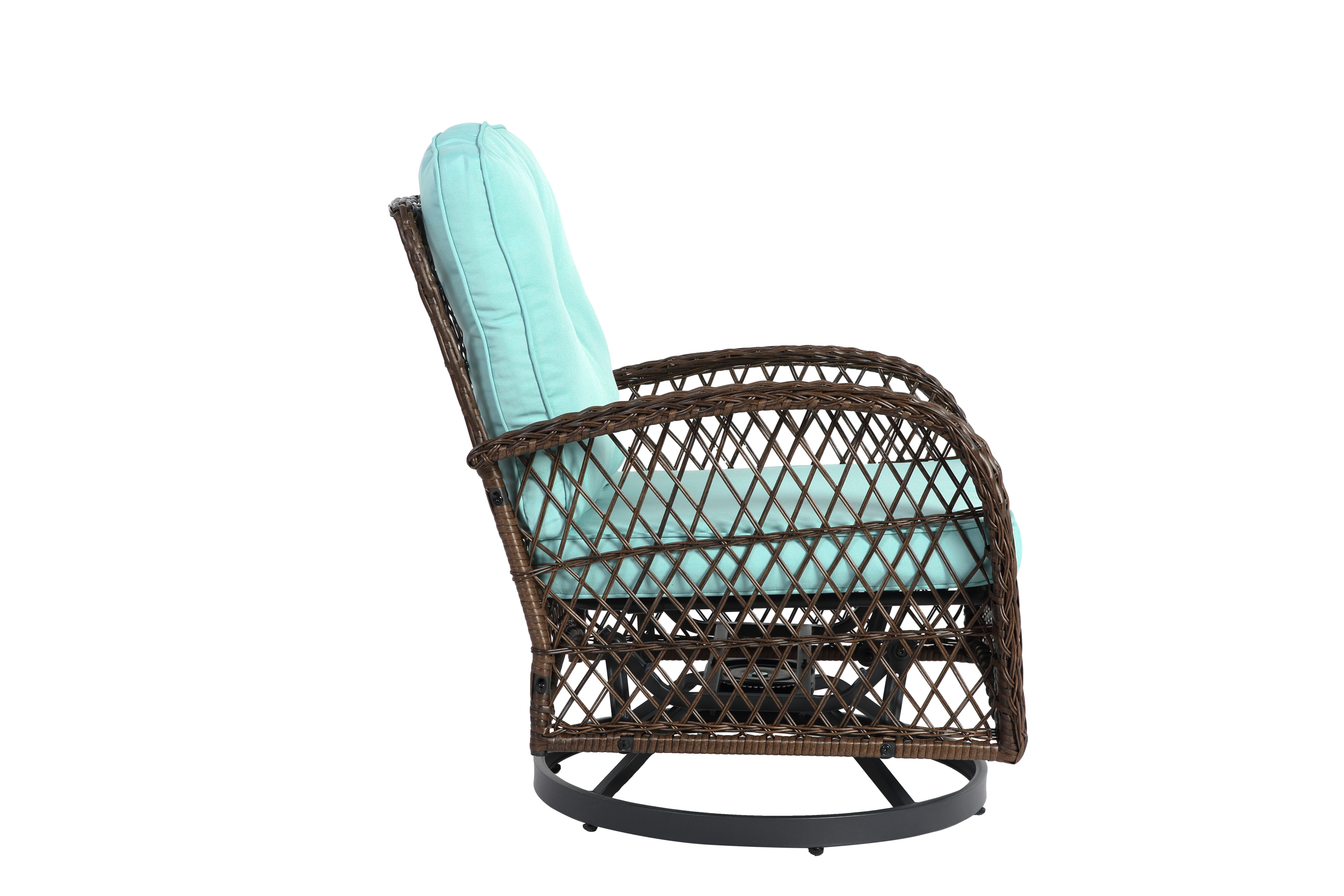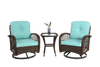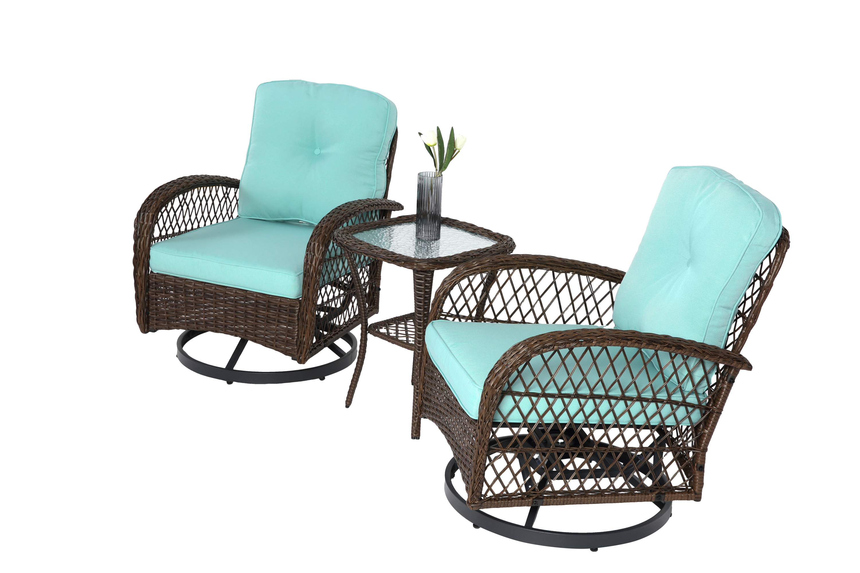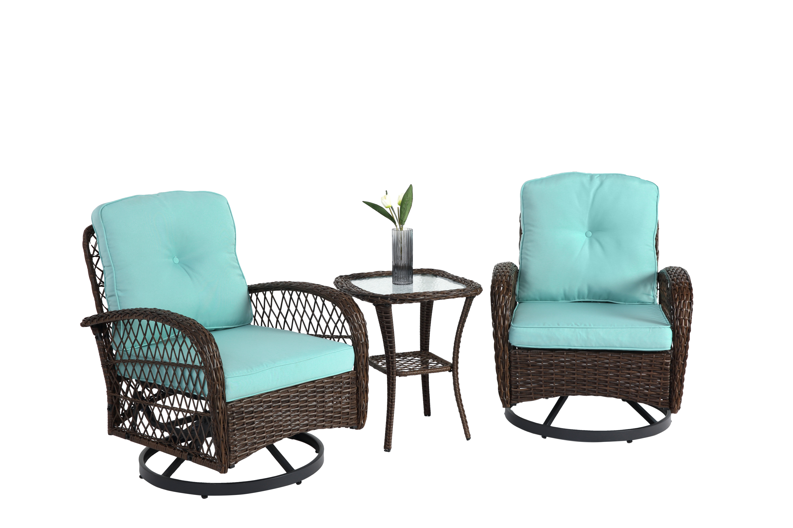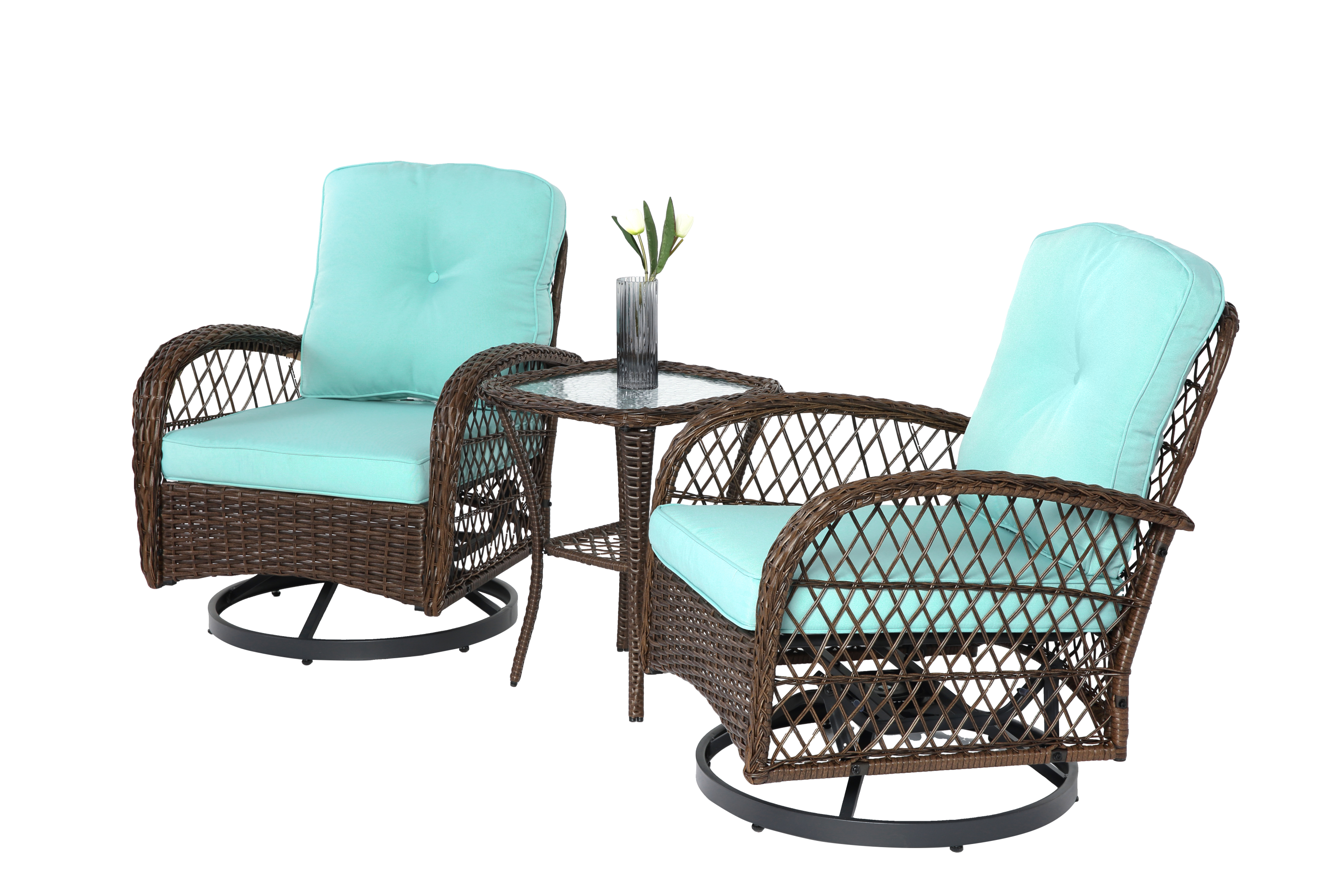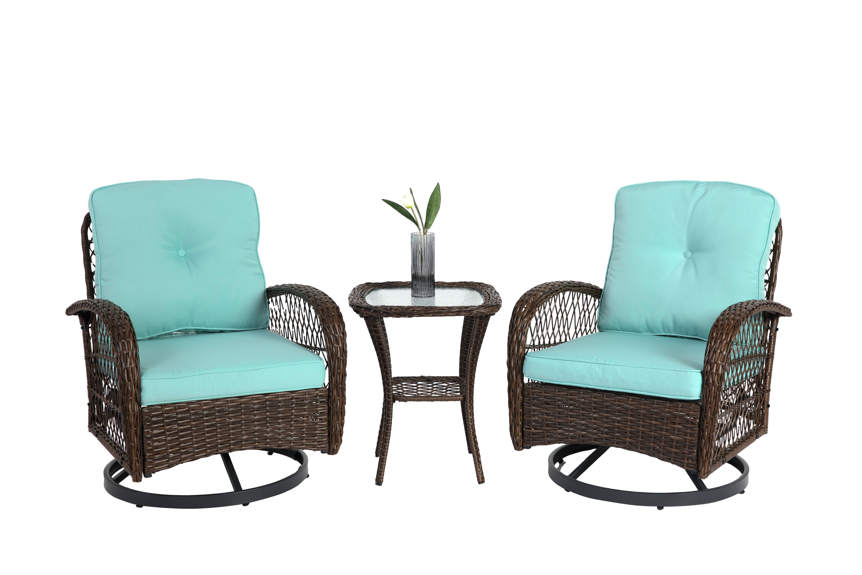 3 Pieces Outdoor Swivel Rocker Patio Chairs, 360 Degree Rocking Patio Conversation Set with Thickened Cushions and Glass Coffee Table for Backyard, Blue W640P263669-djyc