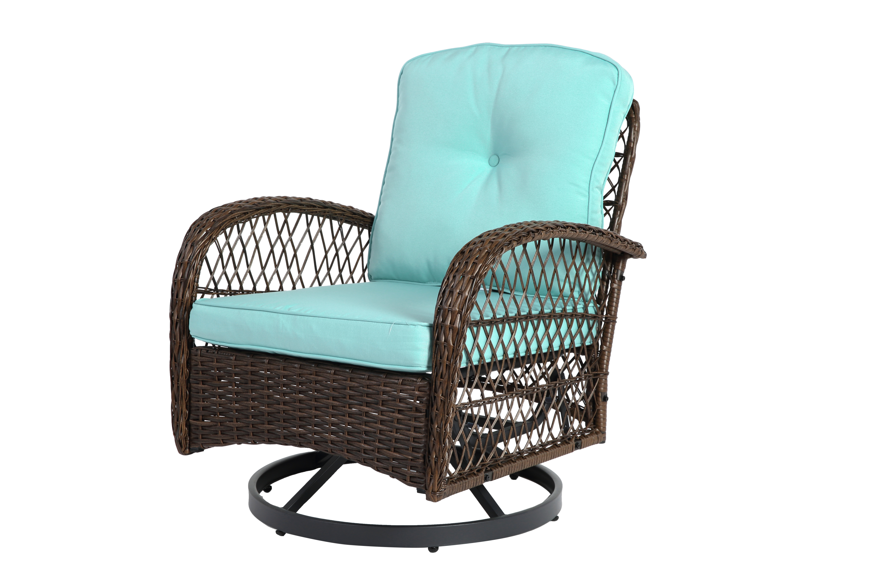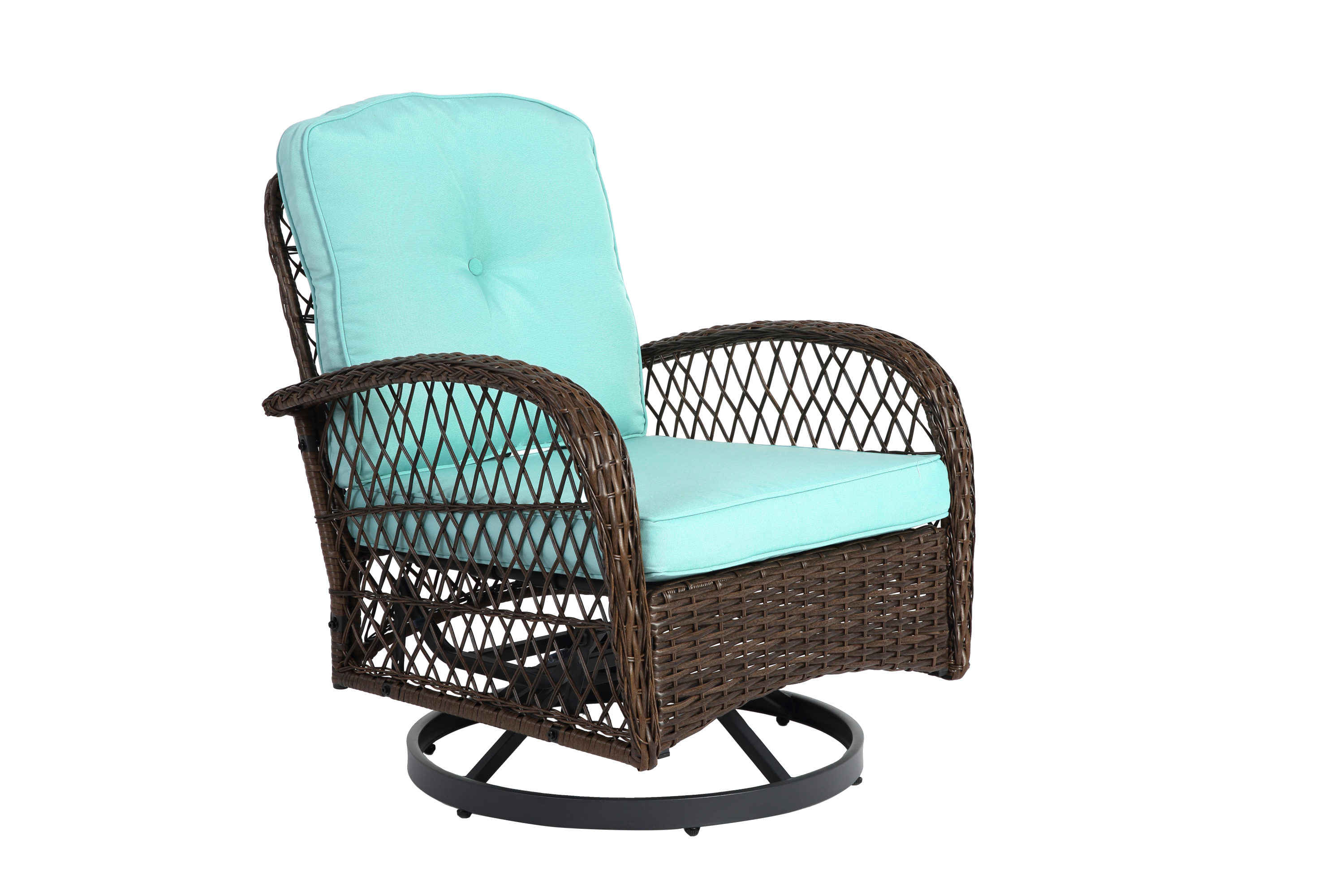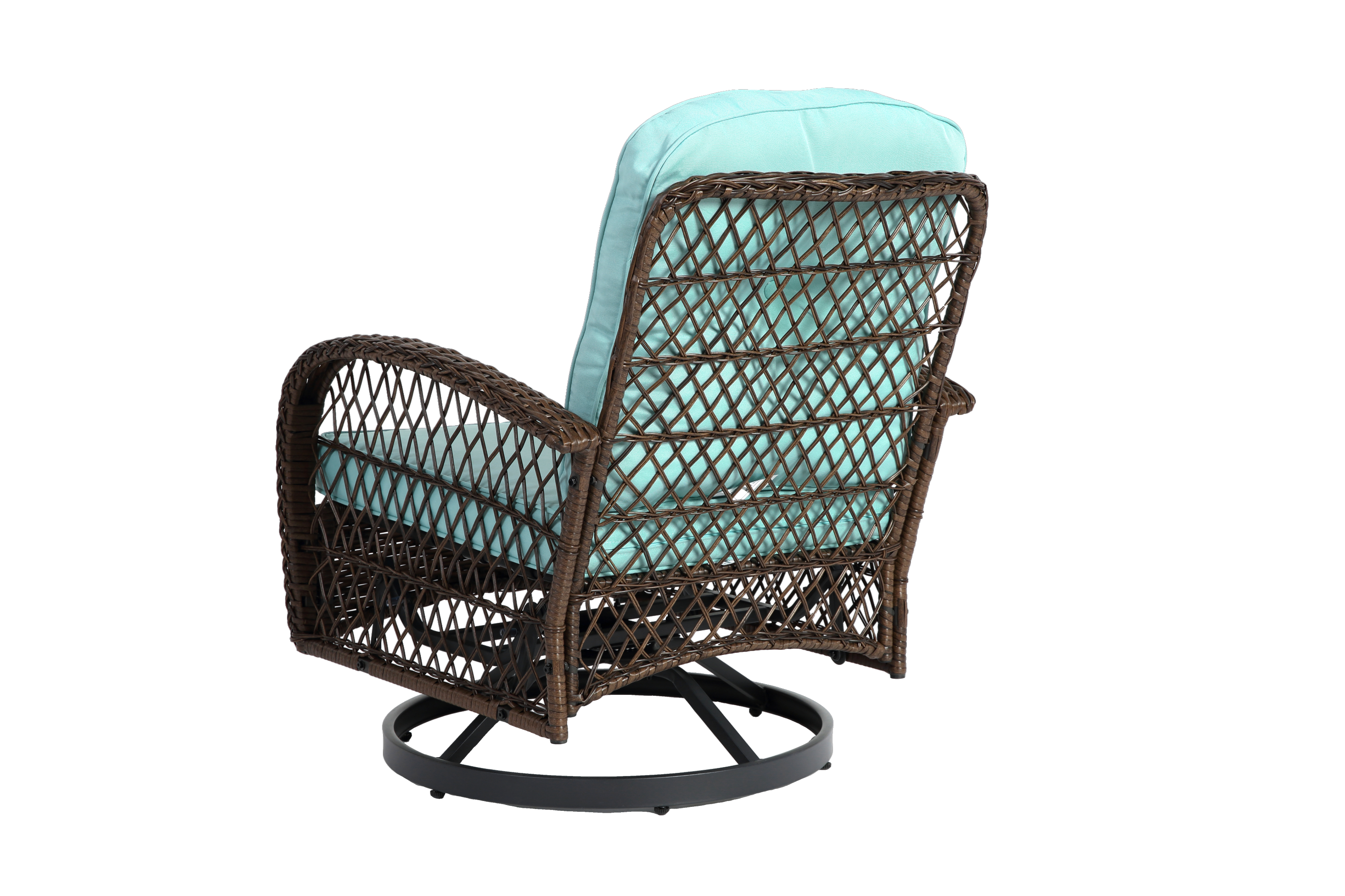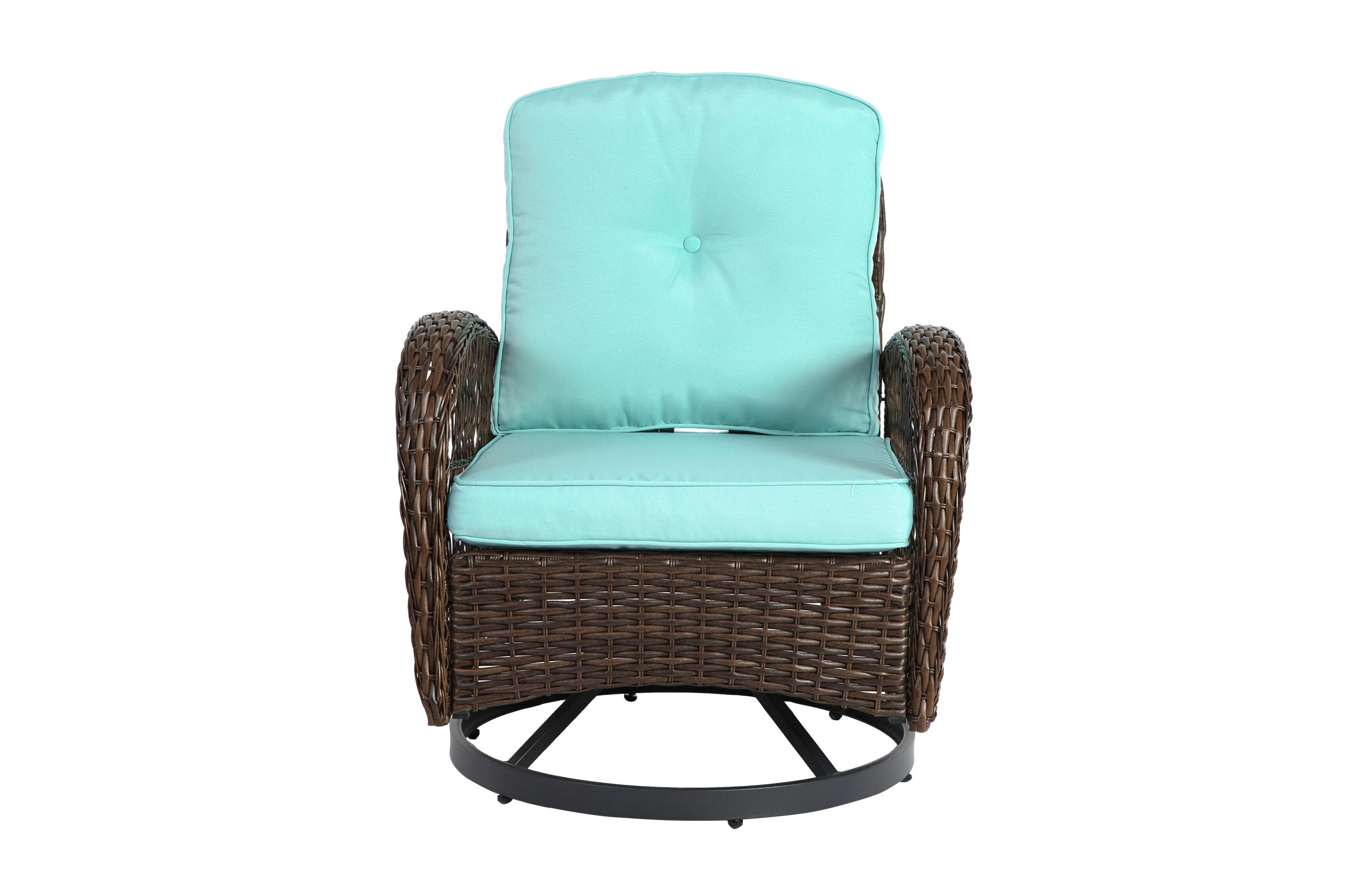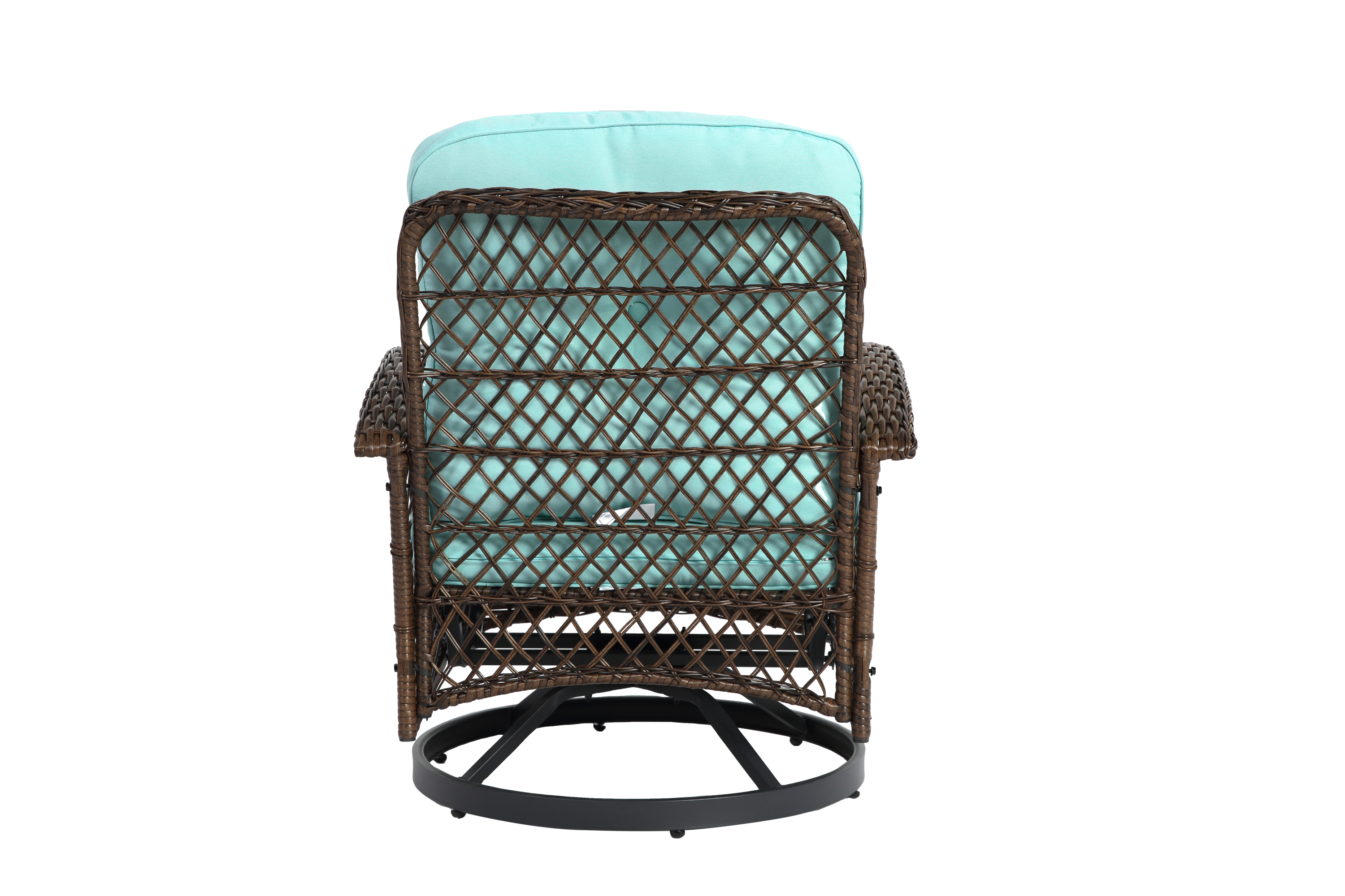 3 Pieces Outdoor Swivel Rocker Patio Chairs, 360 Degree Rocking Patio Conversation Set with Thickened Cushions and Glass Coffee Table for Backyard, Blue W640P263669-djyc