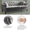 [Video] 79' Chesterfield Sofa Grey Velvet for Living Room, 3 Seater Sofa Tufted Couch with Rolled Arms and Nailhead for Living Room, Bedroom, Office, Apartment, two pillowsW834S00012 W834S00117-djyc