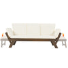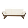 TOPMAX Outdoor Adjustable Patio Wooden Daybed Sofa Chaise Lounge with Cushions for Small Places, Brown Finish+Beige Cushion SP100141AAA-djyc
