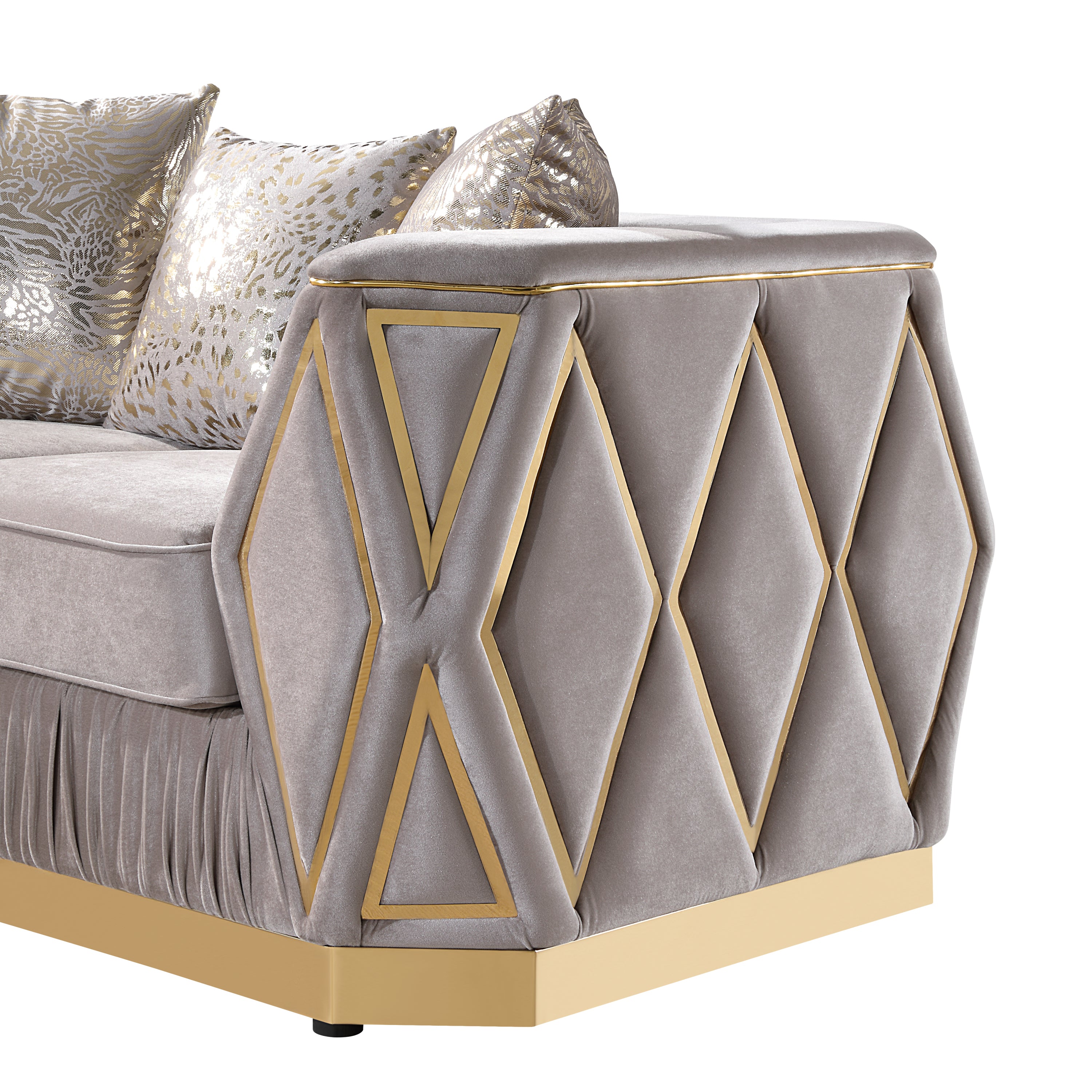 Cavalli Contemporary Style Upholstery Diamond Pattern Sofa Made with Wood in Gold accent & Taupe-B009P417491