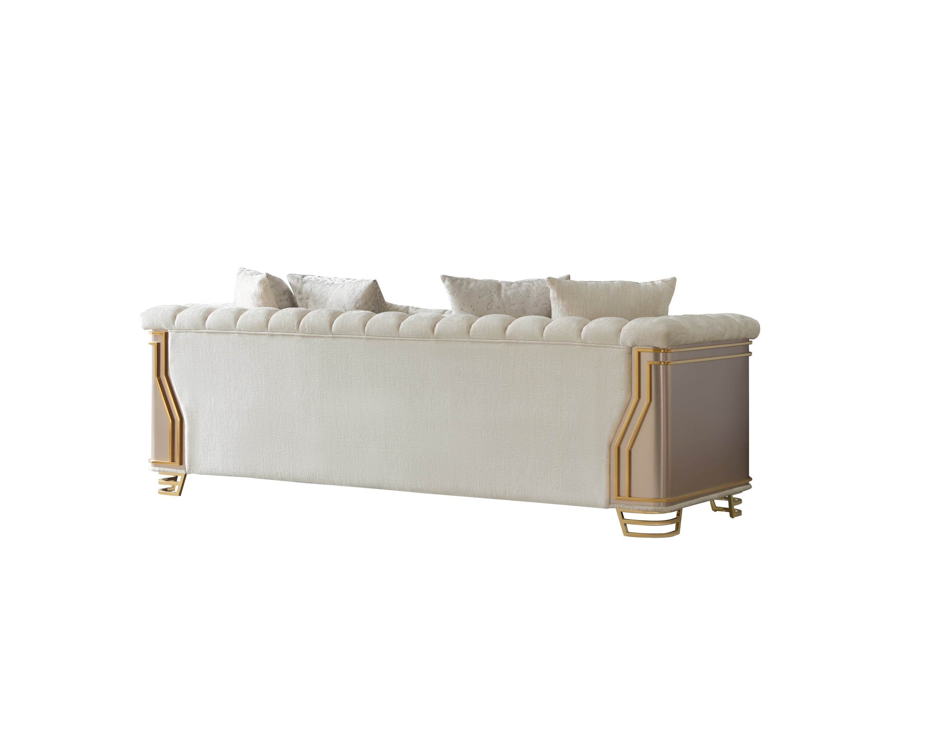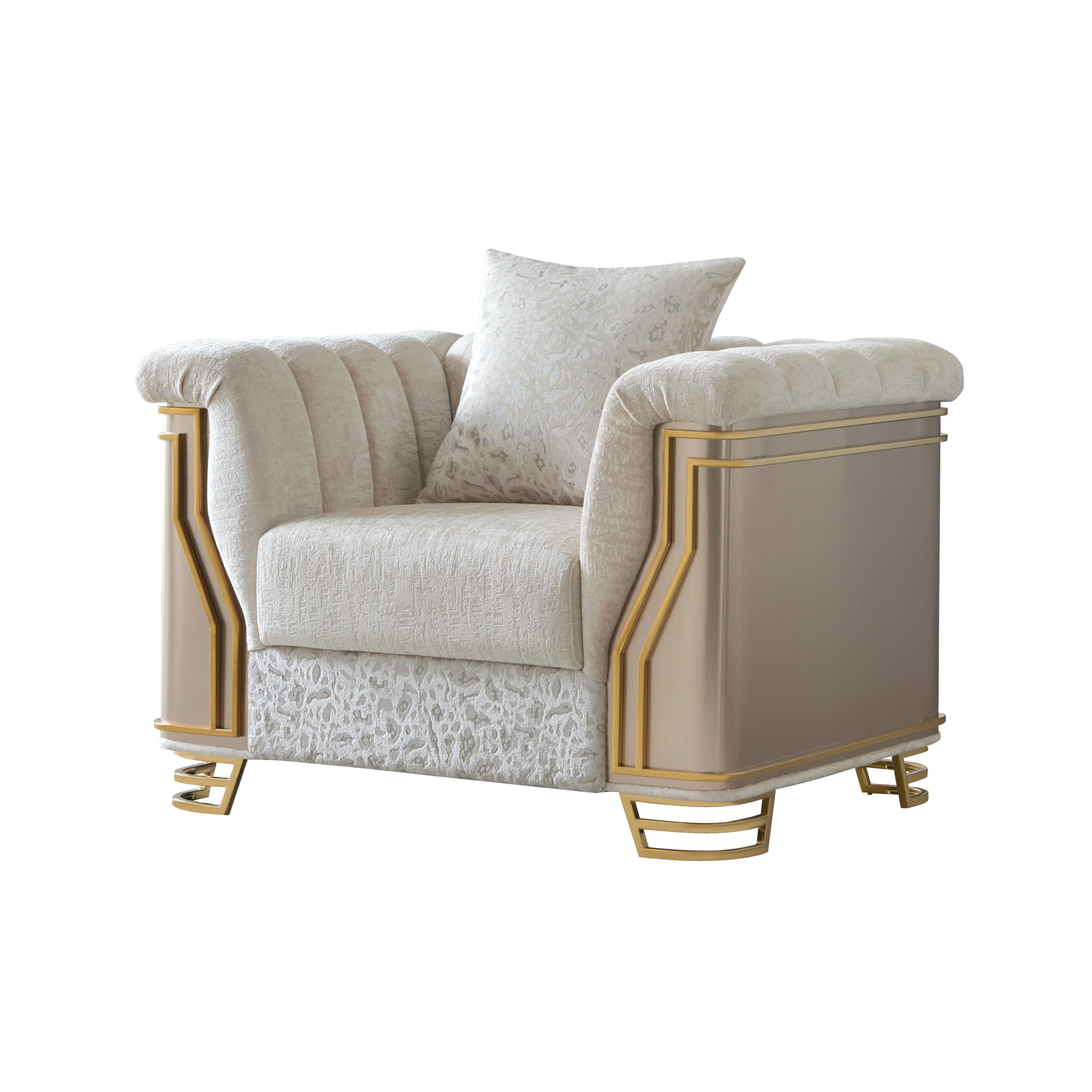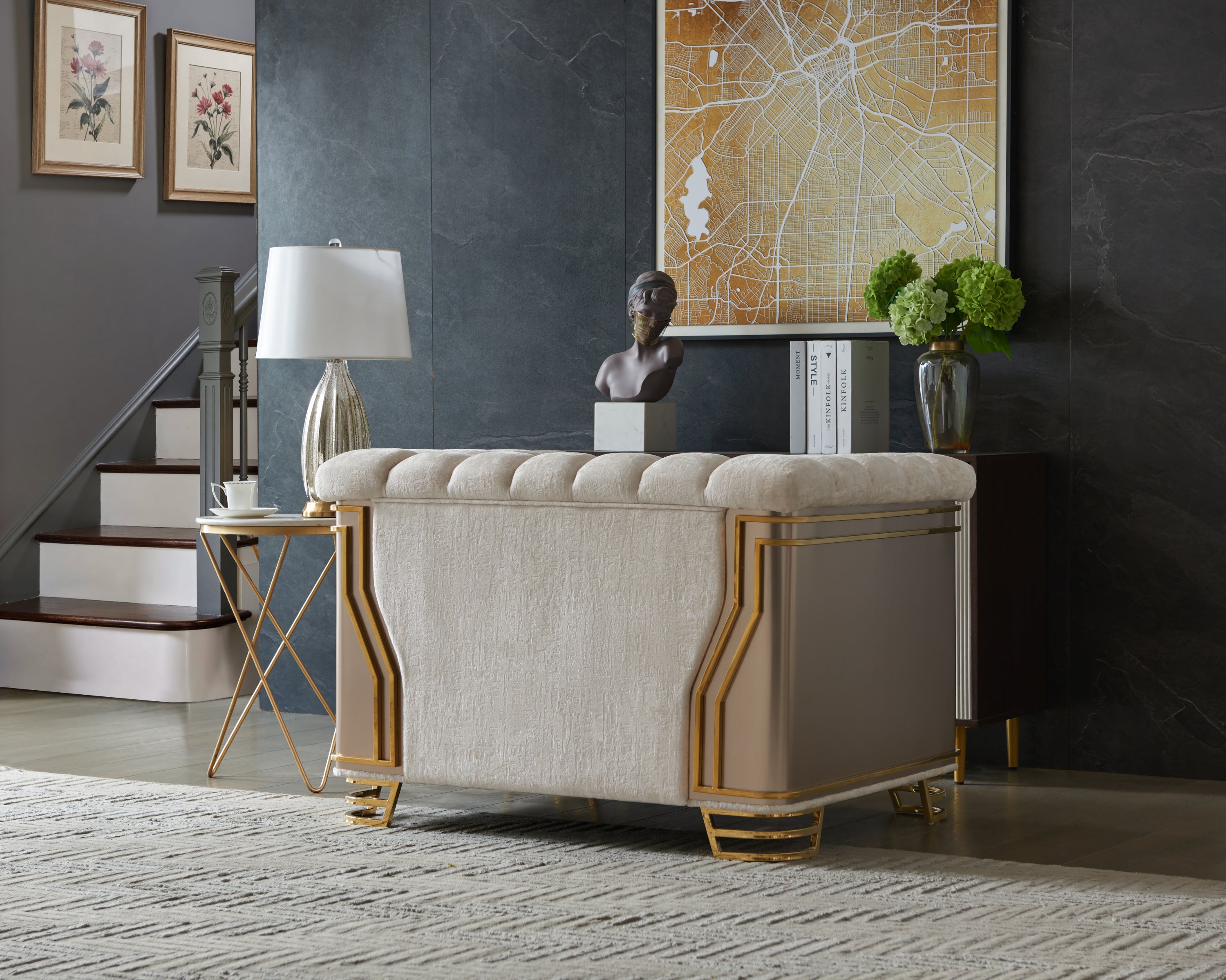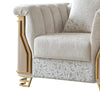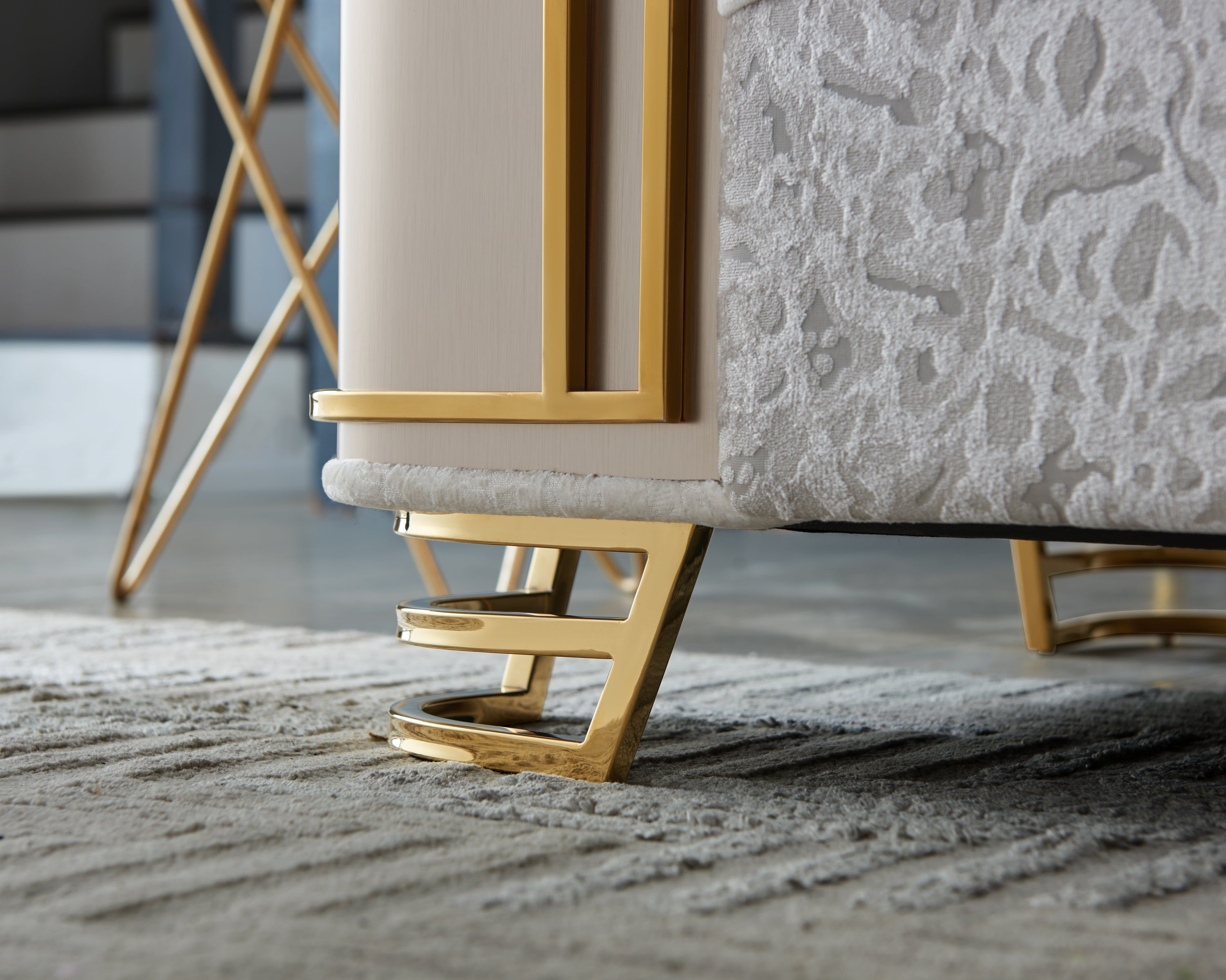 Chateau Two-Tone Wood Upholstery 3Pc Set with Modern Design, Stainless Steel Gold Accents, and Cream Finish-B009S02179