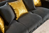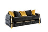 Lippa Upholstered Sofa in Black Fabric with Gold Stainless Steel Legs, Foam Cushioning and Sturdy Wood Frame-B009S02234