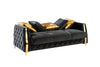 Lippa 2pc Upholstered Sofa and Loveseat Set in Black Fabric with Gold Stainless Steel Legs, Foam Cushioning and Sturdy Wood Frame-B009S02235