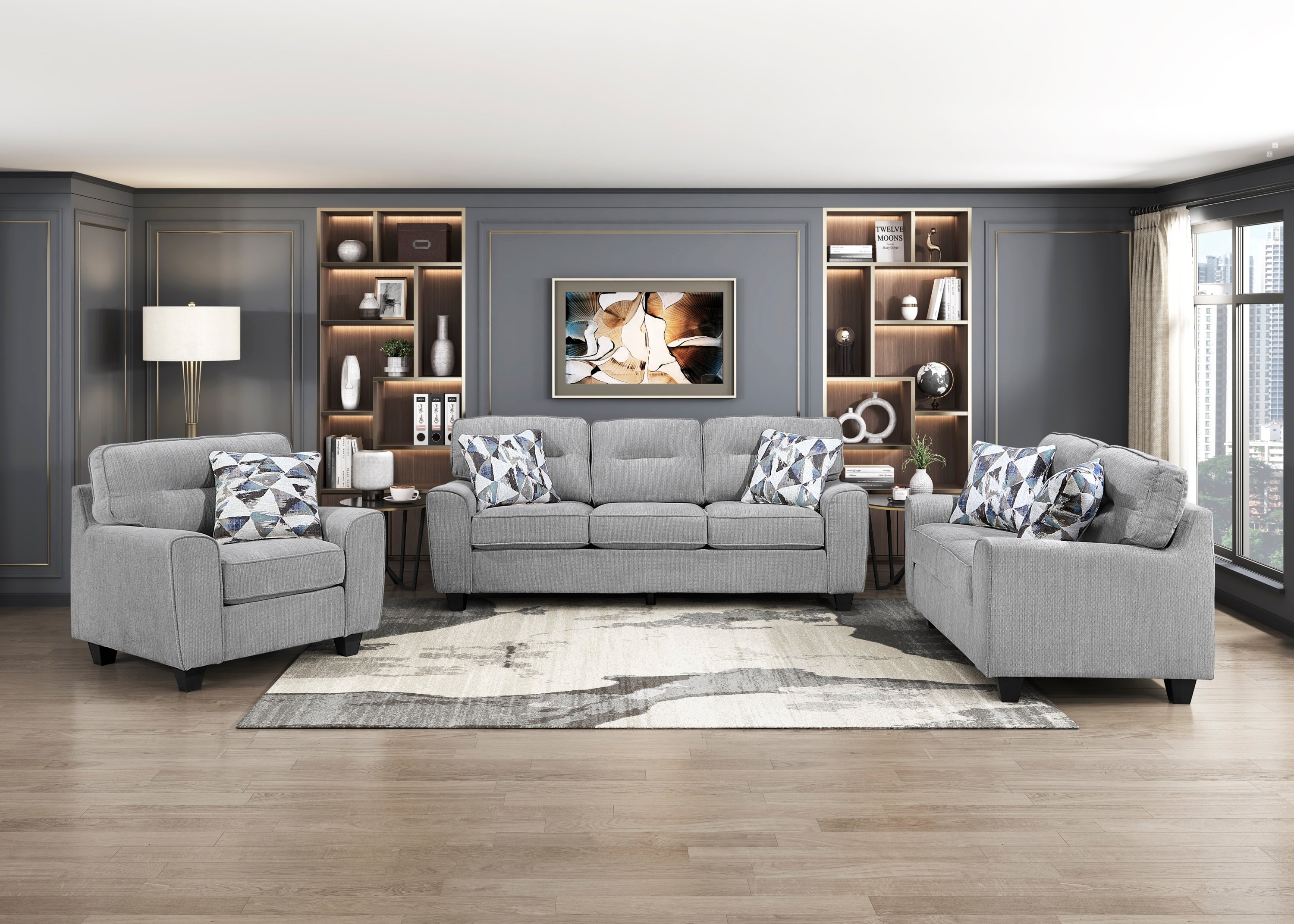 Durable Chenille Fabric Sofa with Decorative Pillows Gray Contemporary Design Living Room Furniture 1pc-B011P474326