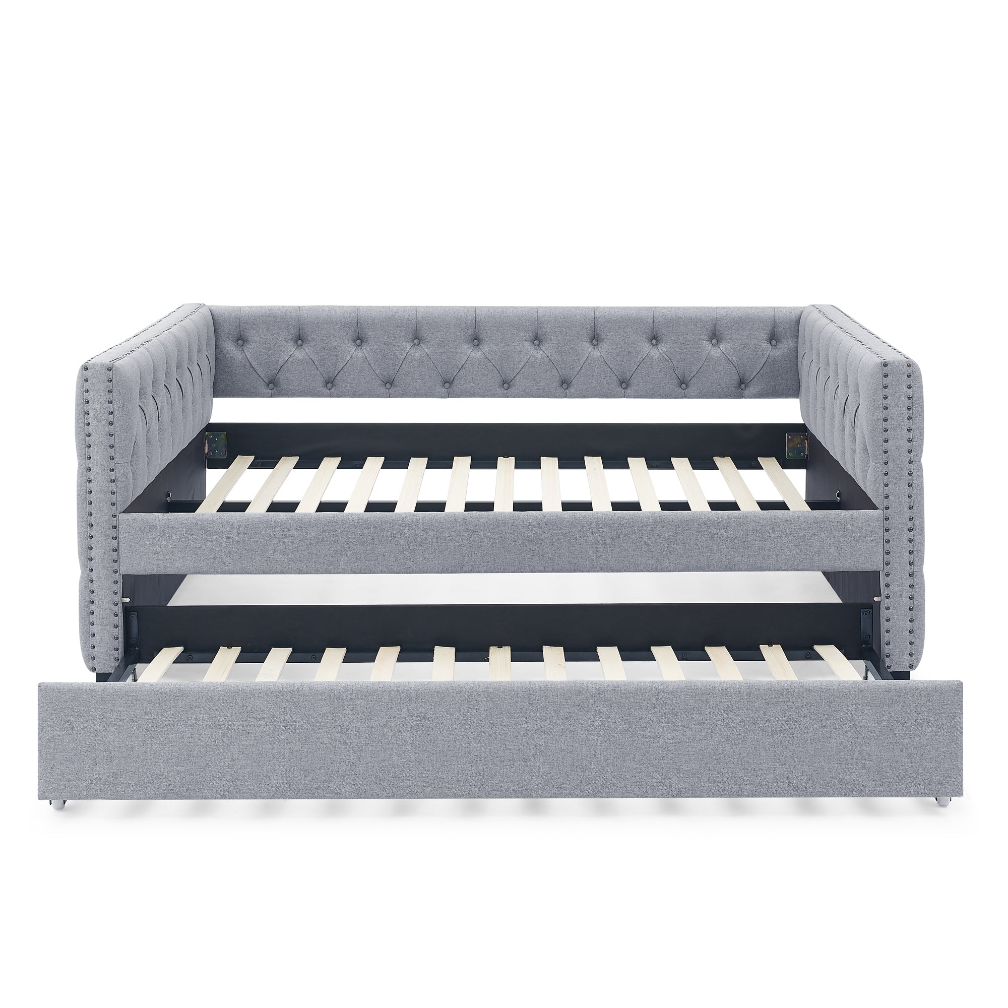 Daybed with Trundle Upholstered Tufted Sofa Bed, with Button and Copper Nail on Square Arms,Full Daybed & Twin Trundle, Grey(85'x57'x31.5') W487S00101-djyc