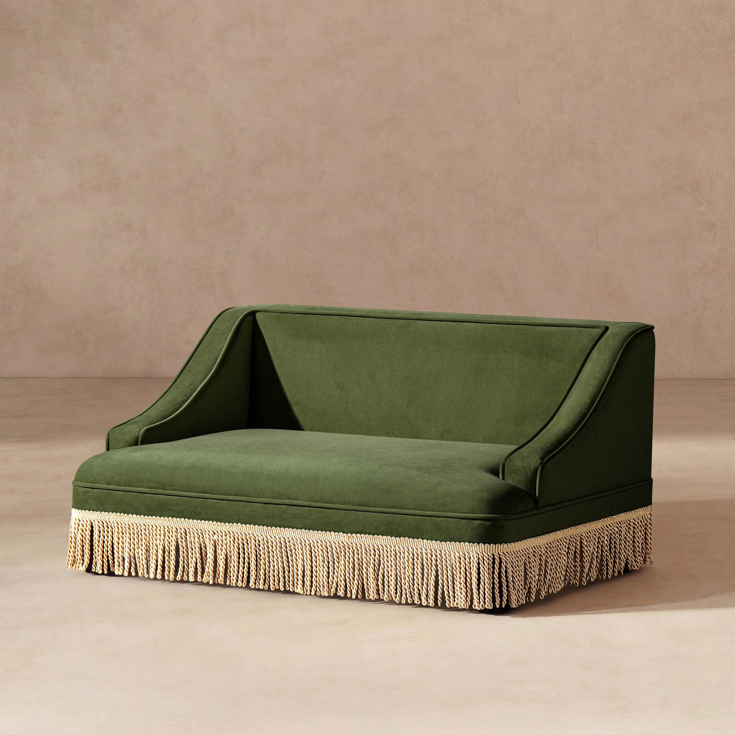 Duchess 33' Medium Princess Pet Bed Sofa with Fringe Skirt, Olive Green Performance Velvet-B2719P479031