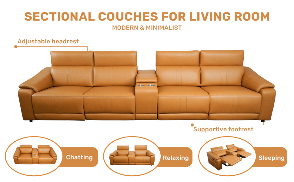 5-Piece Modular Leather Sofa with 2 Cup Holders,Comfortable Sectional Sofa Set for Living Room, Brown-B347S00034