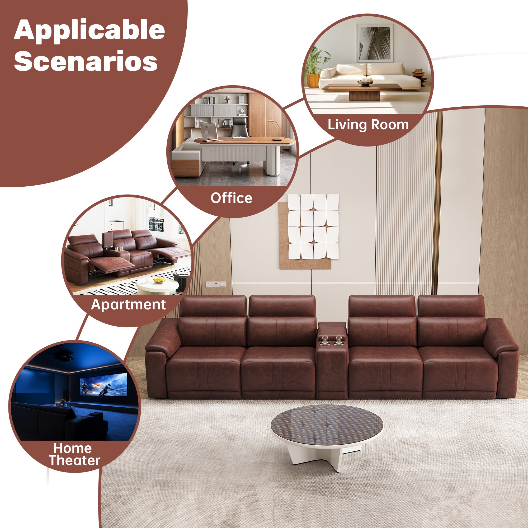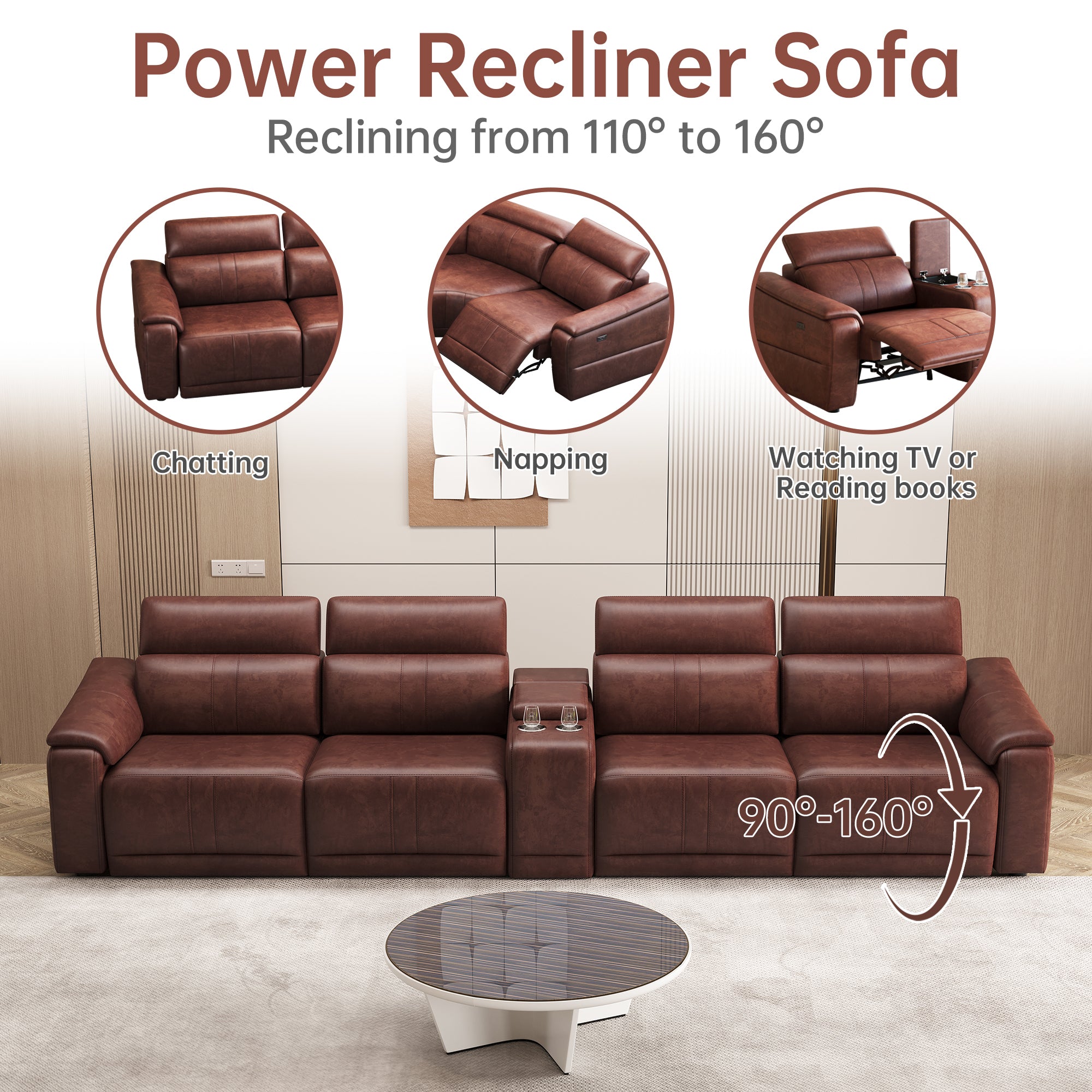 - Comfortable Experience: Equipped with electric recliner function, the two side seats can independently control the reclining angle, adjust freely to the most comfortable state, and enjoy the ultimate relaxation experience.