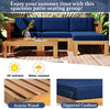 TOPMAX Outdoor Backyard Patio Wood 5-Piece Sectional Sofa Seating Group Set with Cushions, Natural Finish+ Blue Cushions SP110142AAC-djyc