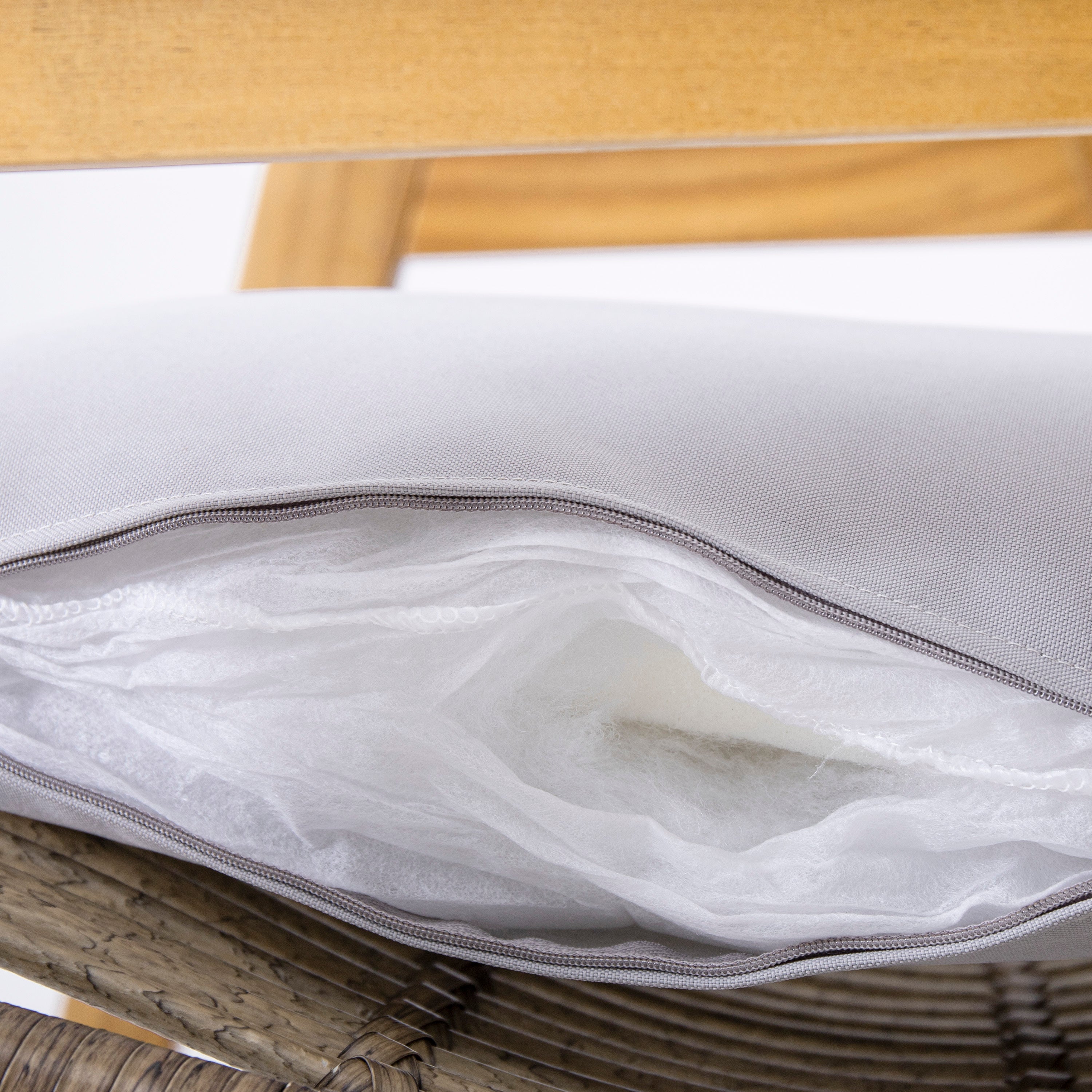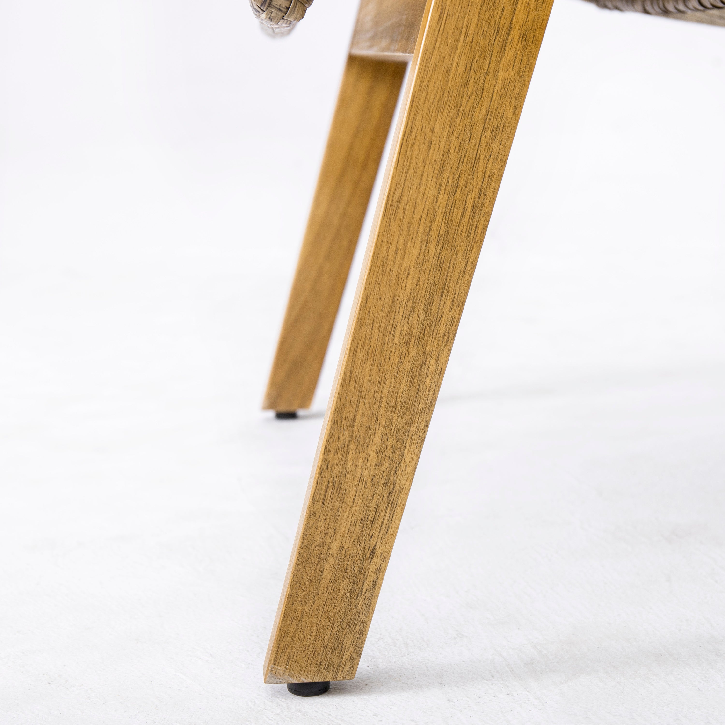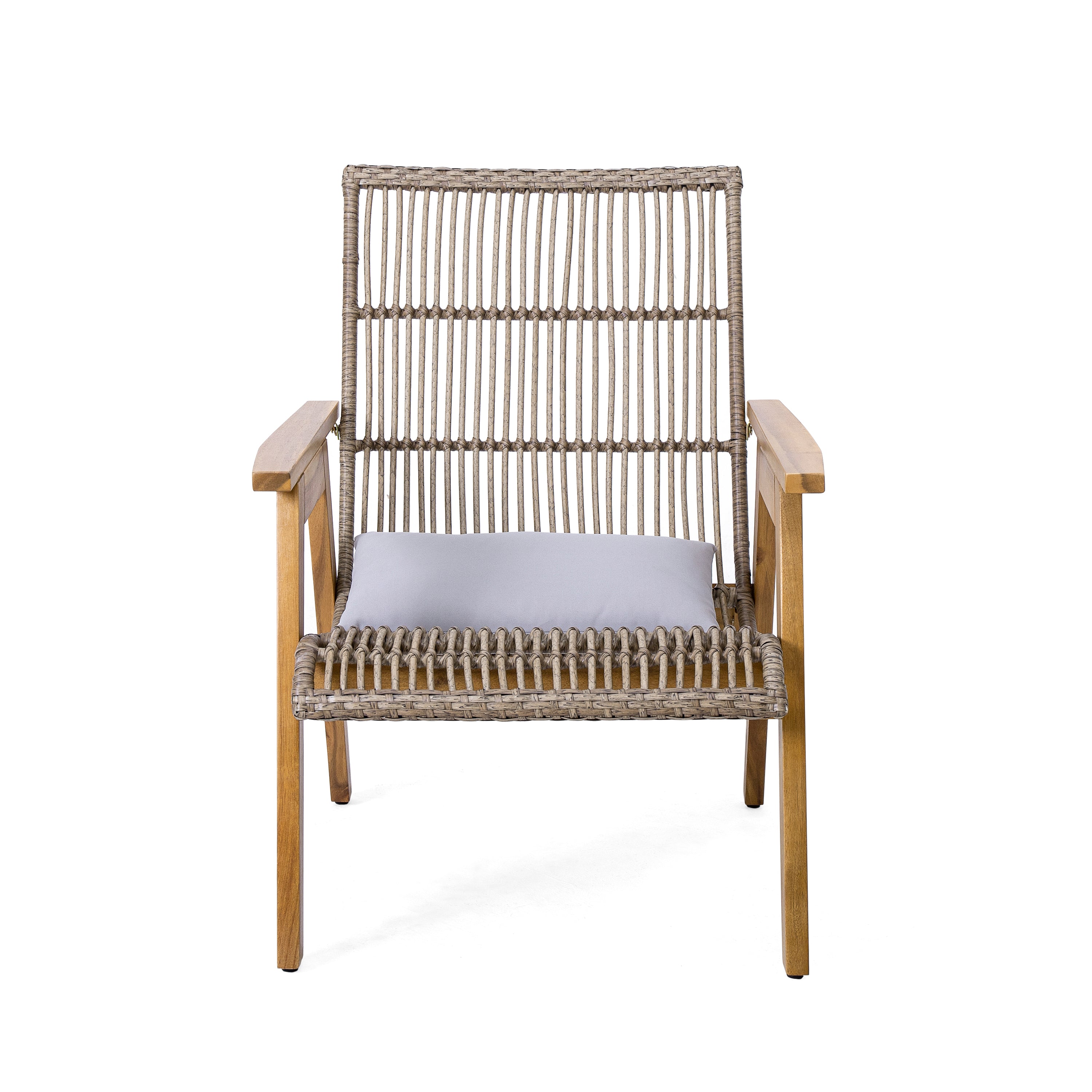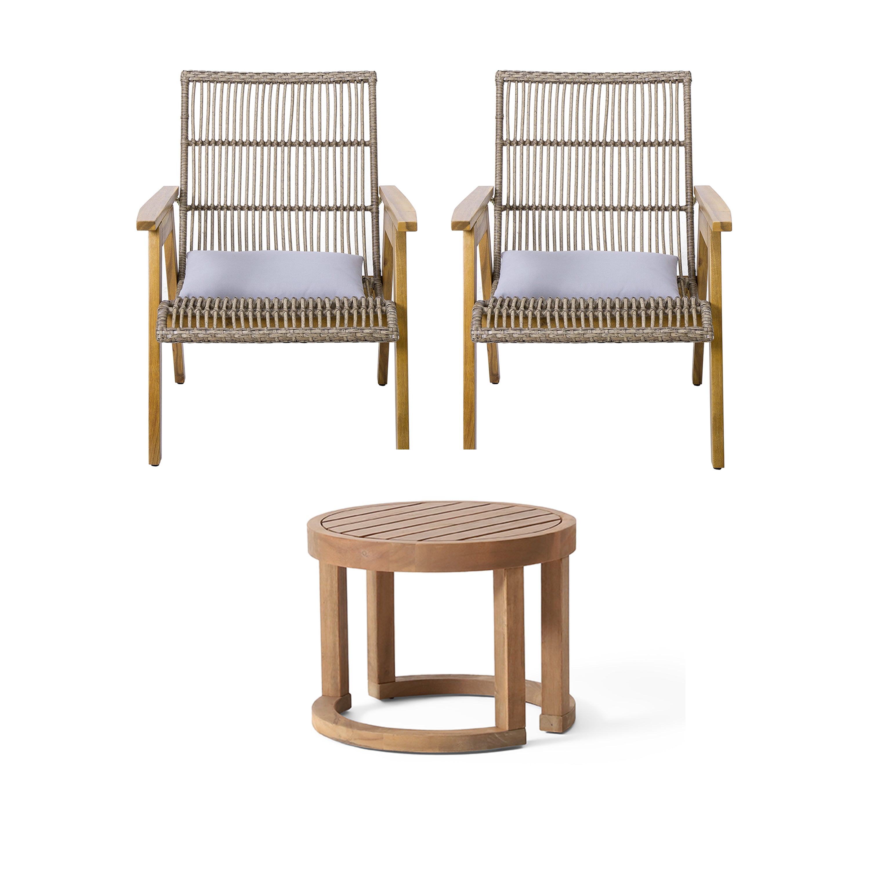 Outdoor Acacia Wood 3-Piece Lounge Set: 2 Cape Woven Wicker Lounge Chairs with Pillows + 18' Solid Side Table for Patio, Deck, Yard, Lawn, and Garden (Teak Finish + Natural Wicker + Light Grey Fabric N780P7316506-djyc
