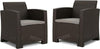 Set of 2 Outdoor Brown Faux Wicker Club Chairs with Beige Waterproof Cushions 61315.00BRN-2-djyc