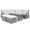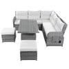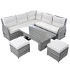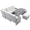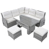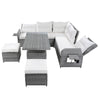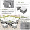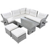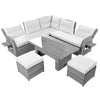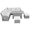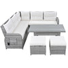 - Adjustable Table – This outdoor sofa set features a versatile adjustable-height table with a durable tempered glass top. Easily adjustable to two different heights, it accommodates a variety of activities, whether you're dining, working, or relaxing with drinks. The tempered glass is not only highly durable and resistant to impact and scratches but also easy to maintain. The sleek glass surface and sturdy frame bring a modern, stylish touch, seamlessly enhancing any outdoor space.