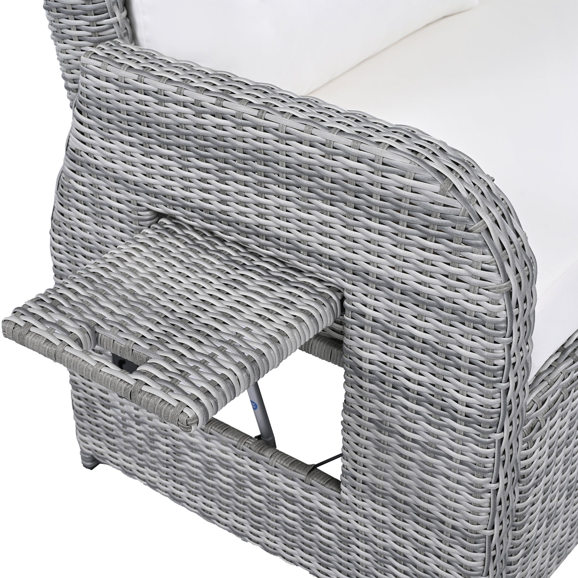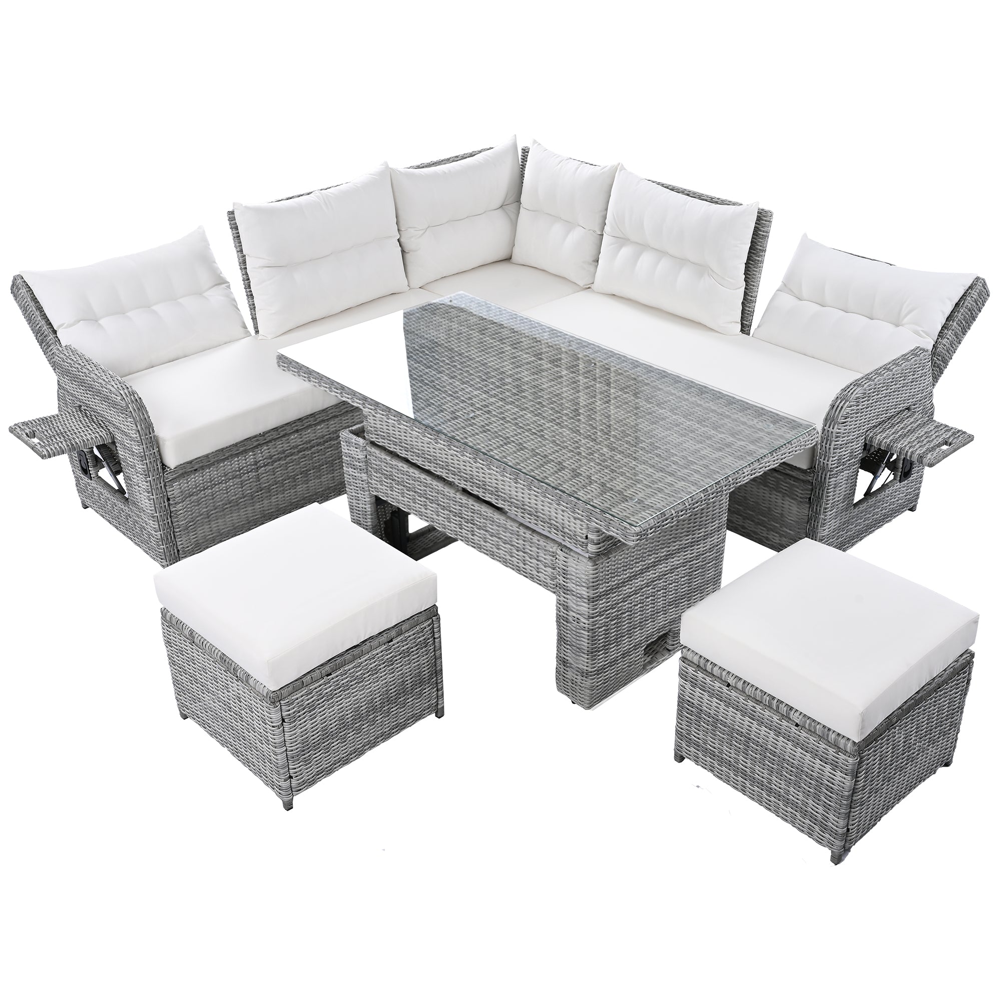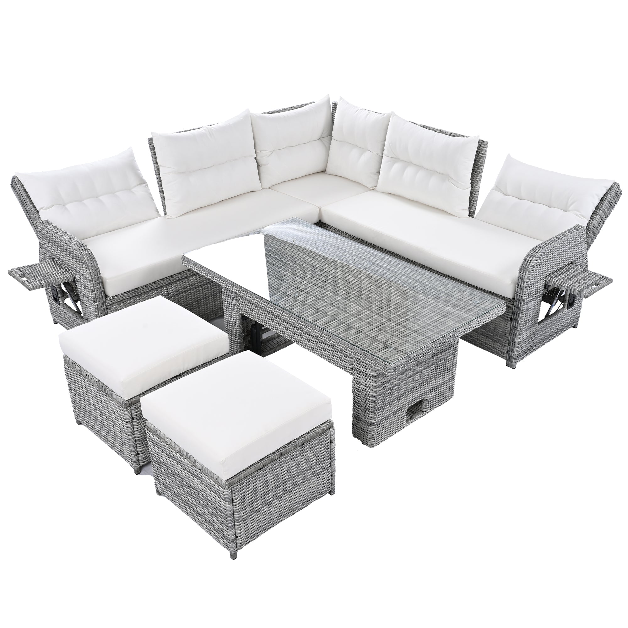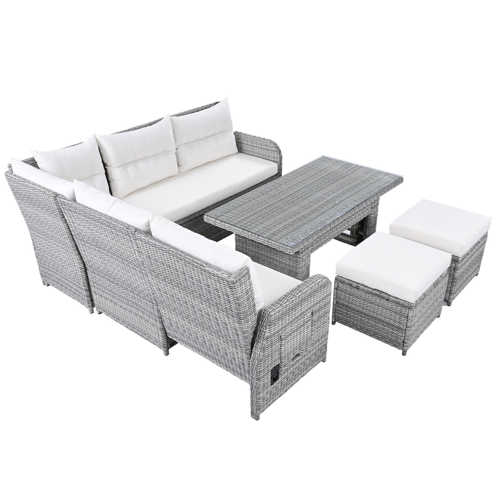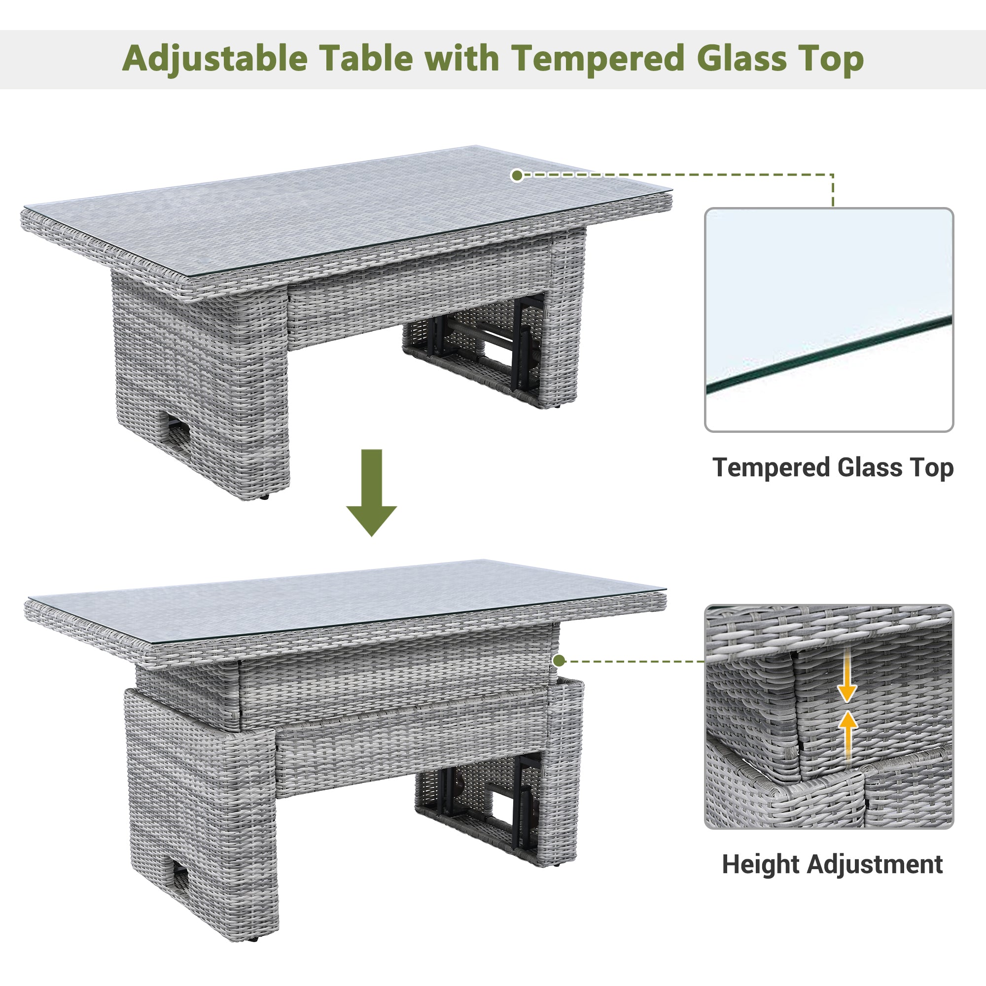 Outdoor Furniture Set Patio Rattan Furniture Set with an Adjustable Table, Recliners with Extendable Side Tables, and Two Ottomans For Patio, Lawn, Backyard, Pool, Beige N719Z000120A-djyc